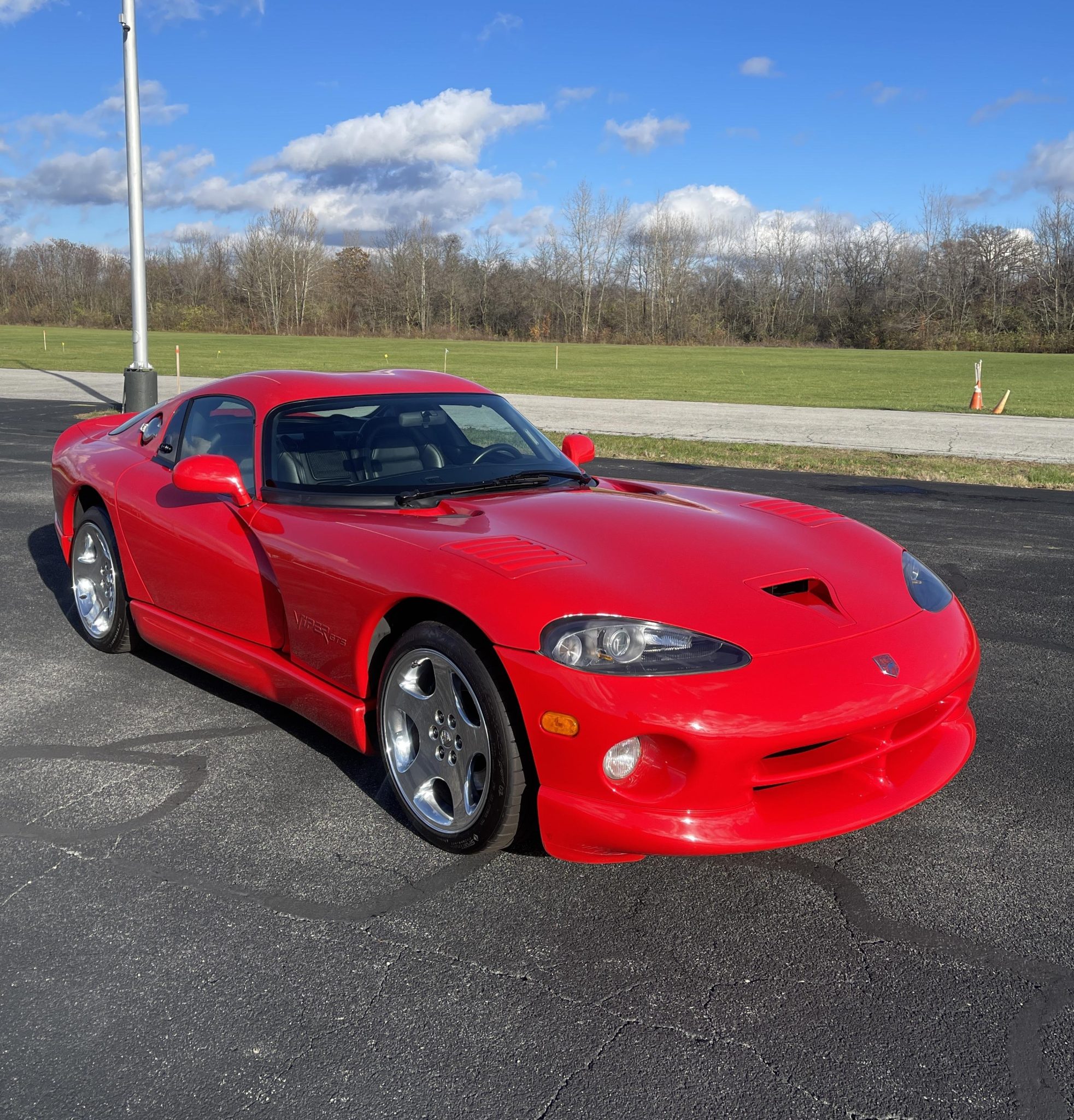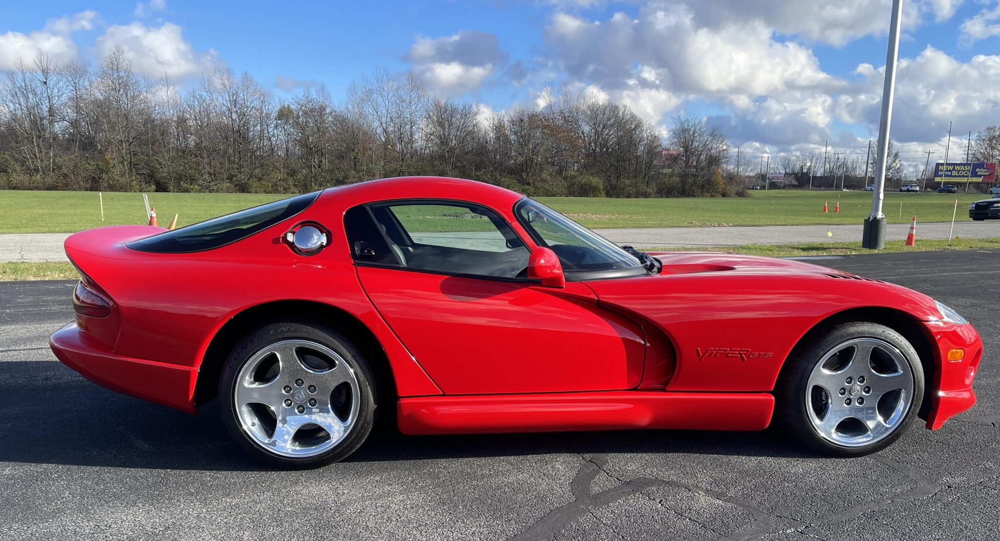 The 18″ polished aluminum-alloy wheels are mounted with 275/35 front and 335/30 rear Continental ExtremeContact Sport 02 tires that show 2023 date codes. Braking is handled by four-wheel ventilated discs. A brake fluid flush was performed in November 2023.