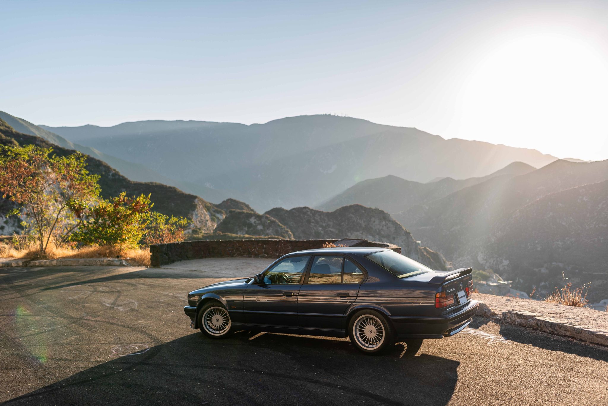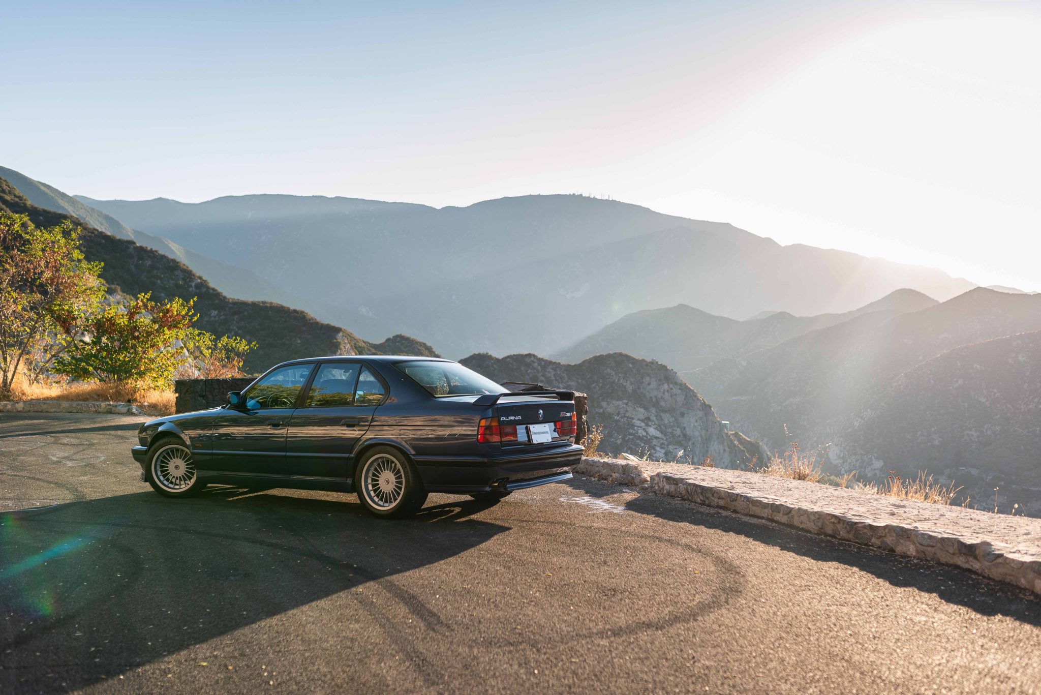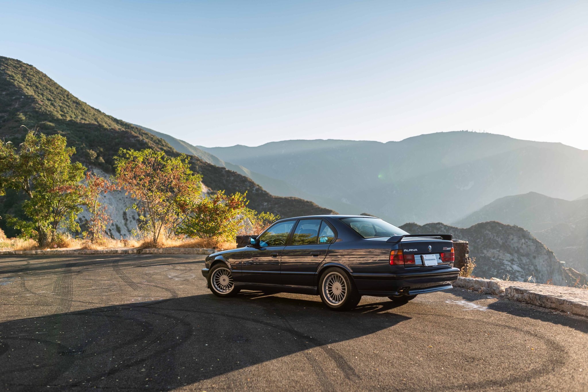 Silver 17″ Alpina wheels were mounted with 235/45 front and 275/40 rear Michelin Pilot Sport All Season 4 tires in 2024, and a full-size spare wheel is stored in the trunk. The Alpina-tuned suspension featured Bilstein shock absorbers, and stopping power is provided by four-wheel discs. The brake pads, rotors, and wear sensors were replaced in August 2024 and Bilstein Sport front strut inserts were installed. The idler arm, center link, and tie rods were also replaced at that time.