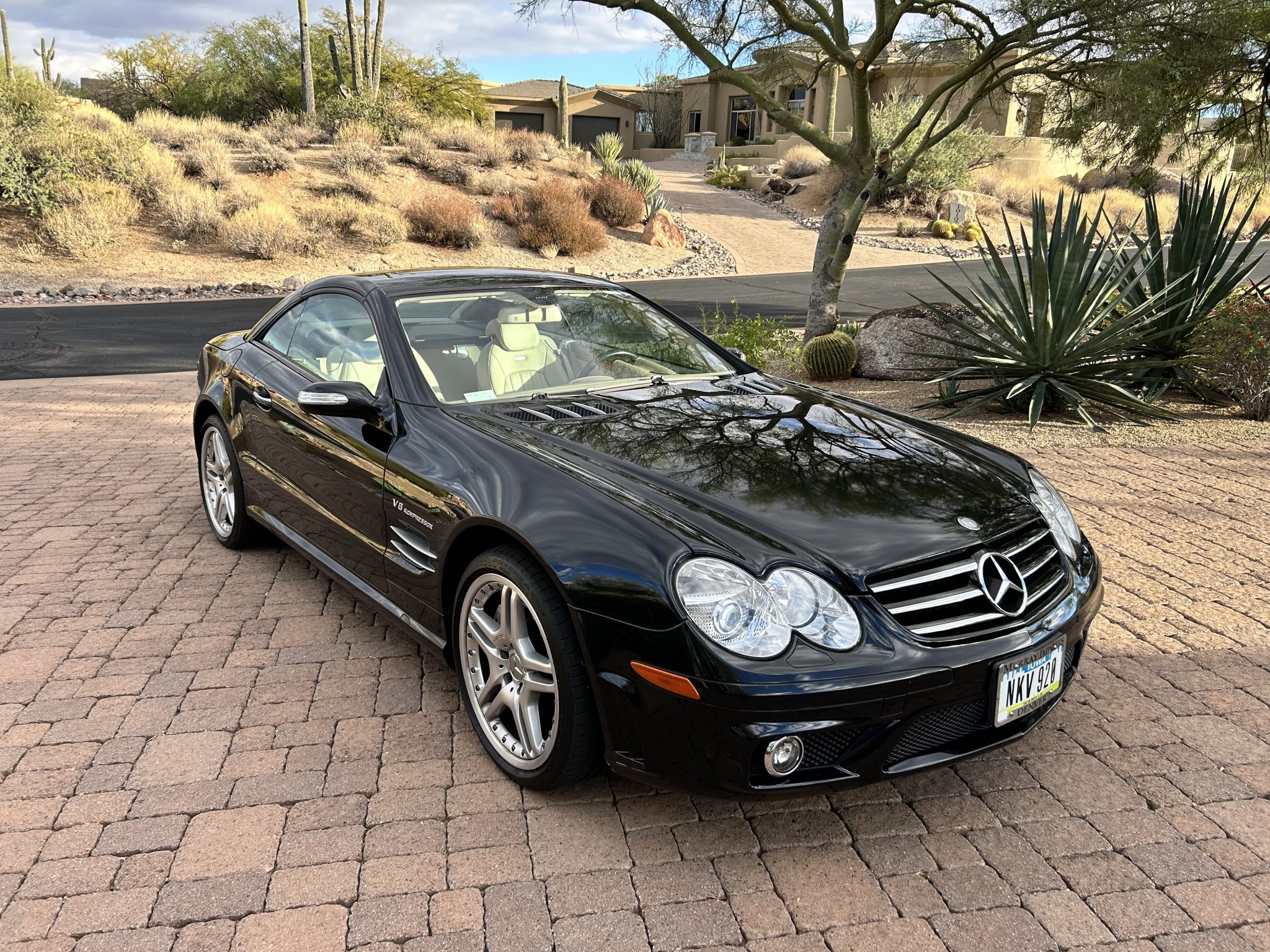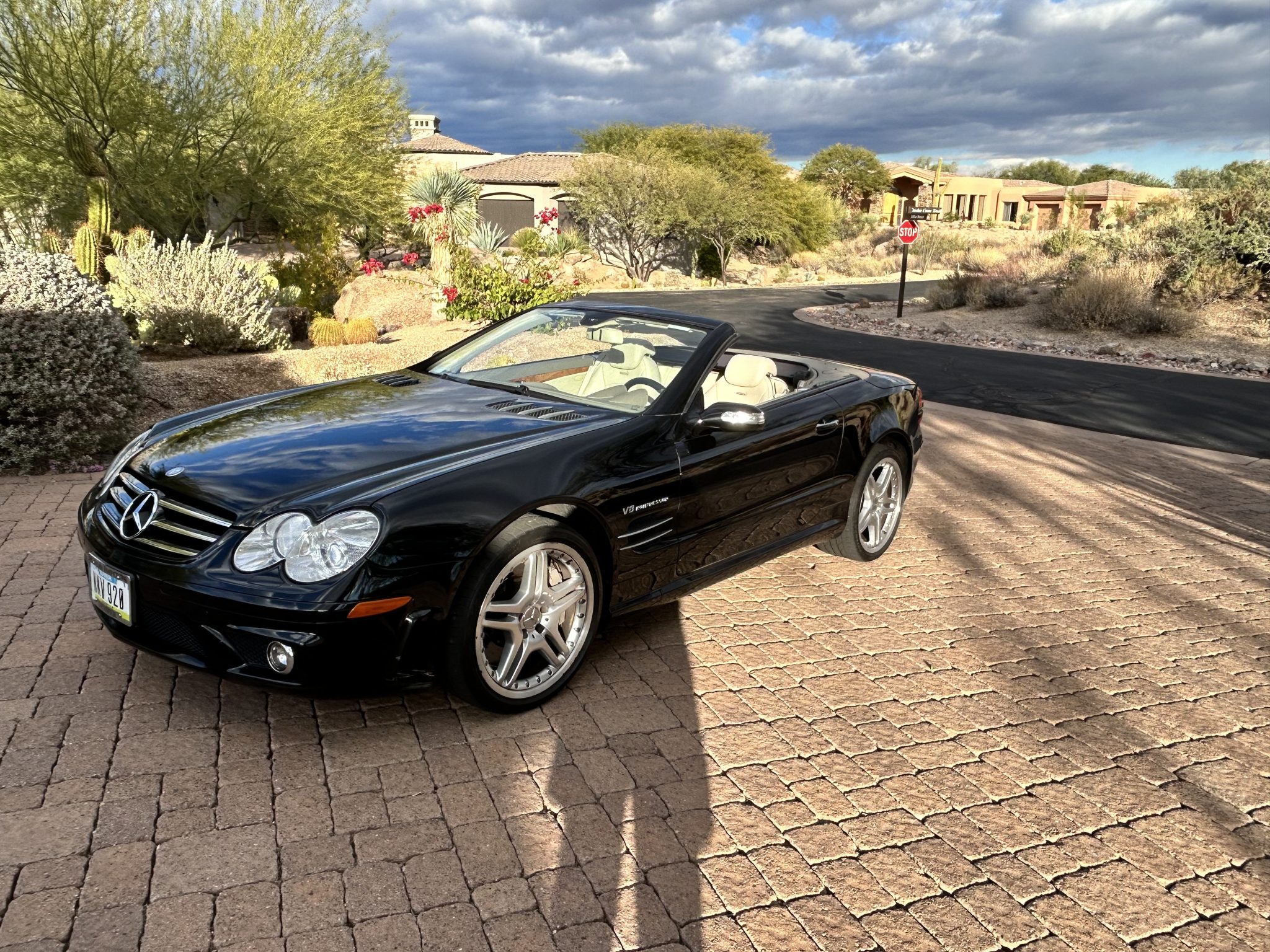 The 19″ two-piece alloy wheels are mounted with 255/35 front and 285/30 rear Bridgestone Potenza tires. The car features Active Body Control suspension as well as an Electronic Stability Program, Automatic Slip Regulation, revised suspension settings, and an AMG braking system with six-piston front calipers, four-piston rear calipers, and front and rear cross-drilled and ventilated discs.