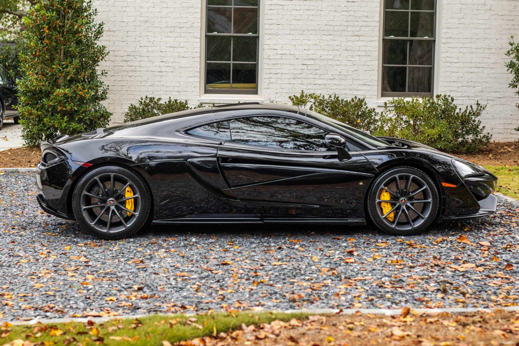 The 19″ and 20″ forged 10-spoke Stealth wheels were mounted with 245/35 front and 285/35 rear Michelin Pilot Sport All Season 4 tires under current ownership. The suspension features adaptive dampers and multiple handling modes, and the front suspension bushings were reportedly replaced in April 2022. Optional yellow-finished brake calipers are paired with cross-drilled carbon-ceramic rotors.