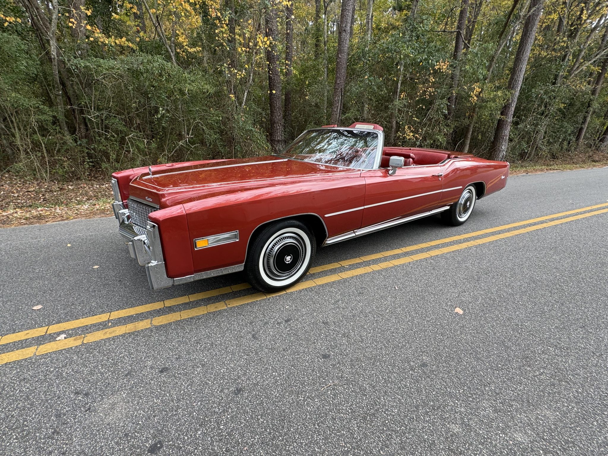 The 15″ steel wheels wear black covers and are mounted with Suretrac Power Touring whitewall tires. The Eldorado featured a torsion bar front suspension and a coil-sprung solid rear axle along with Automatic Level Control and power steering. Stopping power is provided by disc brakes at all four corners.