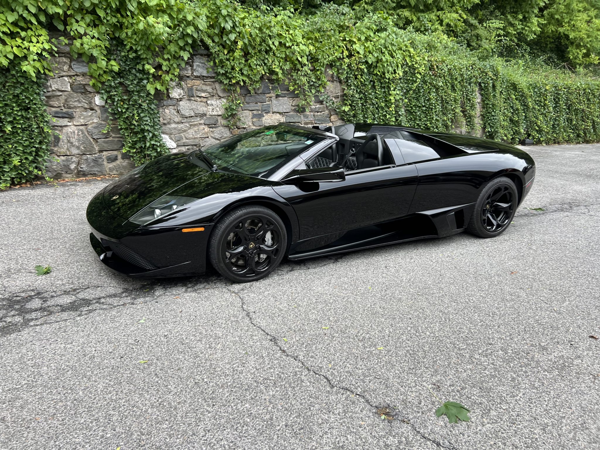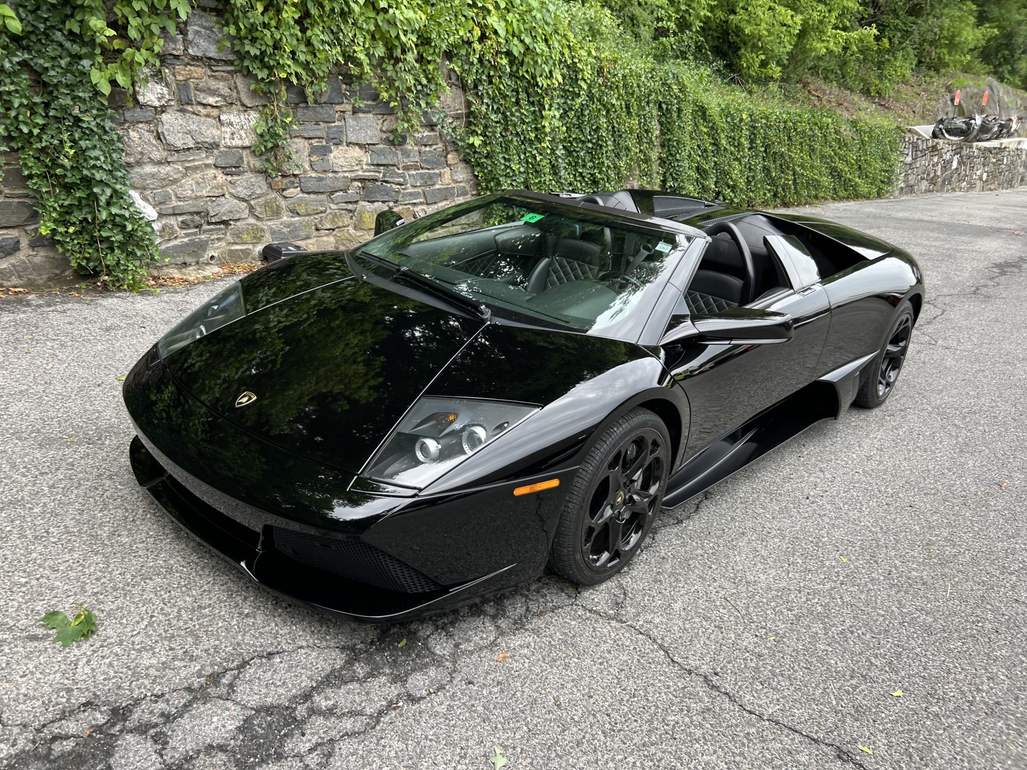 Black 18″ Hercules alloy wheels are mounted with 245/35 front and 335/30 rear Pirelli P Zero Rosso tires. The car is equipped with active dampers and a front-axle lift system. Stopping power is provided by silver-finished calipers fitted over cross-drilled rotors at each corner.
