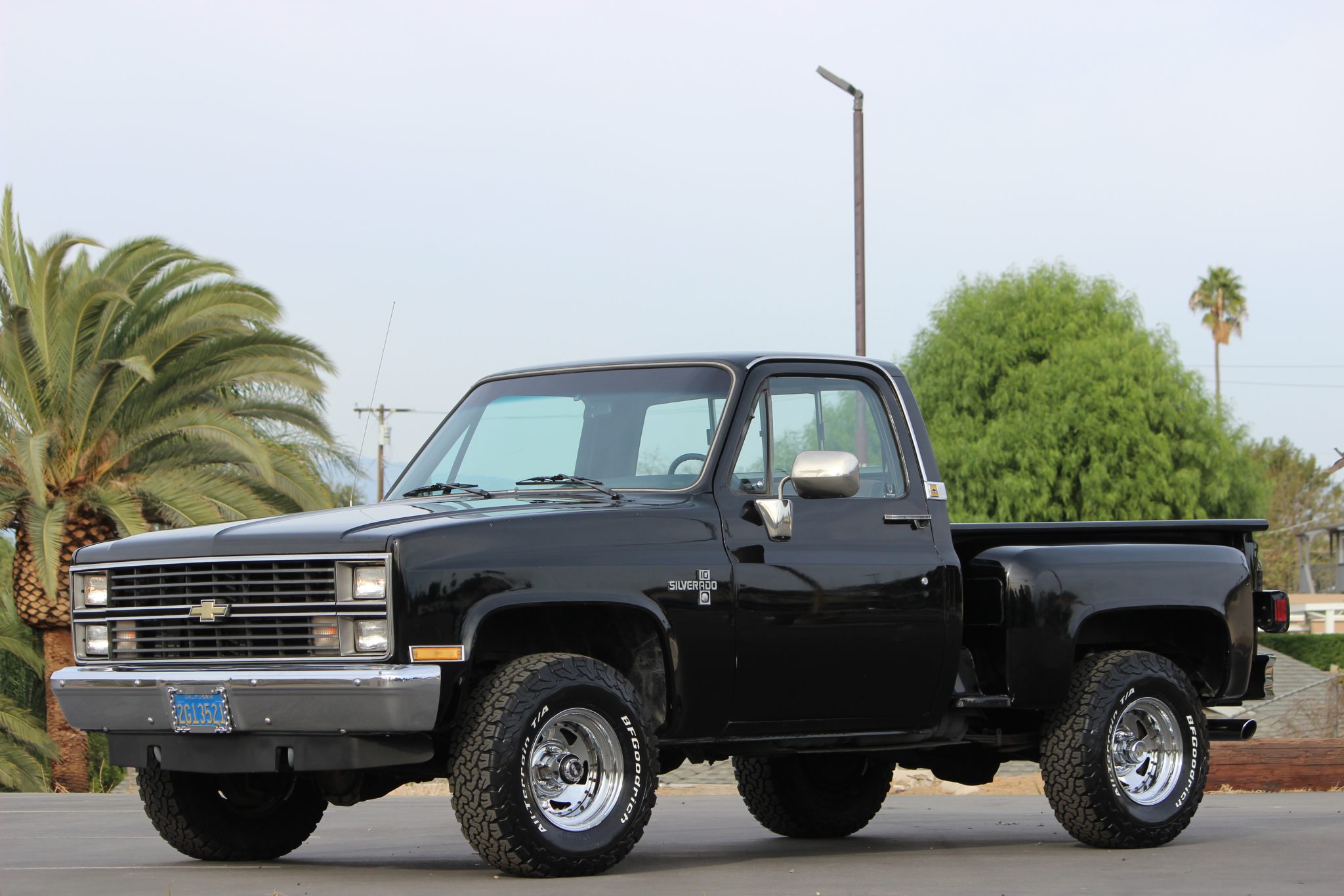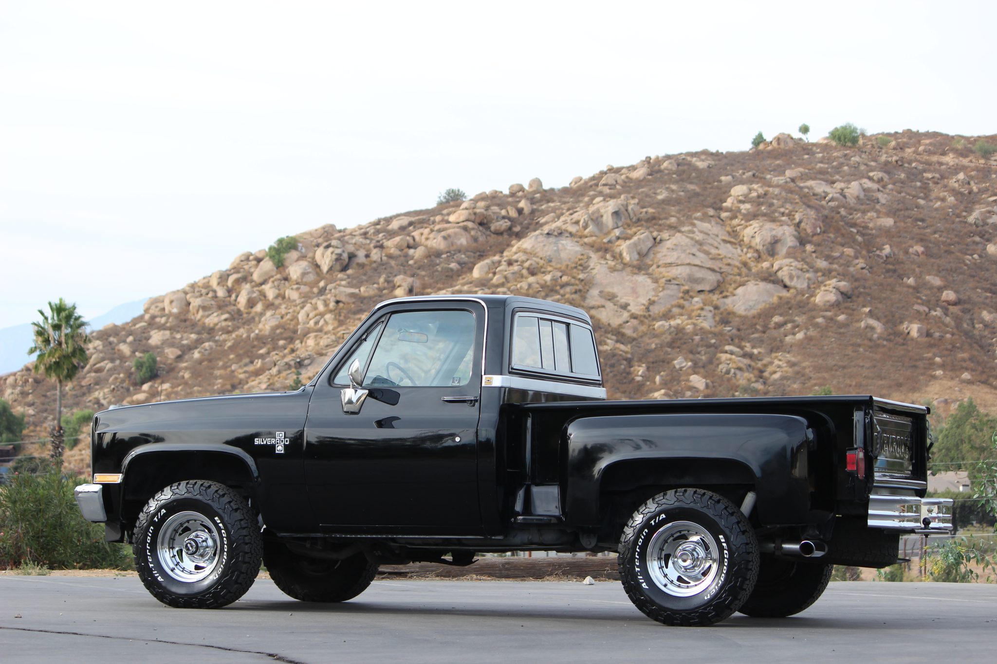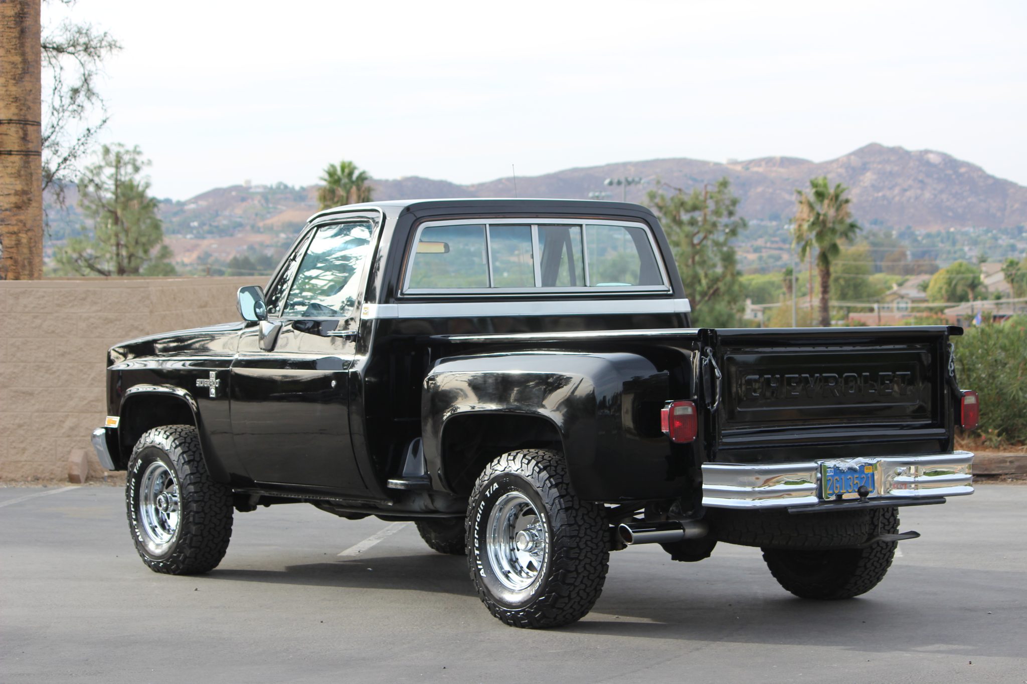 The 15″ five-spoke alloy wheels were mounted with 31×10.5″ BFGoodrich All-Terrain T/A KO2 tires in preparation for the sale. The truck is equipped with manually locking front hubs, and braking is handled by power-assisted front discs and rear drums.