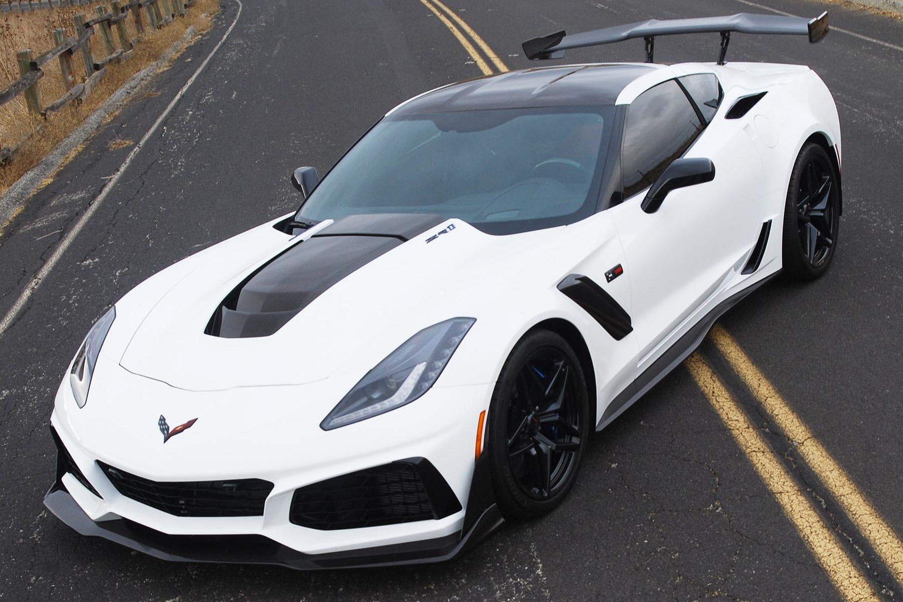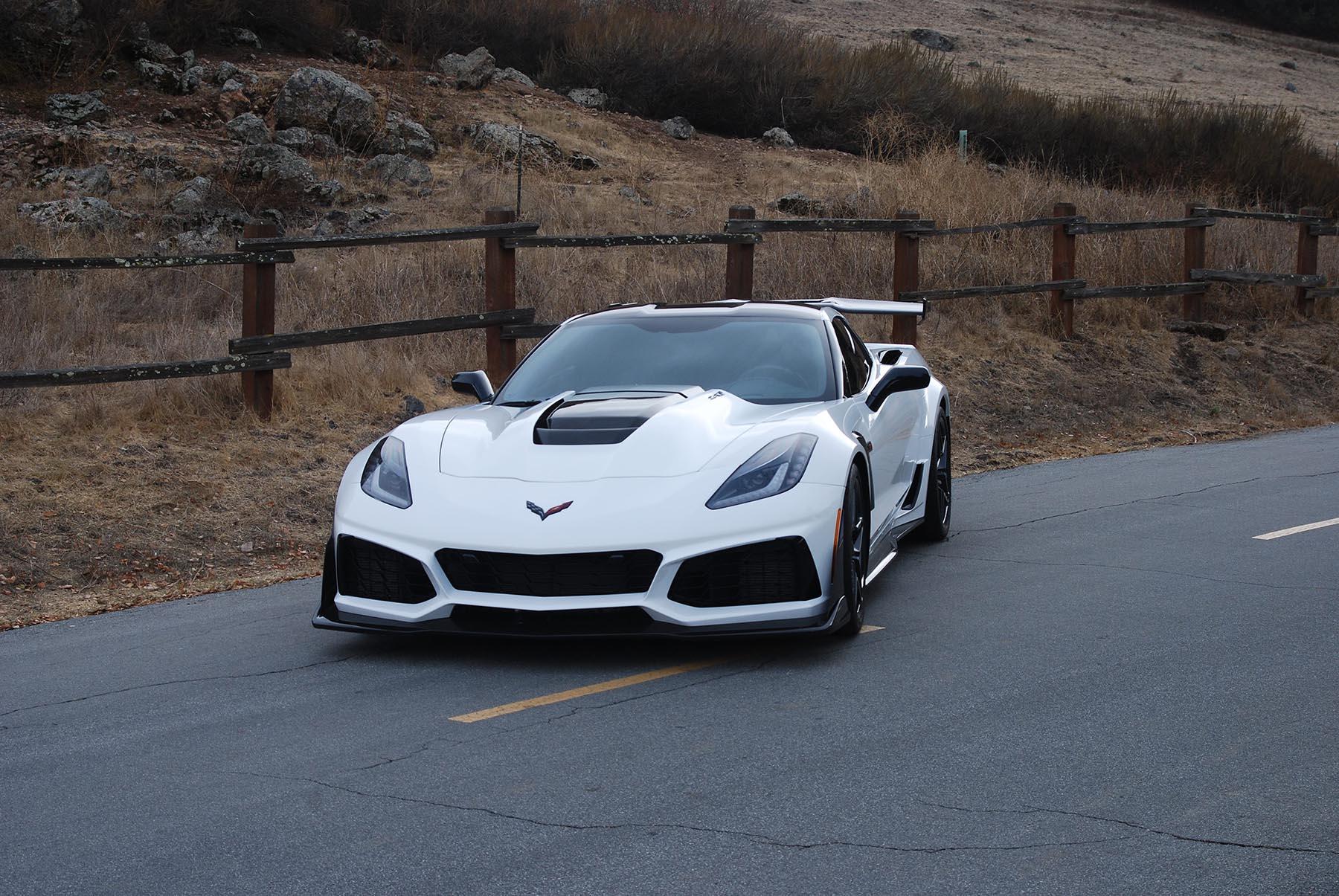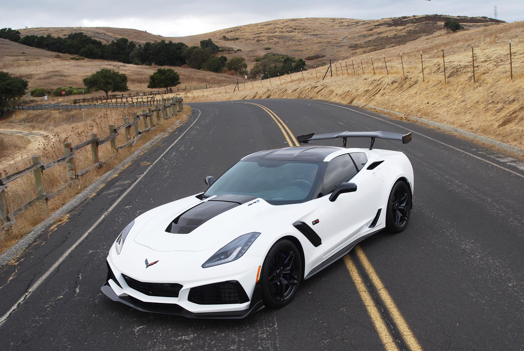 Staggered-diameter Carbon Flash 19″ and 20″ 10-spoke wheels are mounted with Michelin Pilot Sport Cup 2 tires measuring 285/30 front and 335/25 rear. The ZTK Track Performance Package adds stiffer springs and performance tuning for the Magnetic Ride Control suspension. Stopping power is provided by cross-drilled carbon-ceramic discs with red-finished Brembo calipers at each corner.