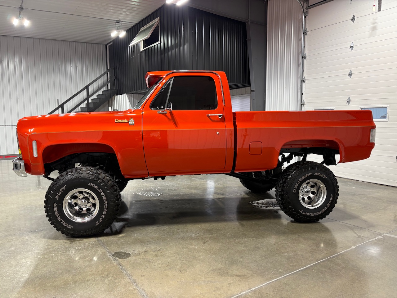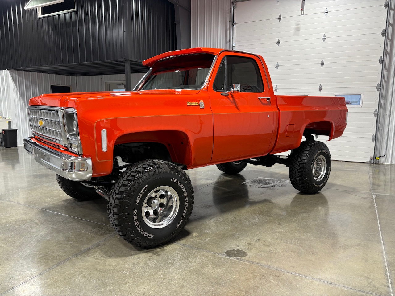 Polished 15″ Mickey Thompson wheels are mounted with 35×12.5″ Mastercraft Courser MXT tires. The truck rides on a lifted suspension featuring Rough Country shock absorbers and dual steering stabilizers, and braking is provided by power-assisted front discs and rear drums. The brake lines are said to have been replaced.