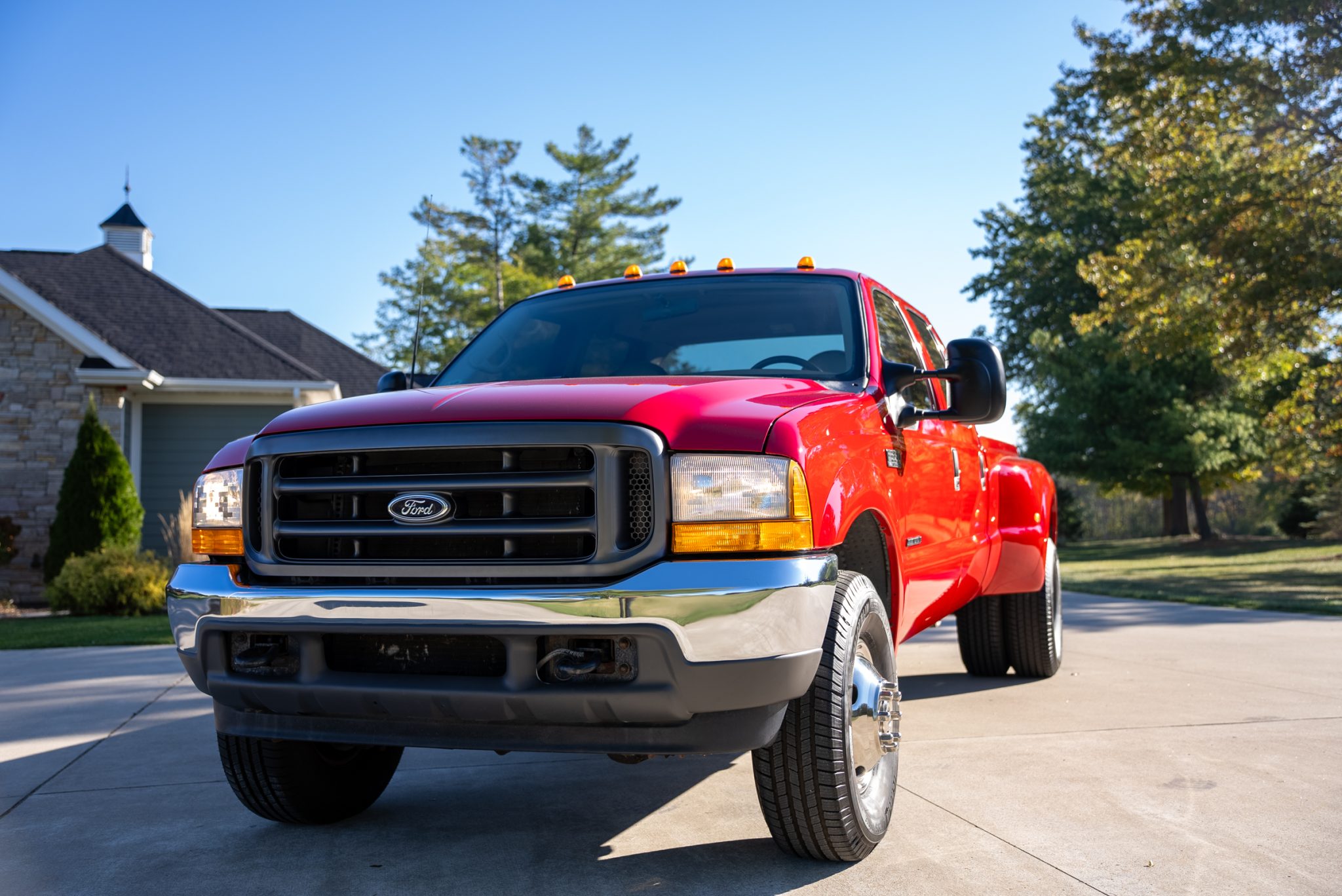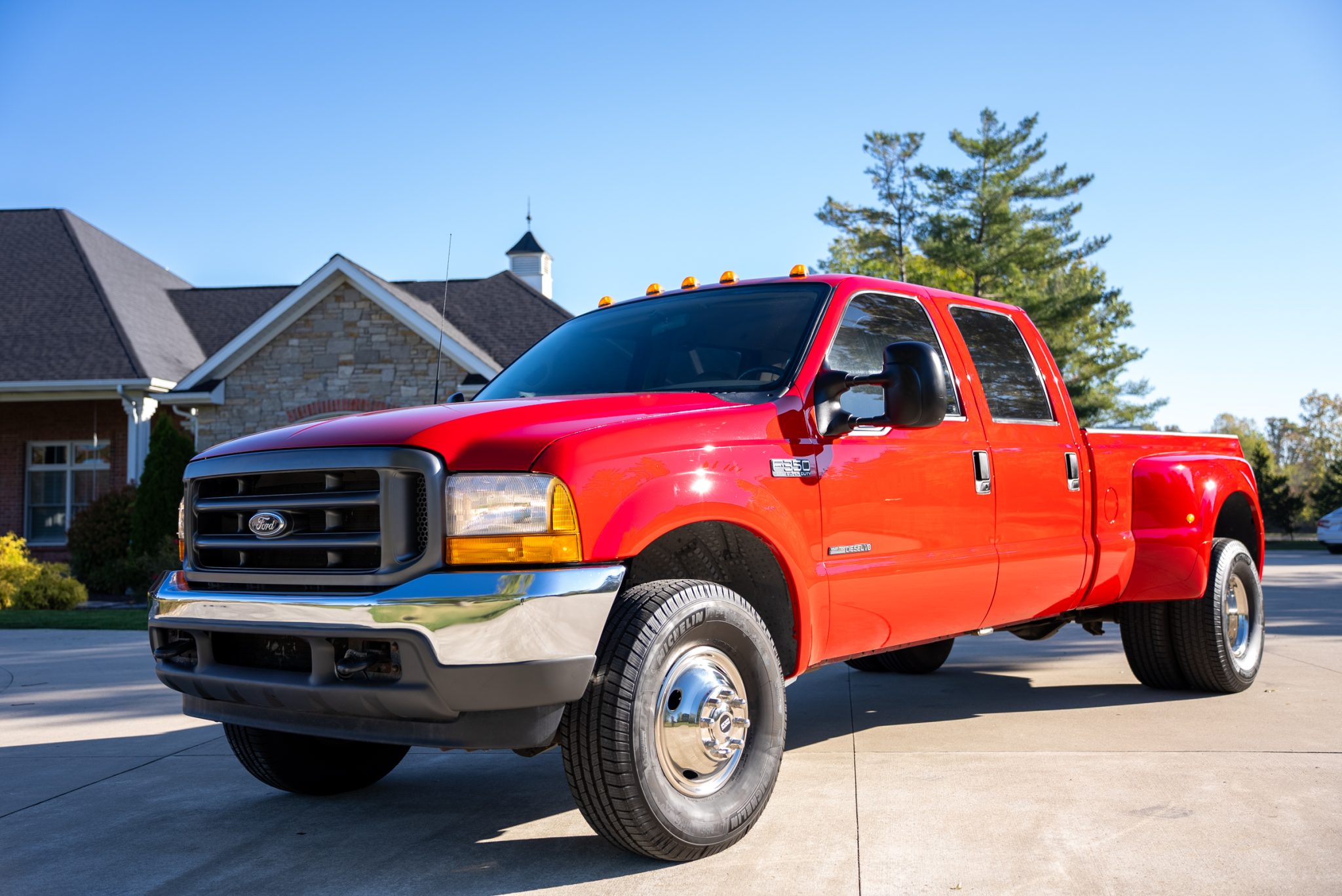 Chrome-finished 16″ Pacific Dualies wheels are mounted with 285/75 Michelin Defender LTX M/S tires. The truck is equipped with a dually rear axle and stopping power is provided by four-wheel disc brakes. The sway bar links are noted to have been replaced.