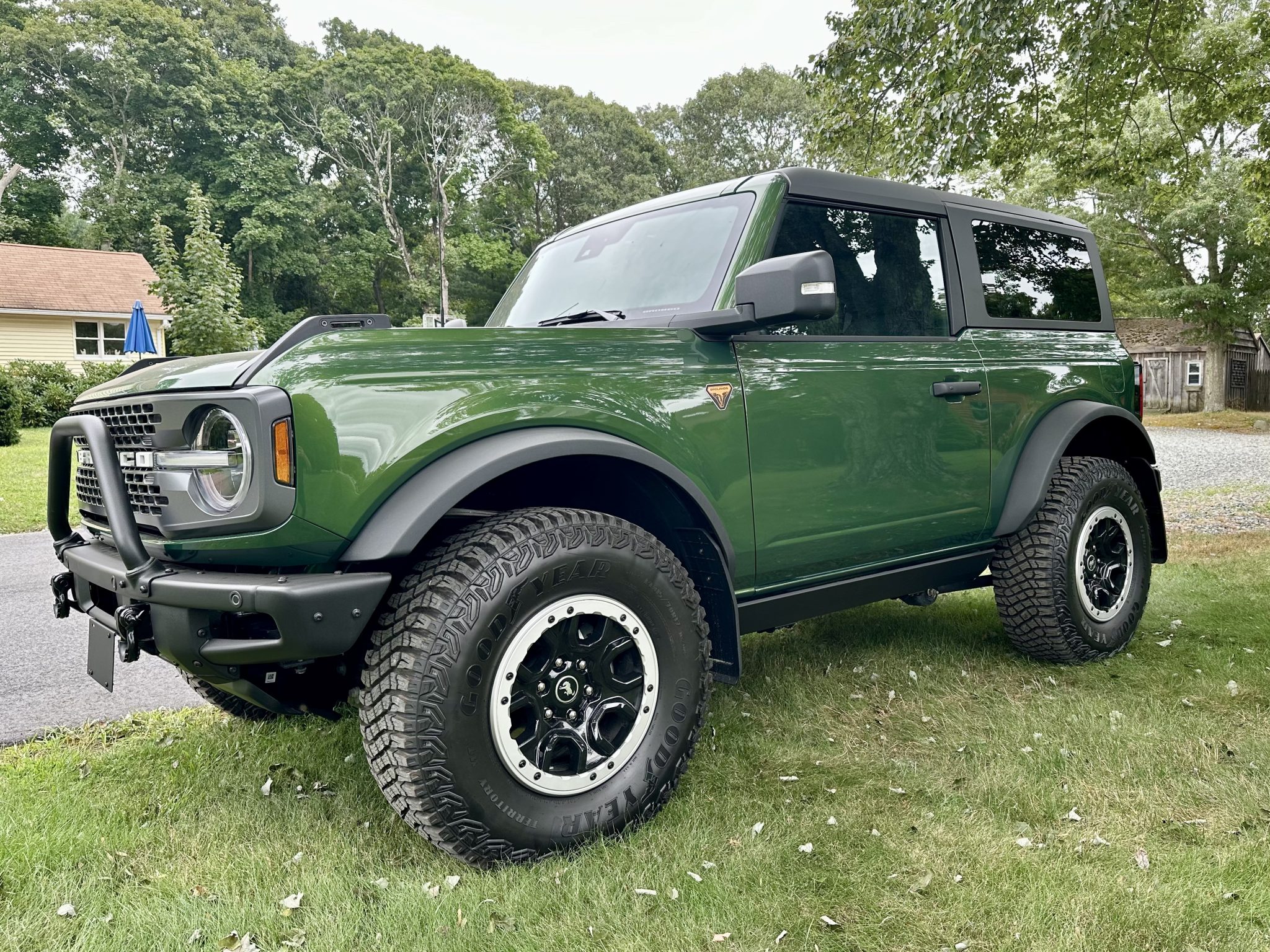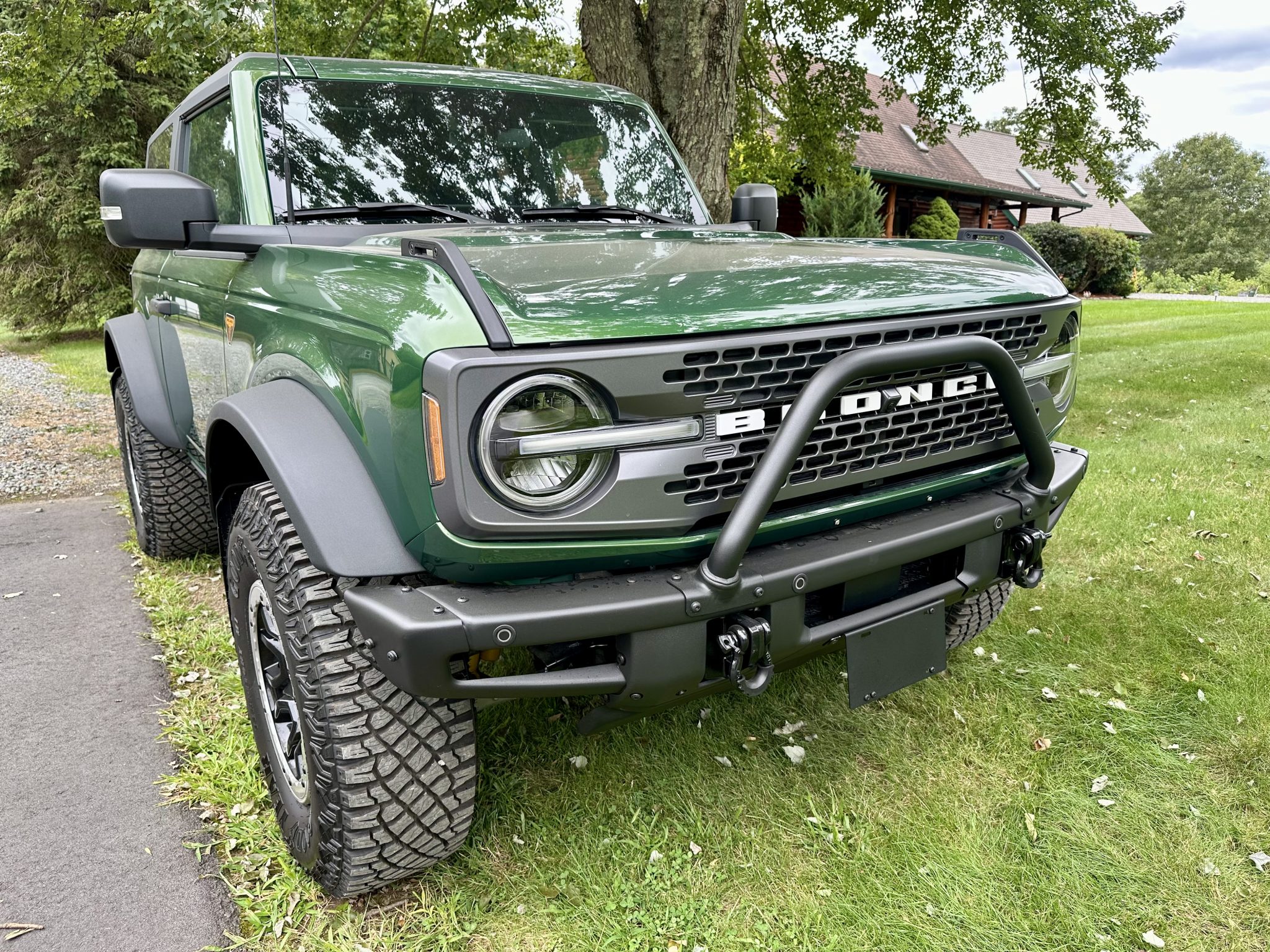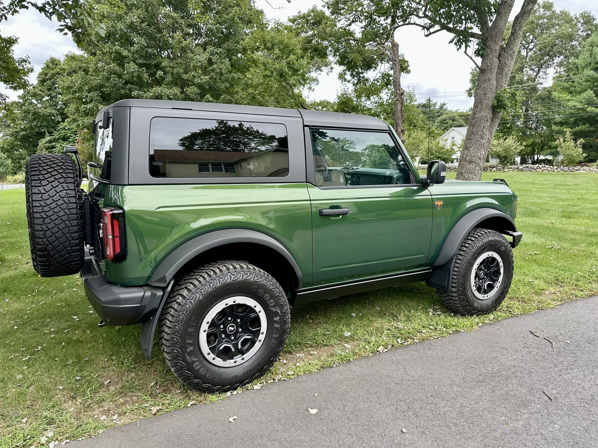 The 17″ beadlock-capable wheels are mounted with Goodyear tires. Stopping power is provided by four-wheel disc brakes with ventilated rotors, and the truck is equipped with an electronically controlled front sway bar and a Terrain Management System with seven selectable “Goes Over Any Type of Terrain” (G.O.A.T.) drive modes. The Sasquatch Package added Bilstein position-sensitive dampers as well as high-clearance suspension and wheel arch flares.
