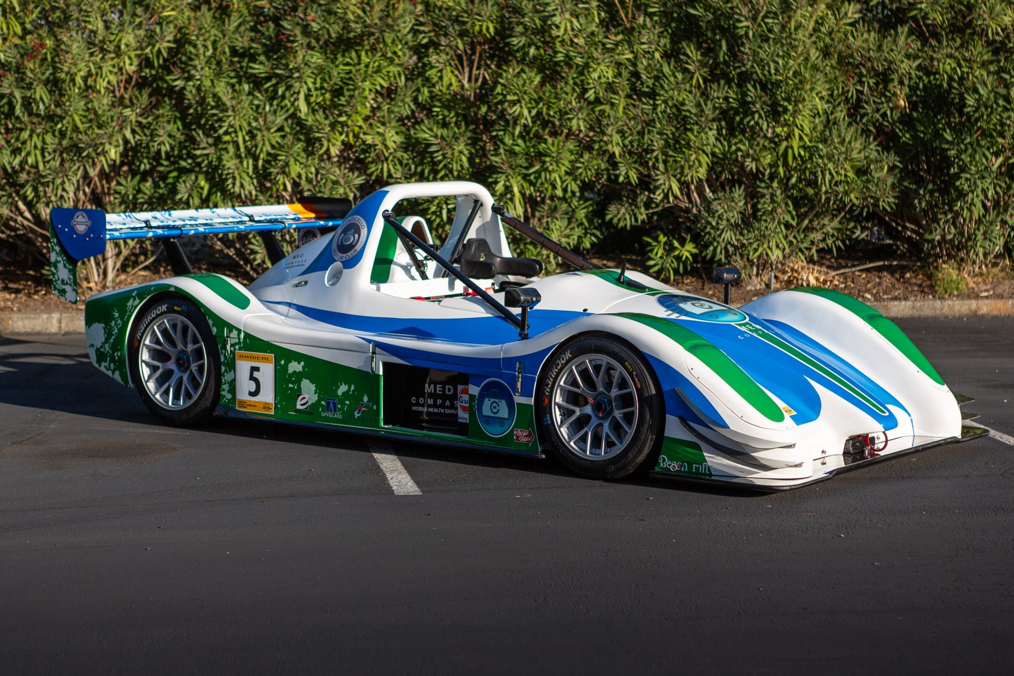 Center-lock 15” front and 16” rear wheels are mounted with 200/580 and 260/610 Hankook Ventus racing slicks, respectively. The suspension has been fitted with Intrax triple-adjustable dampers. The brake calipers were rebuilt in November 2024 at Seymour Enterprises of Benicia, California, and the master cylinders were replaced along with the pads and rotors.