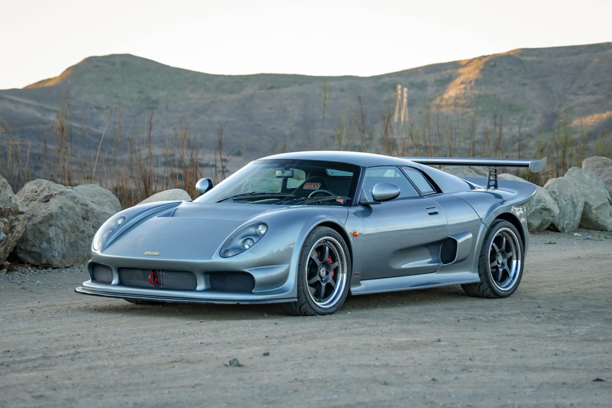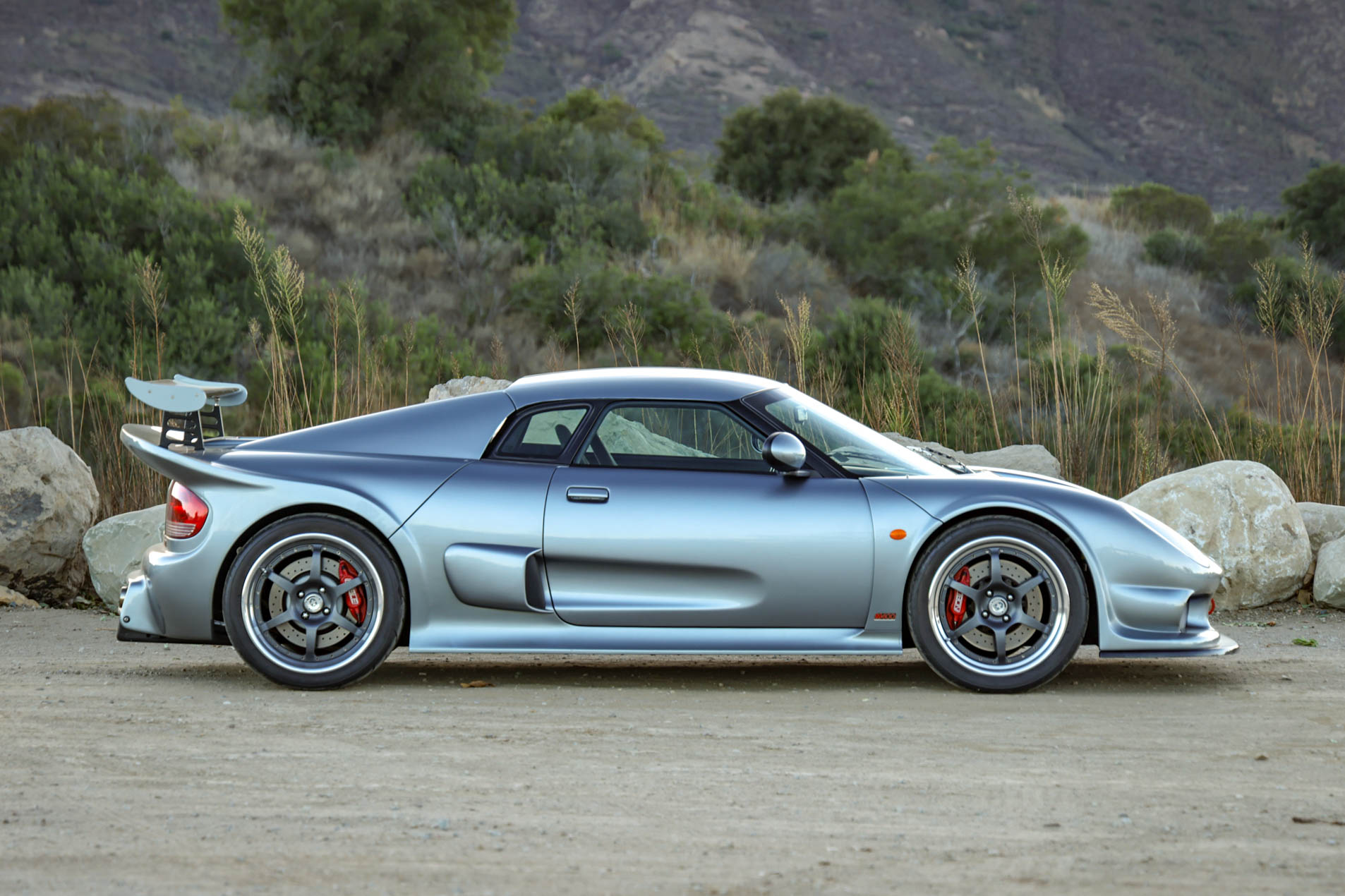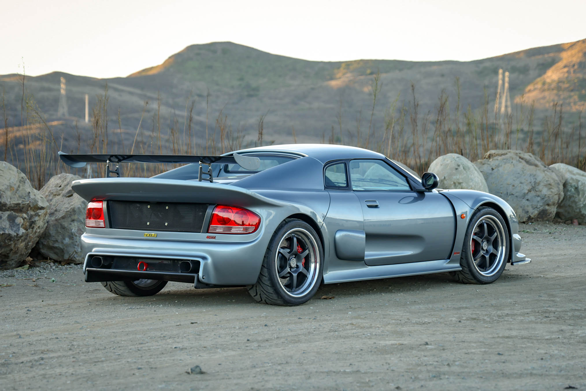 The multi-piece 18″ HRE alloy wheels are mounted with 235/40 front and 265/35 rear Toyo Proxes R888 tires. The front suspension uprights were modified to increase camber adjustment. Braking is handled by Noble-branded multi-piston calipers and cross-drilled rotors at all four corners.