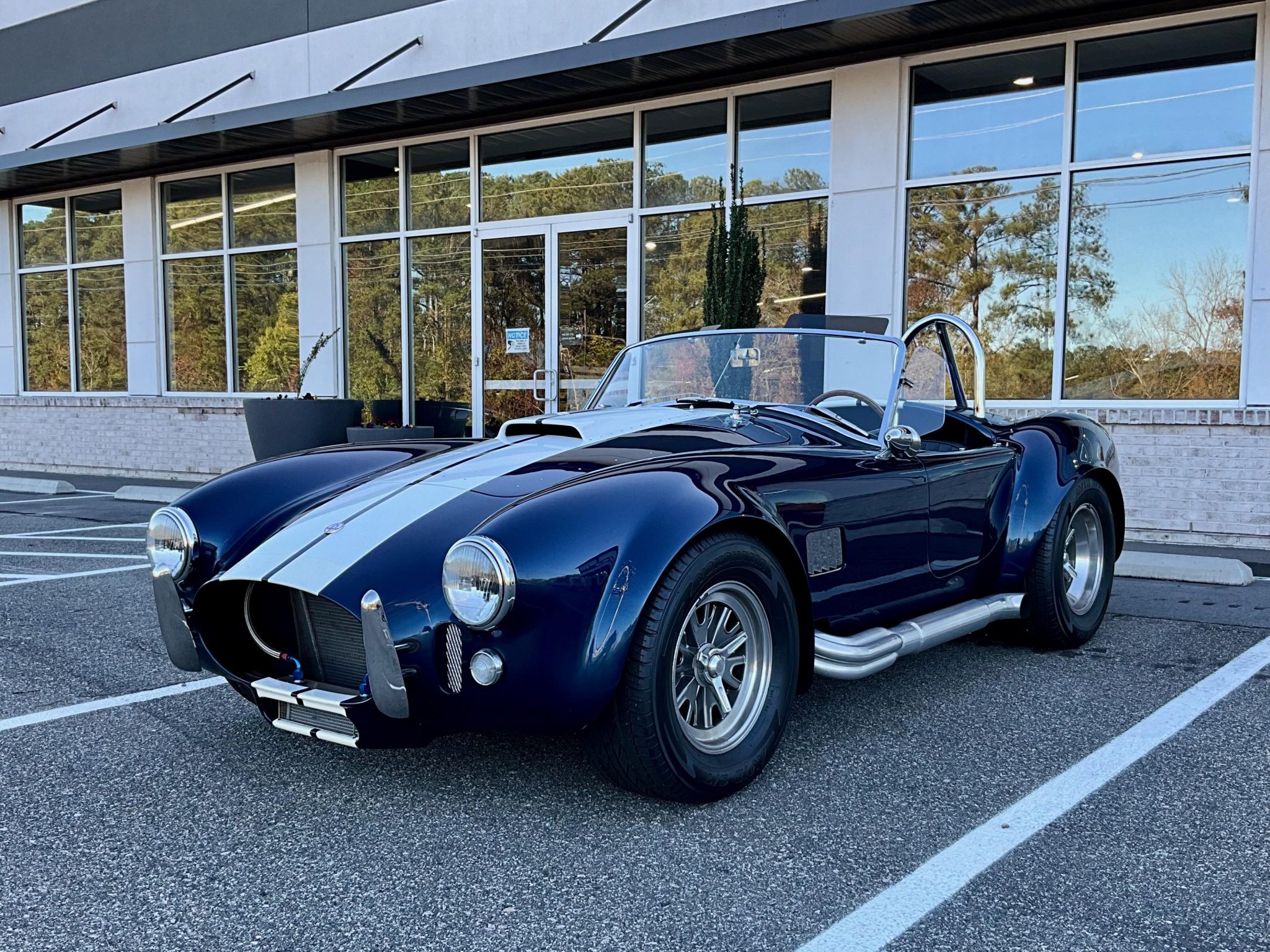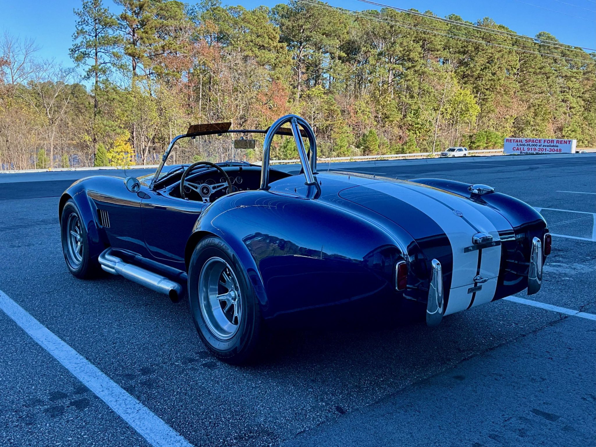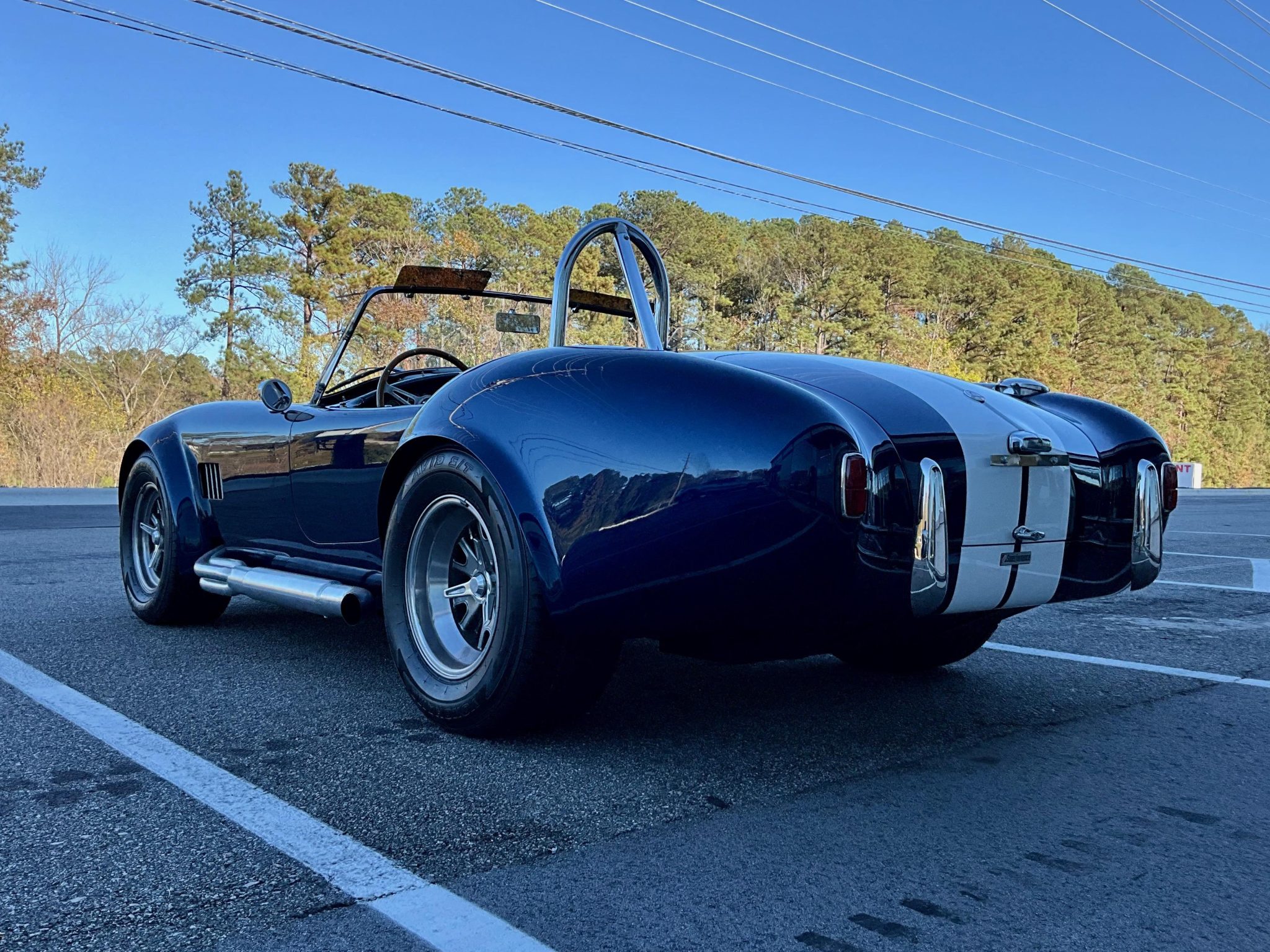 The 15″ Halibrand-style wheels are mounted with 225/60 front and 275/60 rear Yokohama Avid S/T tires. The car is equipped with independent suspension, and stopping power is provided by four-wheel discs.