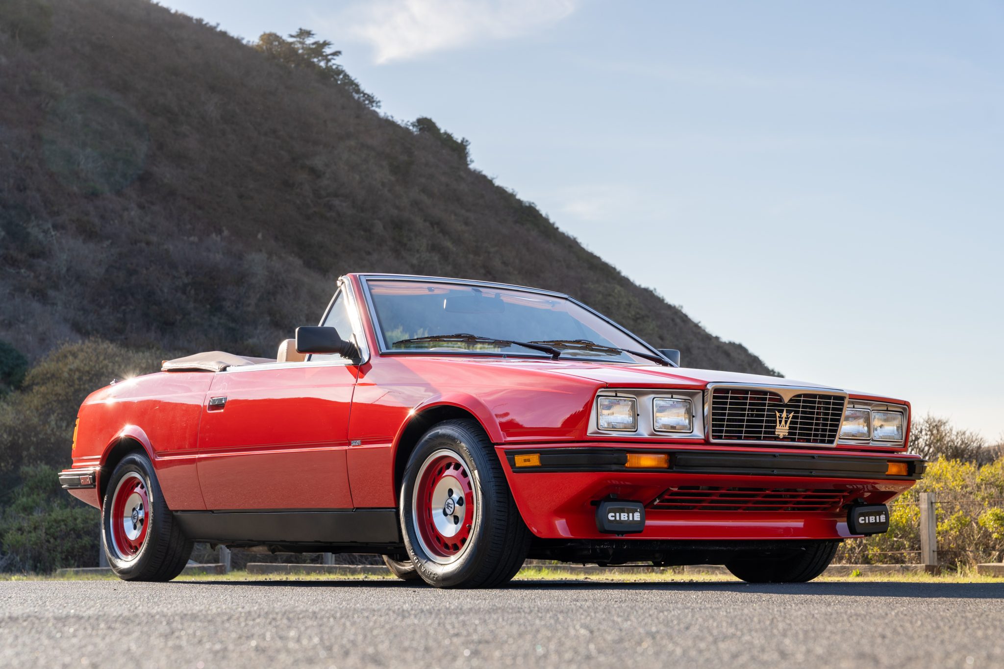 Color-matched 14″ alloy wheels wear Maserati center caps and are mounted with 205/60 Haida tires. Stopping power is provided by four-wheel disc brakes and the fully independent suspension is fitted with Bilstein shocks. A brake fluid flush was recently carried out.