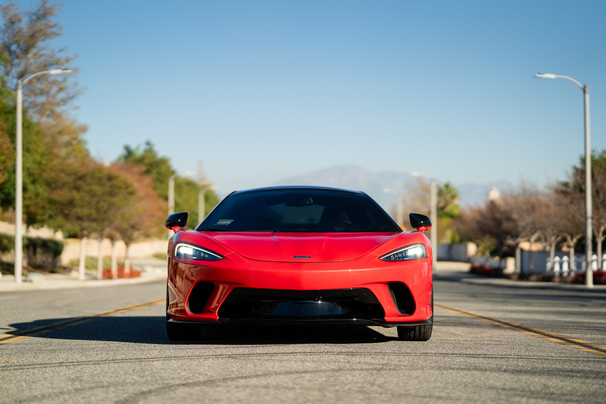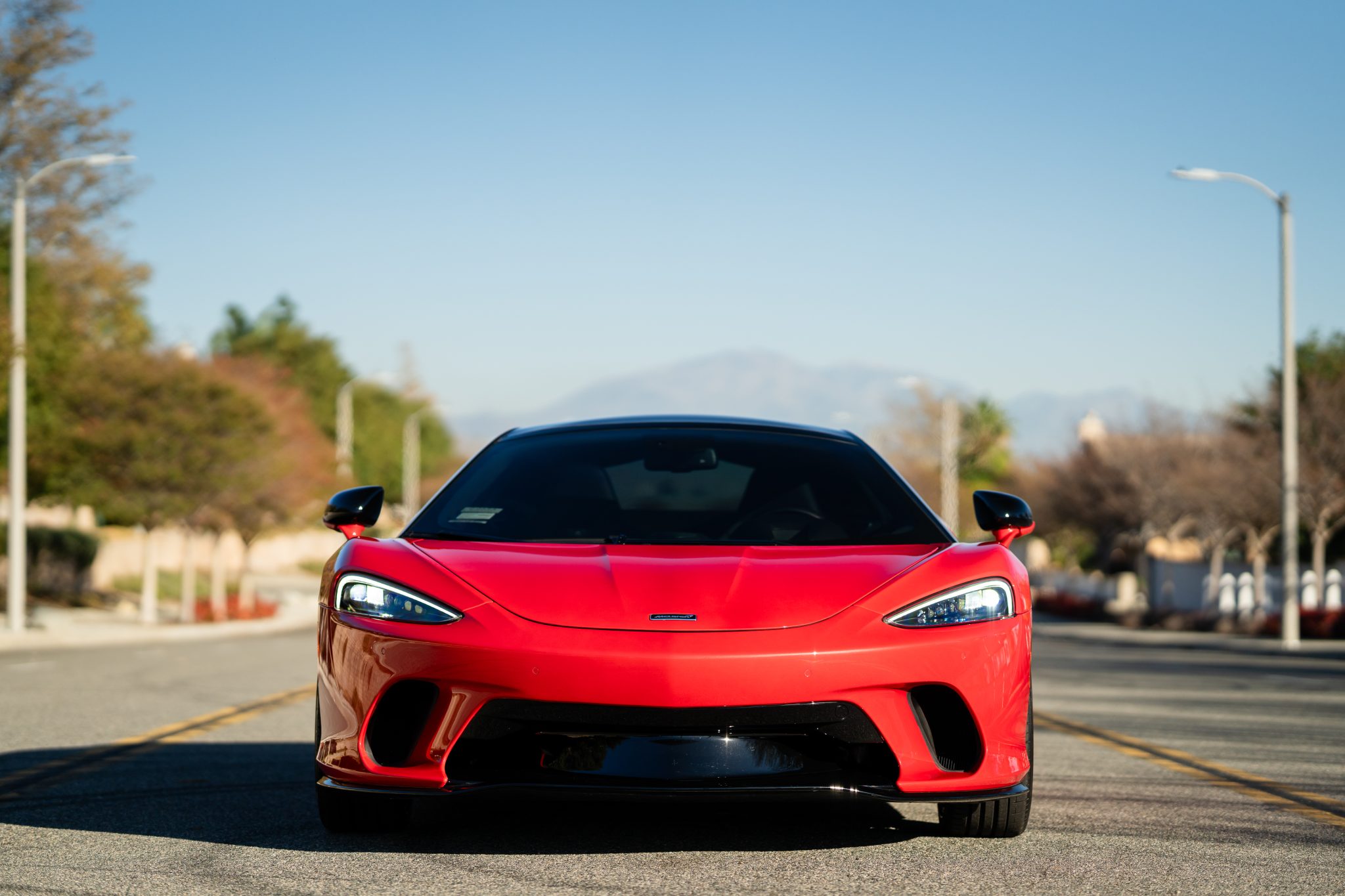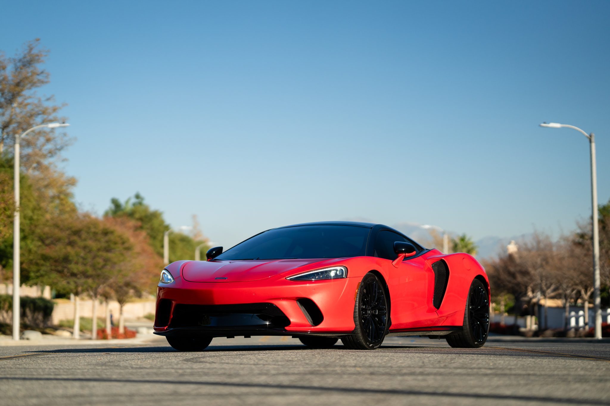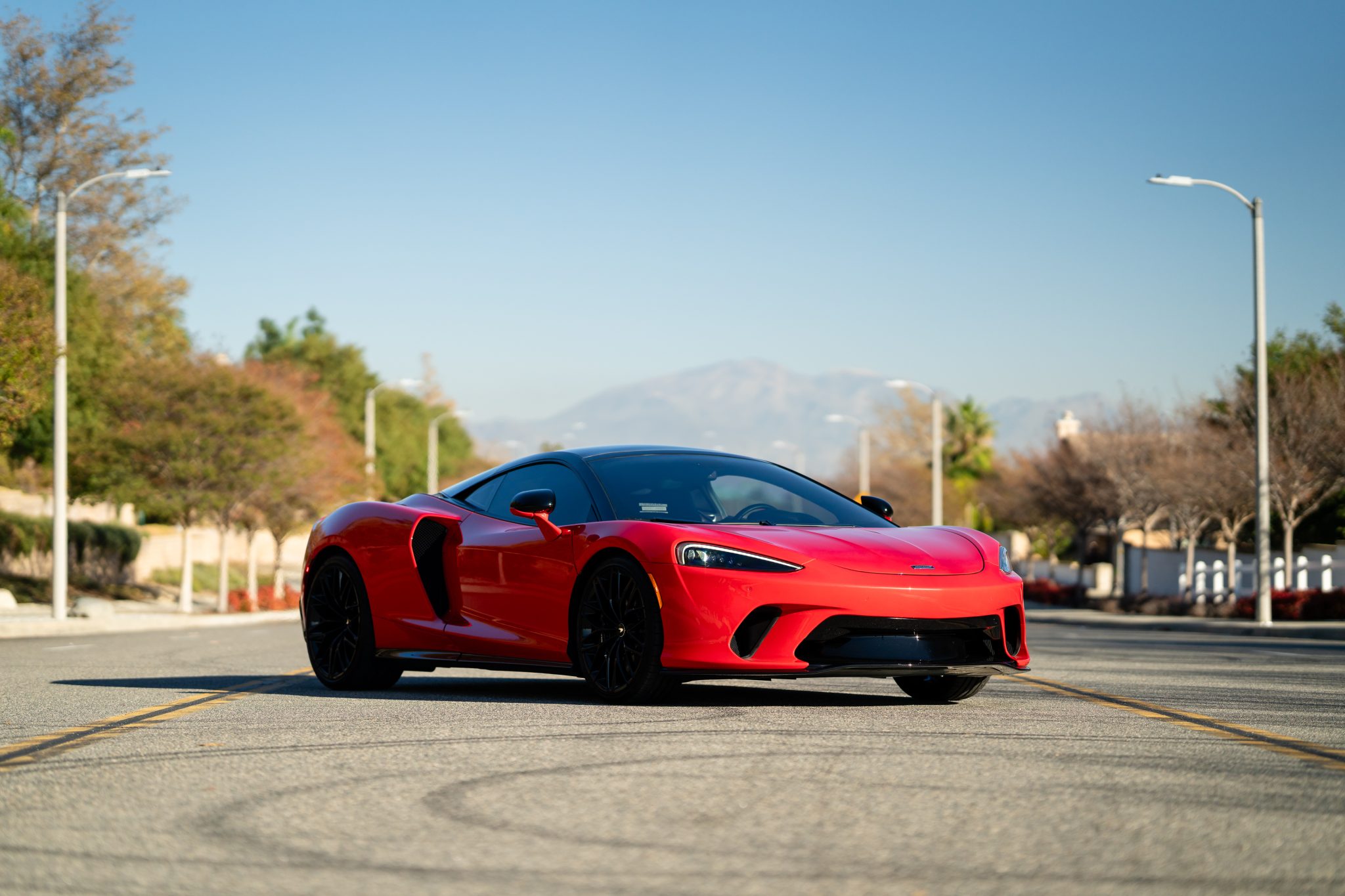 Gloss-black, 10-twin-spoke 20″ and 21″ forged-alloy wheels are wrapped in Pirelli P Zero tires measuring 225/35 in the front and 295/30 out back. The car is equipped with a double-wishbone suspension, McLaren Adaptive Damping, a vehicle-lift system, and McLaren-logo black calipers paired with carbon-ceramic rotors.