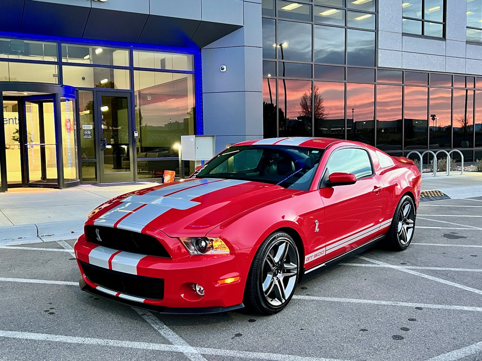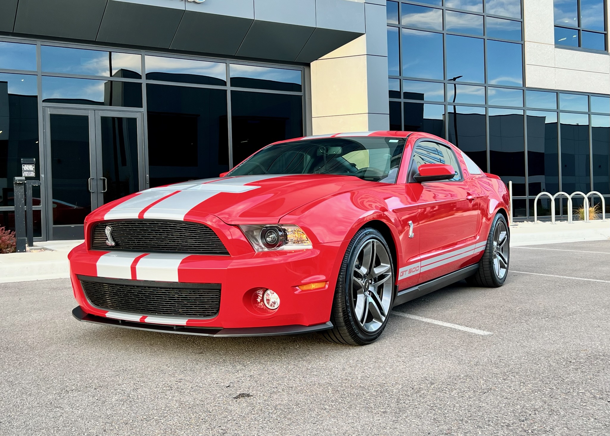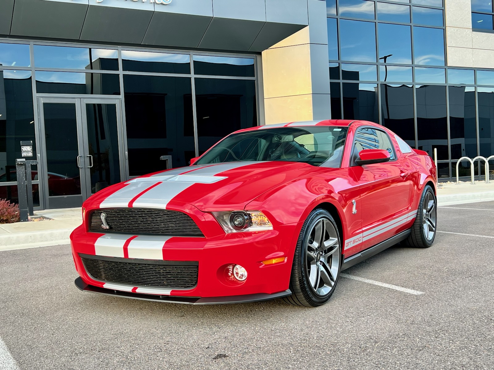 The 19″ twin-spoke alloy wheels are mounted with older Goodyear tires. The selling dealer states that Ford Racing suspension components are installed along with Brembo front calipers and slotted and cross-drilled rotors.