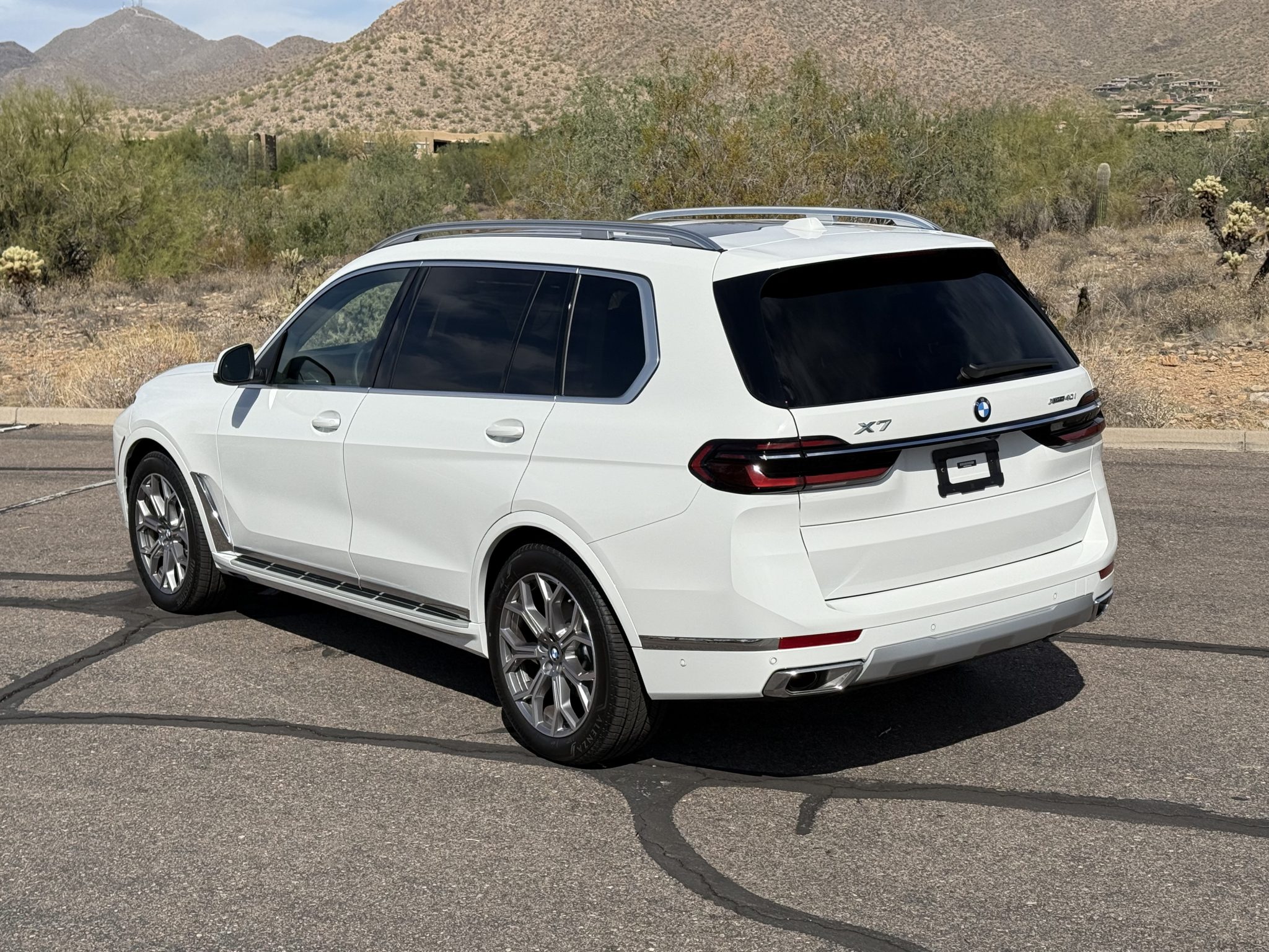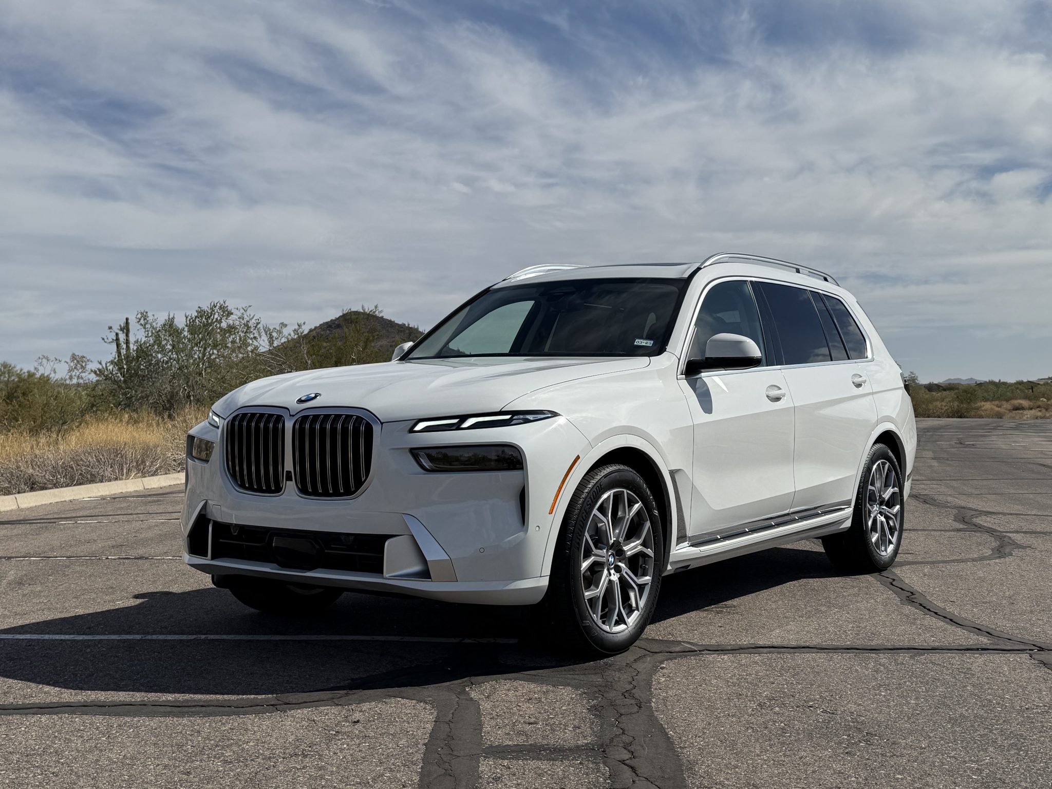 The 21″ Y-spoke alloy wheels are mounted with Bridgestone Alenza Sport A/S tires. An air suspension with adaptive dampers and multiple driver-selectable modes came standard on the X7, and braking is handled by ventilated discs at each corner.