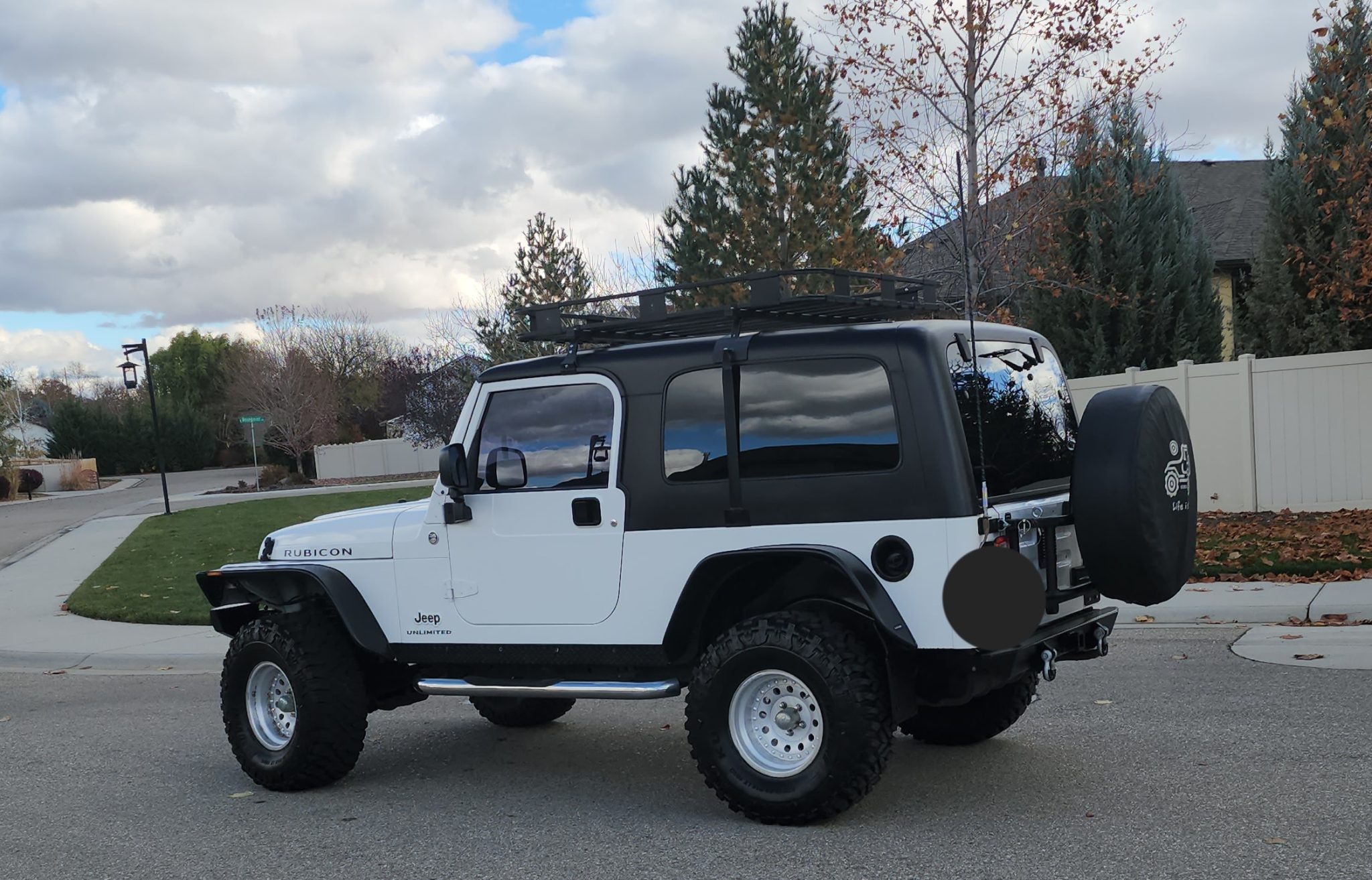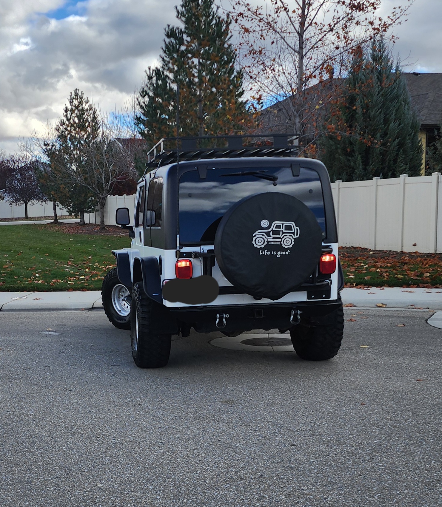 Eagle Alloy 15″ wheels are fitted with 33×12.50″ Kumho Road Venture tires, and a covered spare is mounted to a swing-out rear carrier. The truck rides on a Fabtech 4″ lift kit with Skyjacker shocks. Stopping power is provided by disc brakes at all four corners with ABS.