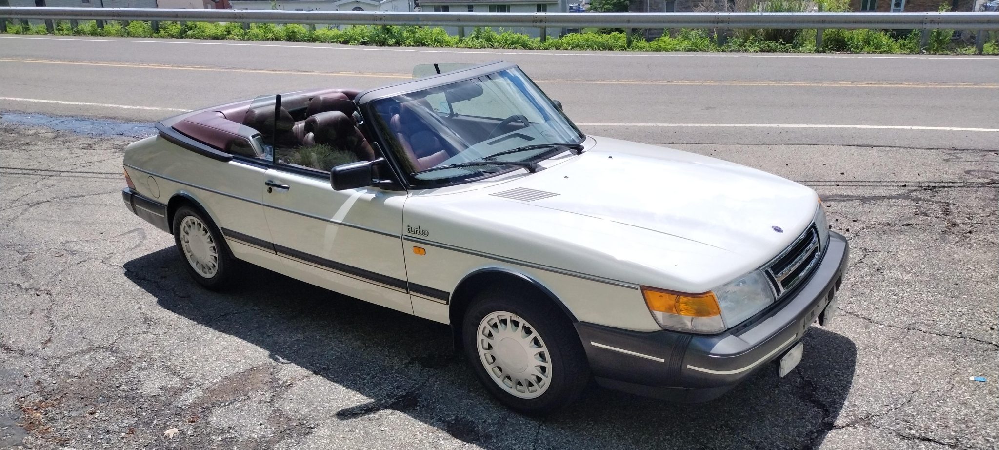 Silver-finished 15″ 15-hole wheels are mounted with 185/65 Goodyear Eagle NCT65 tires, which the seller states were present on the car when it was delivered. Factory equipment included power-assisted rack-and-pinion steering, and braking is handled by discs at each corner.