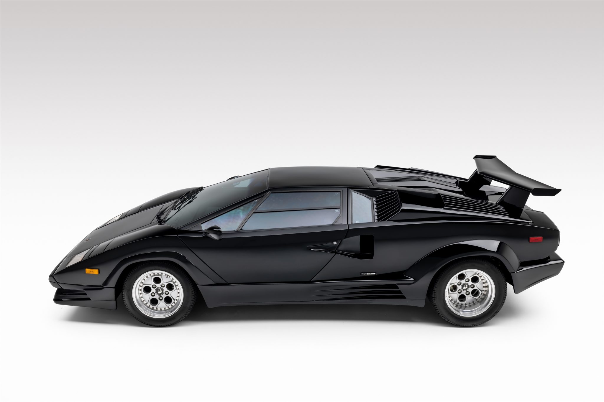 The black-finished bodywork is mounted over a tubular steel space frame and incorporates pop-up headlights paired with front fog lights in the front lip spoiler as well as NACA ducts aft of the scissor doors and a V-shaped rear wing. An October 2007 entry on the Carfax report notes an accident resulting in damage to the front and left front of the car. The selling dealer notes that paint correction was performed in anticipation of the sale.