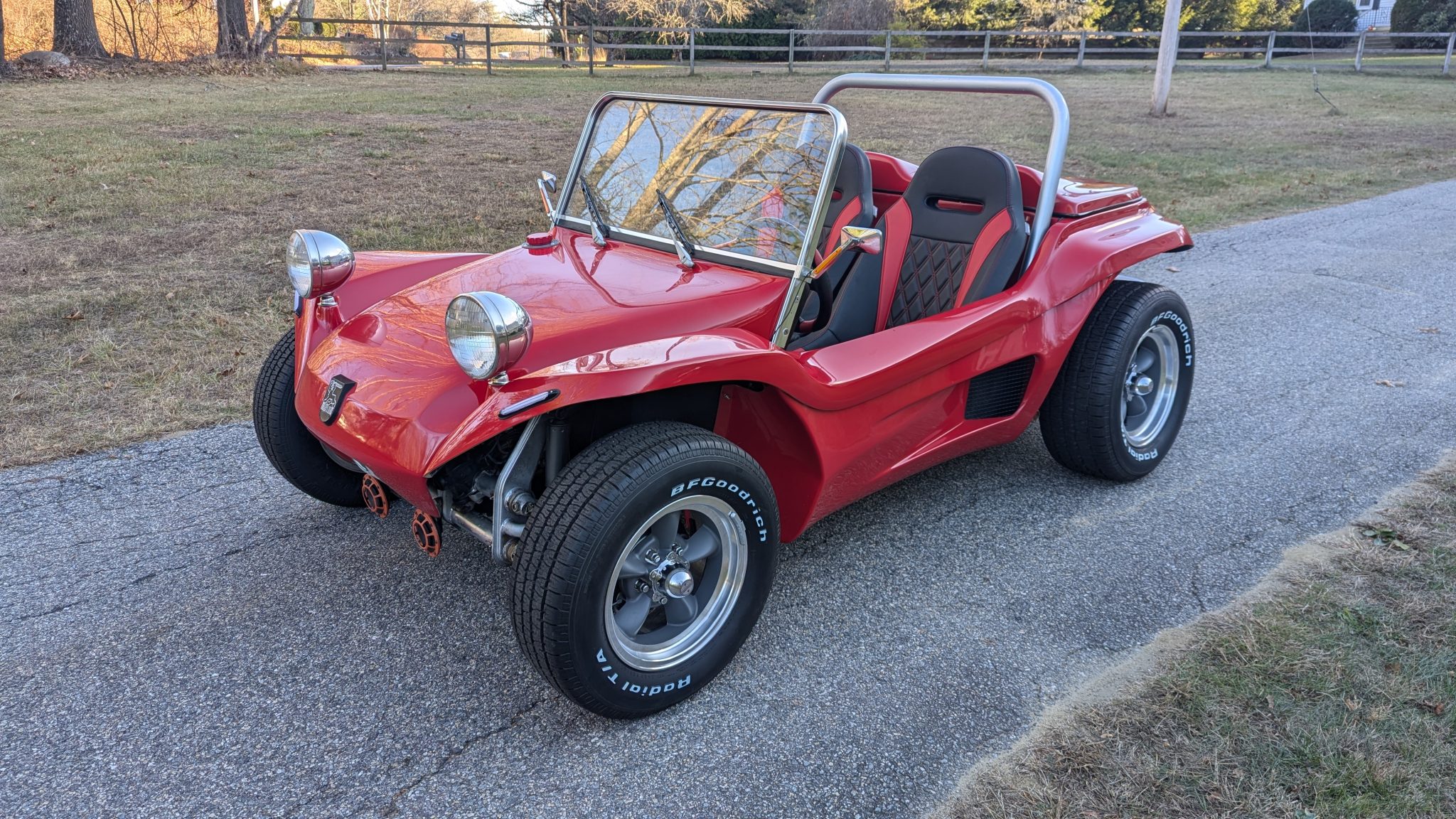 The 14” and 15” American Racing Torq Thrust D wheels are mounted with adapters and BFGoodrich Radial T/A white letter tires measuring 205/70 up front and 255/60 out back. Stopping power is provided by four-wheel drums with a dual-circuit master cylinder. The front wheel cylinders were rebuilt and the front and rear brake shoes, front wheel bearings, front spindle nuts, and rear wheel cylinders were replaced in December 2023. The wheels and tires were installed in 2024.