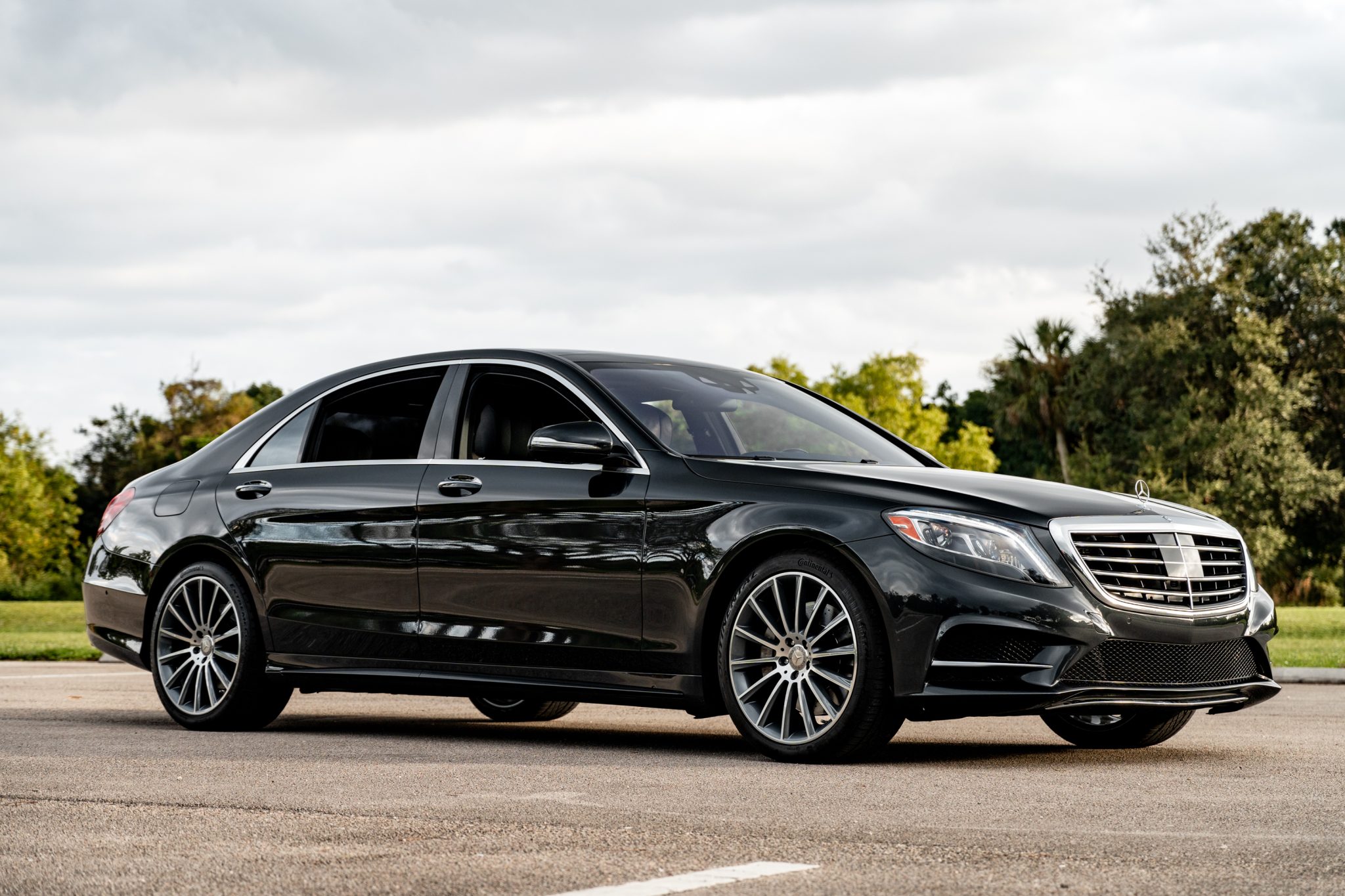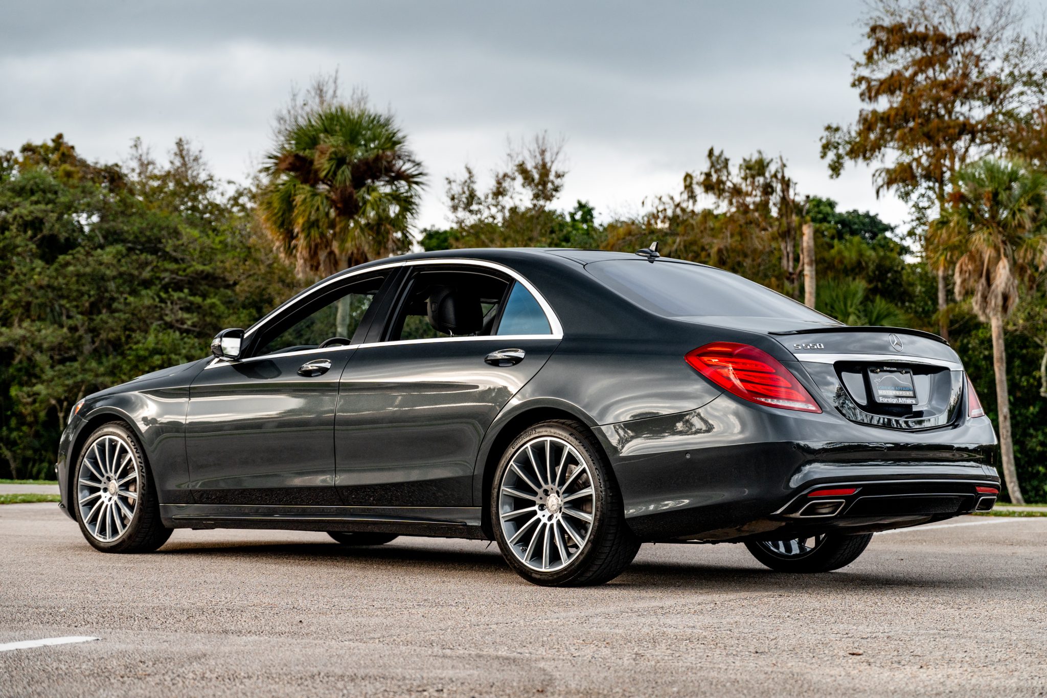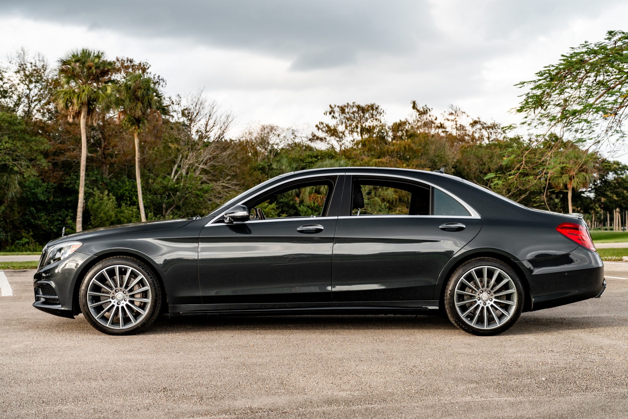 The 20″ AMG multi-spoke alloy wheels are mounted with 245/40 front and 275/35 rear Continental ExtremeContact DWS06 tires that were installed in 2023. The car is equipped with Airmatic air suspension, and stopping power is provided by cross-drilled and ventilated discs. Standard equipment for the S550 included an Electronic Stability Program, Collision Prevention Assist Plus, and Adaptive Braking Technology.