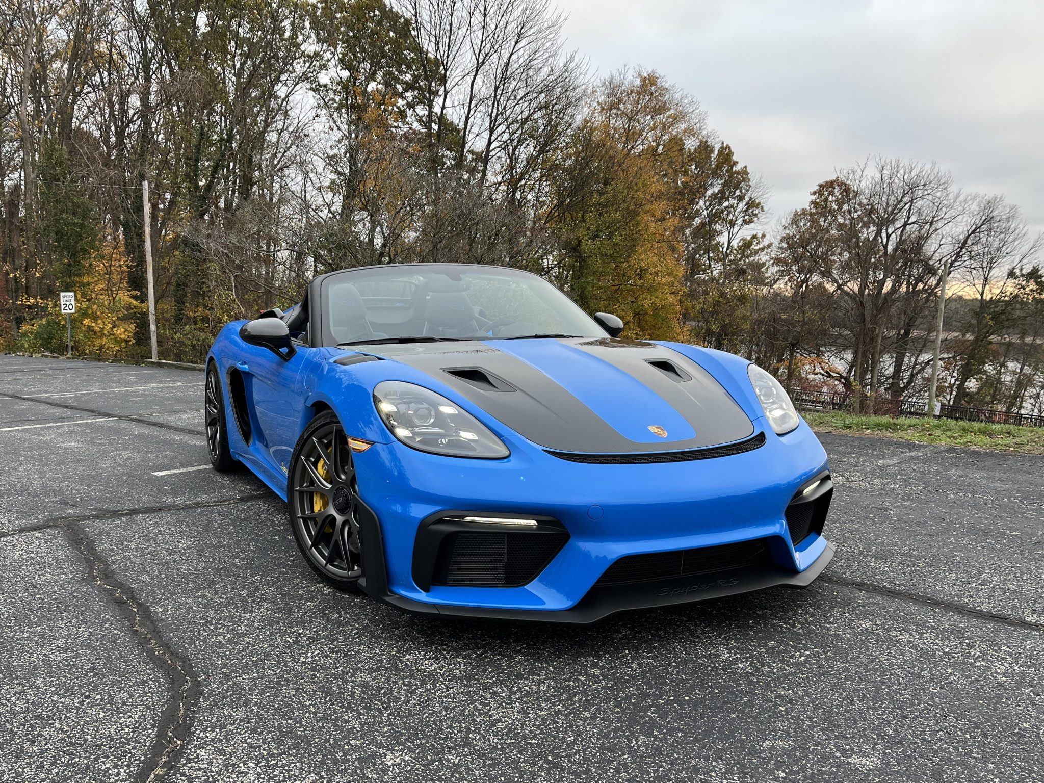 Satin Dark Silver 20″ Forged Magnesium wheels are mounted with 245/35 front and 295/30 rear Dunlop Sport Maxx Race 2 tires. A front-axle lift system was optioned from the factory as were Porsche Ceramic Composite Brakes (PCCB) featuring yellow Porsche-branded calipers at all four corners.