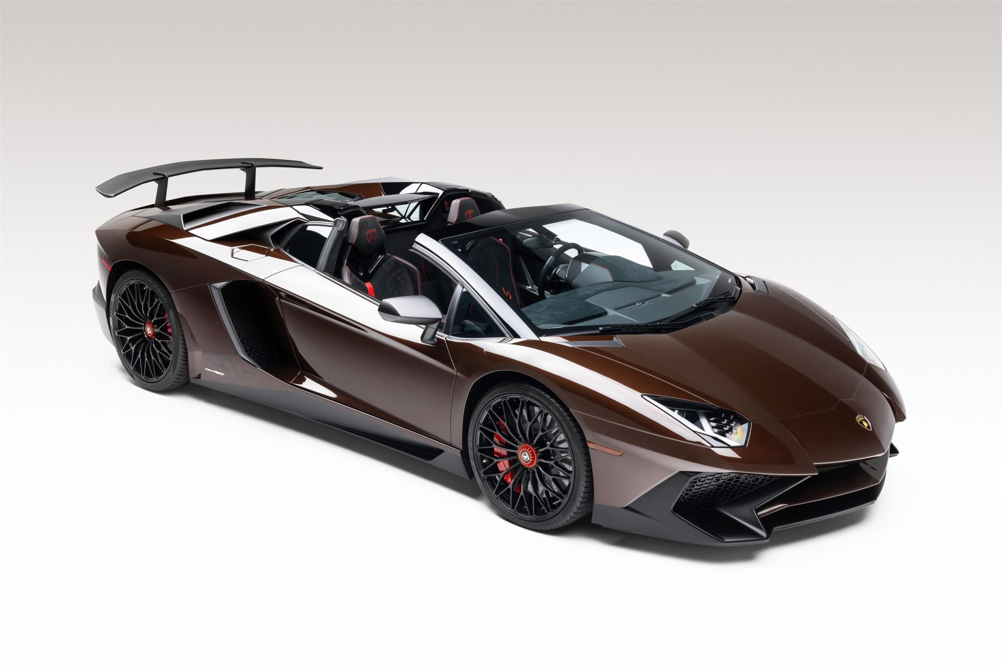 This example is finished in Marrone Eklipsis, an Ad Personam color choice that is complemented by carbon-fiber roof panels that can be stored in the front cargo area. Further details include a carbon-fiber composite monocoque shell, scissor doors, bi-xenon headlights, transparent engine cover louvers, and a quad-tip center-exit exhaust.