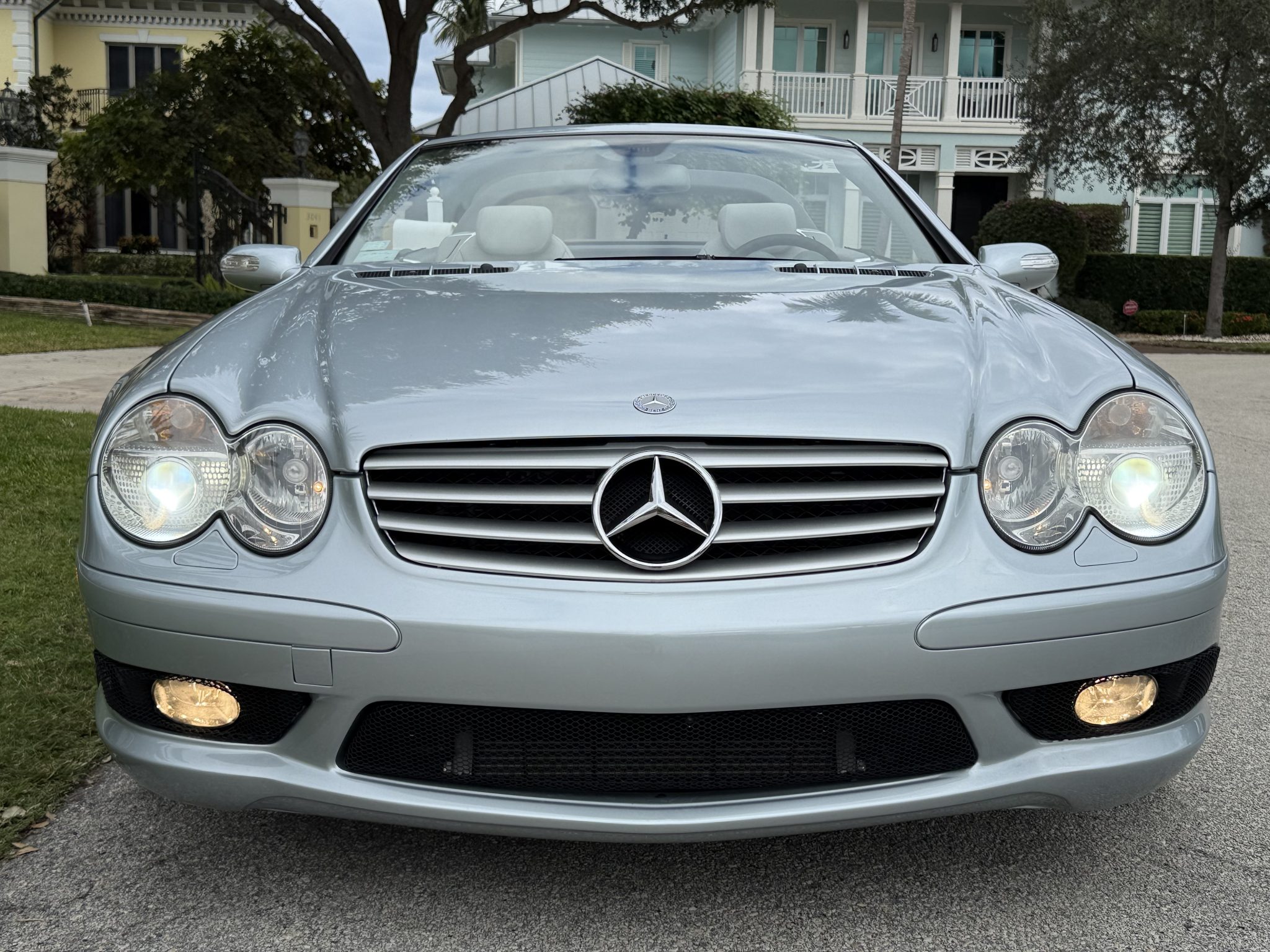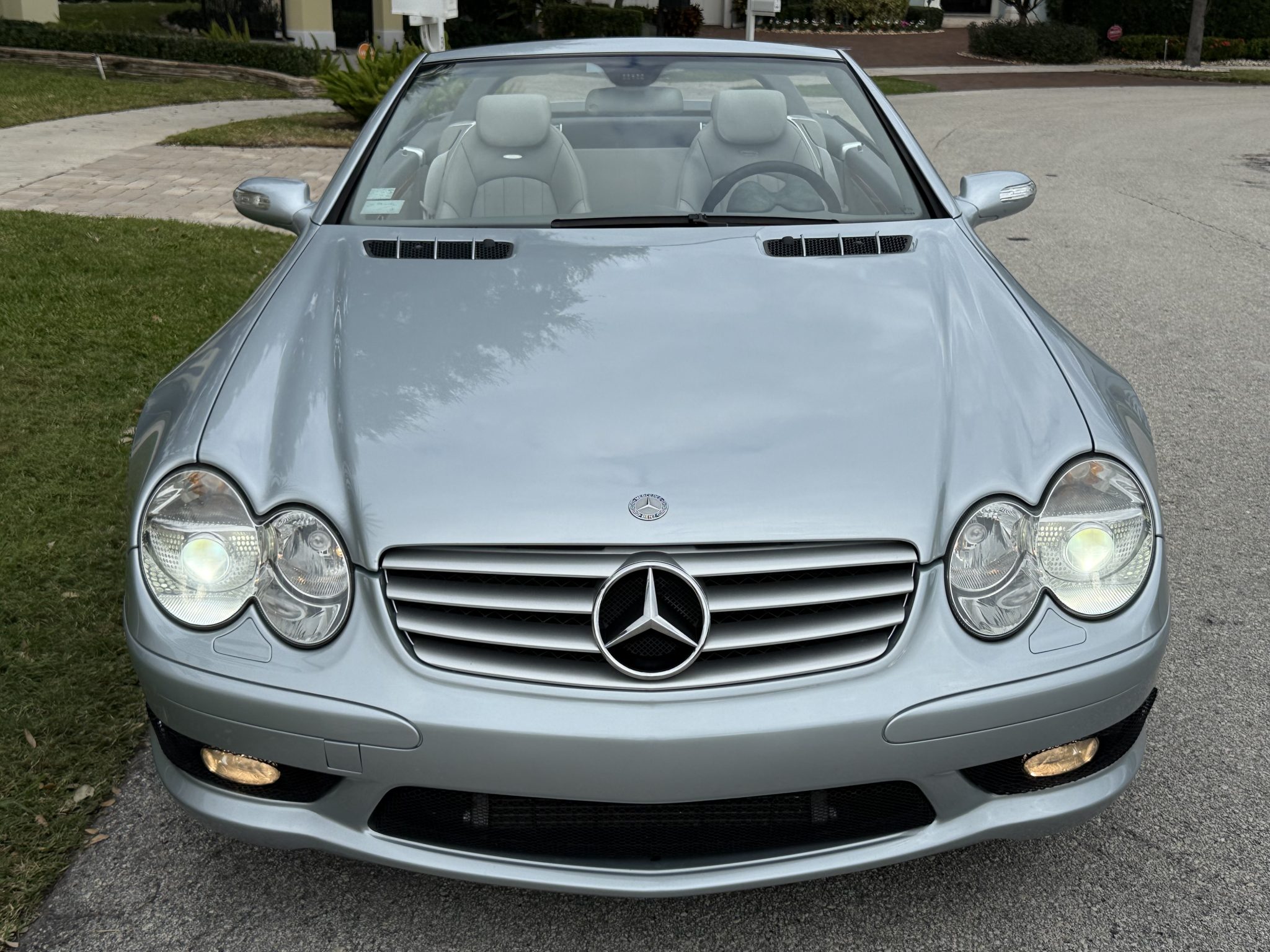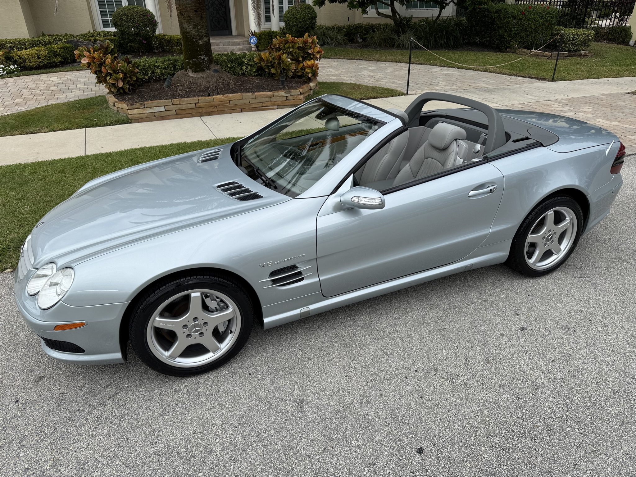 The 18″ AMG five-spoke alloy wheels are mounted with 255/40 front and 285/35 rear Pirelli P Zero tires. The car features Active Body Control suspension as well as an Electronic Stability Program, Automatic Slip Control, and an AMG High Performance Braking System with cross-drilled rotors. Imperfections are shown on the left-front and left-rear wheels.