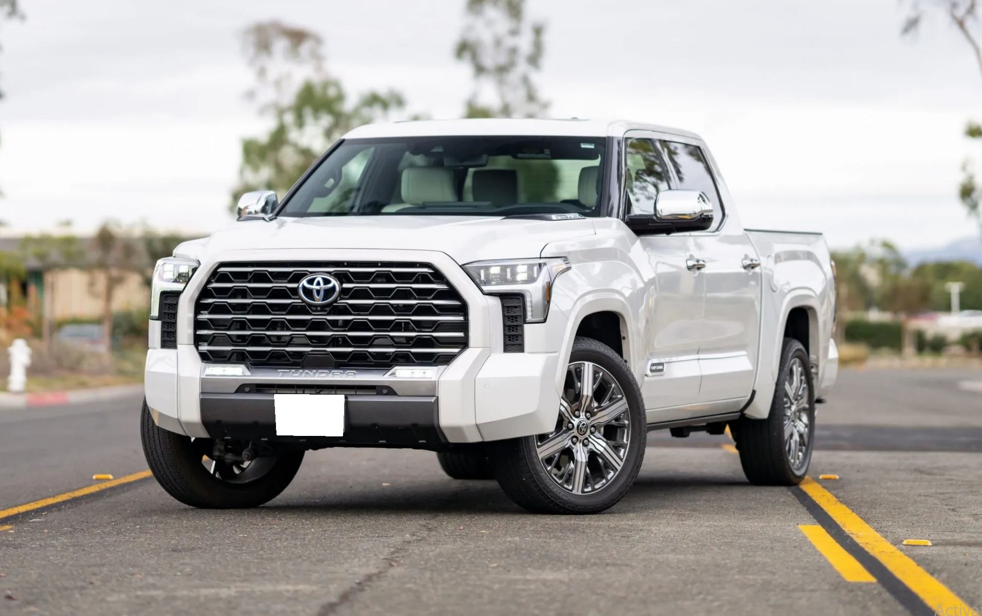 Machine-finished 22″ wheels with dark chrome-finished accents are wrapped in 265/50 Bridgestone Dueler H/T tires. The truck rides on an independent double-wishbone front suspension and a multi-link rear suspension with coil springs. Stopping power is provided by anti-lock disc brakes with ventilated rotors, dual-piston front calipers, and integrated regenerative braking.