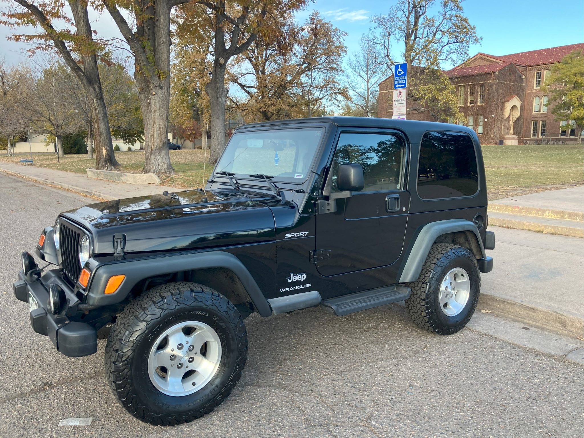 The 15″ Canyon aluminum wheels wear 31.5×10.5″ BFGoodrich All-Terrain T/A K02 tires that were mounted in May 2023. Stopping power is provided by disc brakes at all four corners, and the front pads, rotors, and calipers were replaced in June 2021.