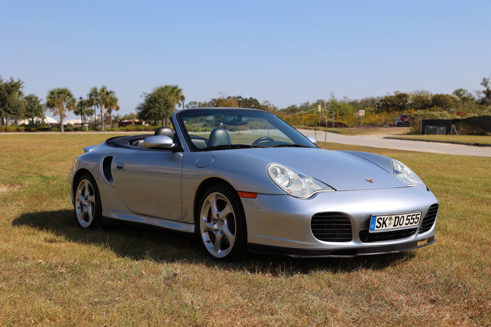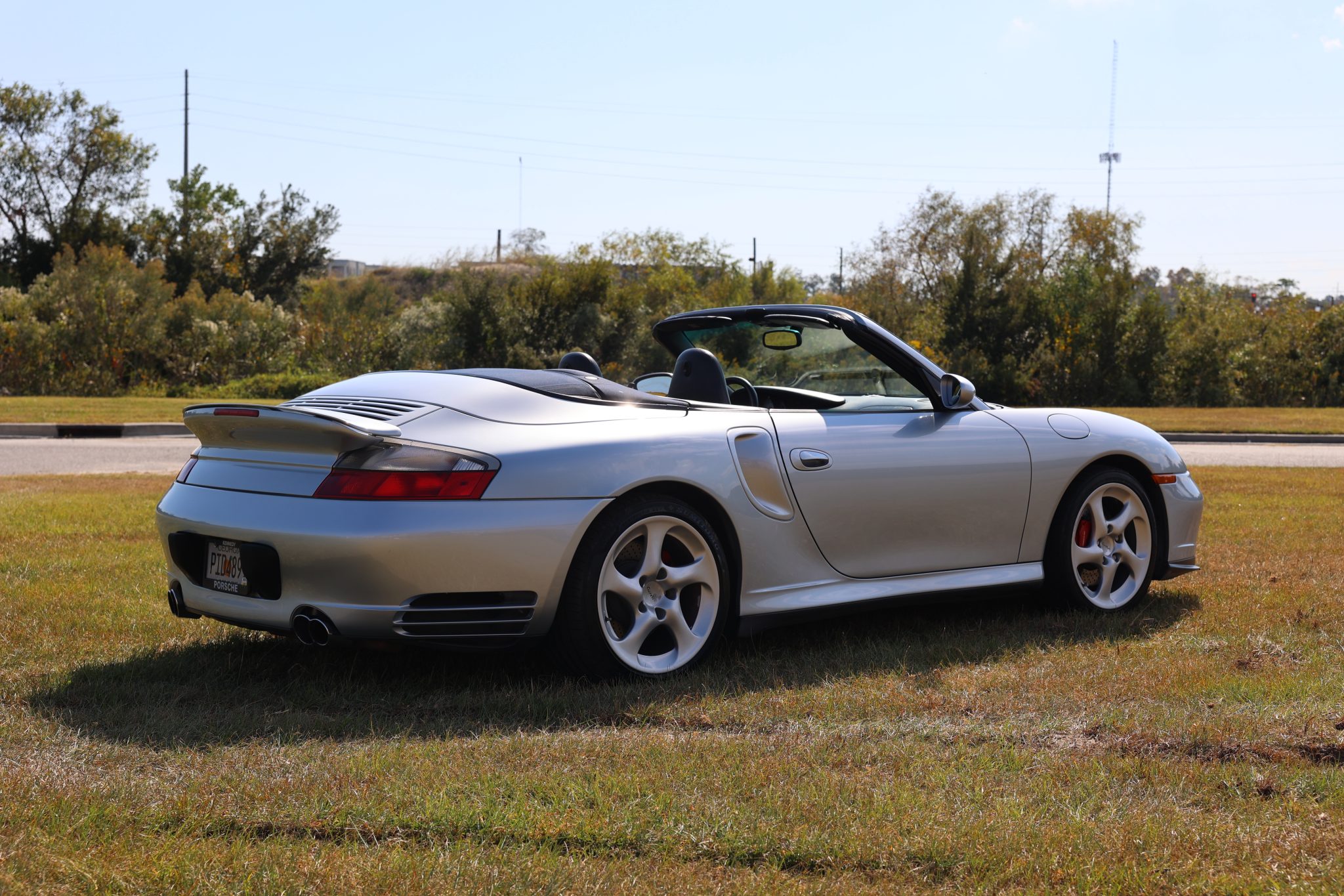 The 18″ Turbo Twist wheels are mounted with 225/40 front and 295/30 rear Sumitomo tires. The car is equipped with Porsche Stability Management (PSM) and an automatic brake differential. Braking is from vented and cross-drilled rotors at all four corners.
