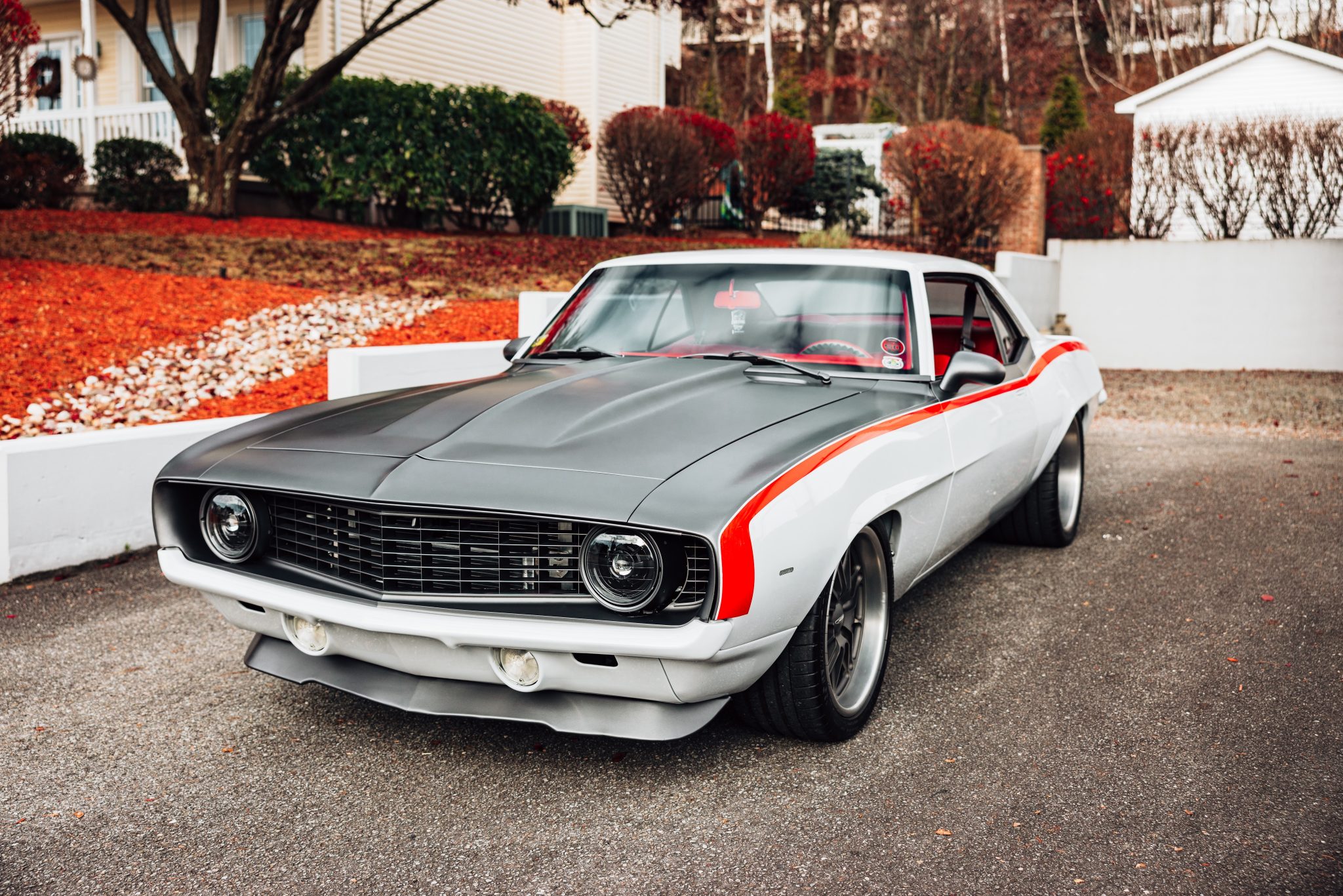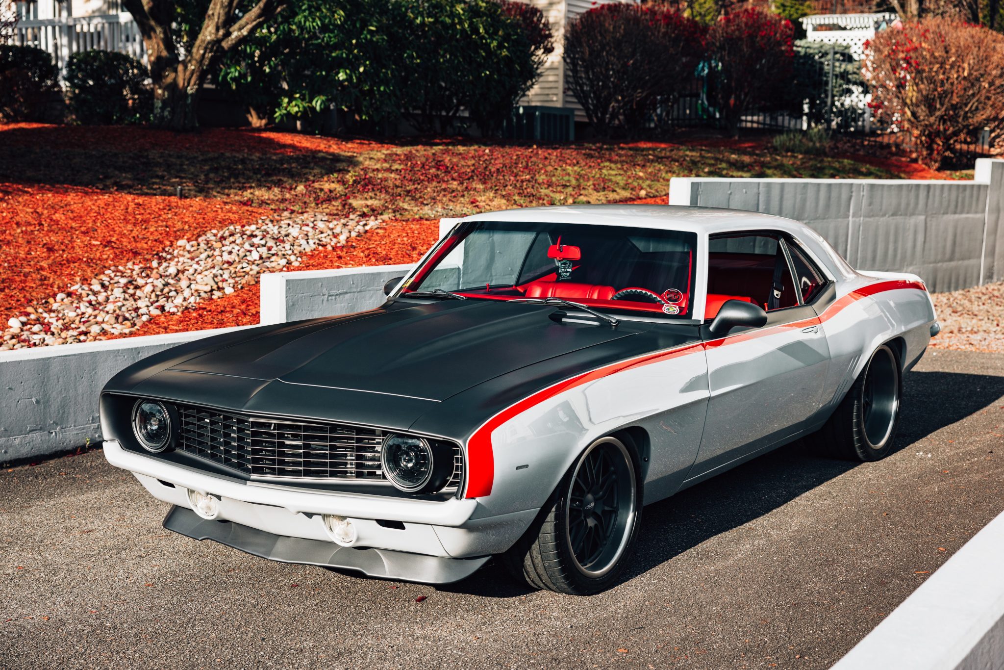 The car rides on a front subframe assembly and rear torque-tube suspension setup from Total Cost Involved. The rear wheel tubs have been widened to accommodate the Budnik wheels, which measure 18″ up front and 19″ out back and are wrapped in 275/35 and 325/30 Michelin Pilot Super Sport tires. Ridetech adjustable coilovers are installed at all four corners along with drilled and slotted disc brakes with Wilwood calipers.