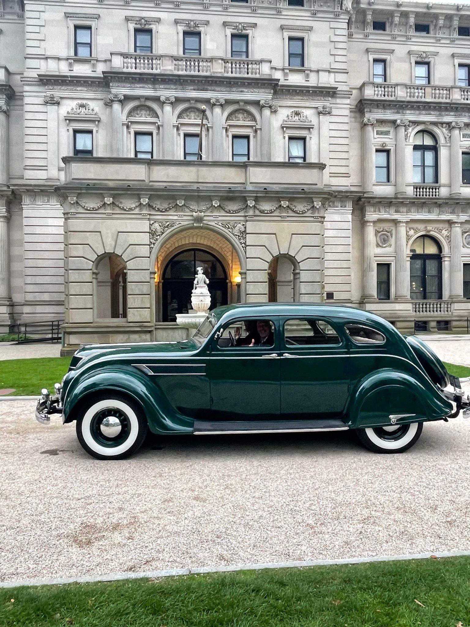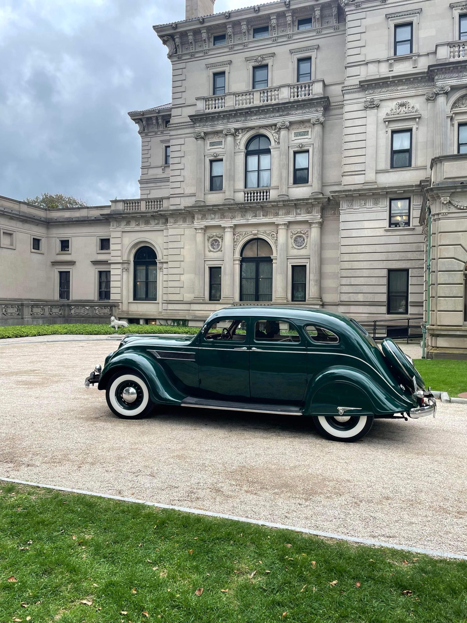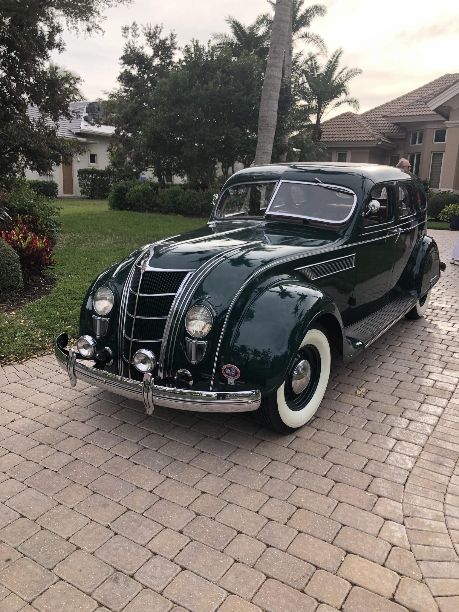 Boby-color artillery-style wheels wear chrome Chrysler-branded hubcaps, and they are mounted with Coker Classic whitewall radial tires that were installed under the seller’s ownership. A spare wheel in a body-color cover is mounted out back. The C1 Airflow rode on a 123″ wheelbase and featured progressive-rate leaf springs at all four corners. Stopping power is provided by hydraulic drums that were serviced with a replacement master cylinder and wheel cylinders under the seller’s ownership.