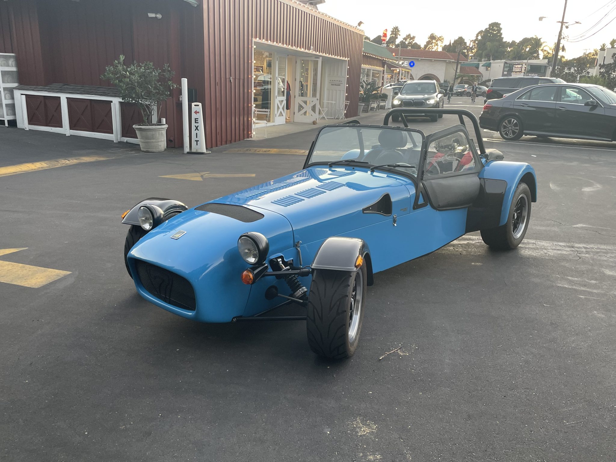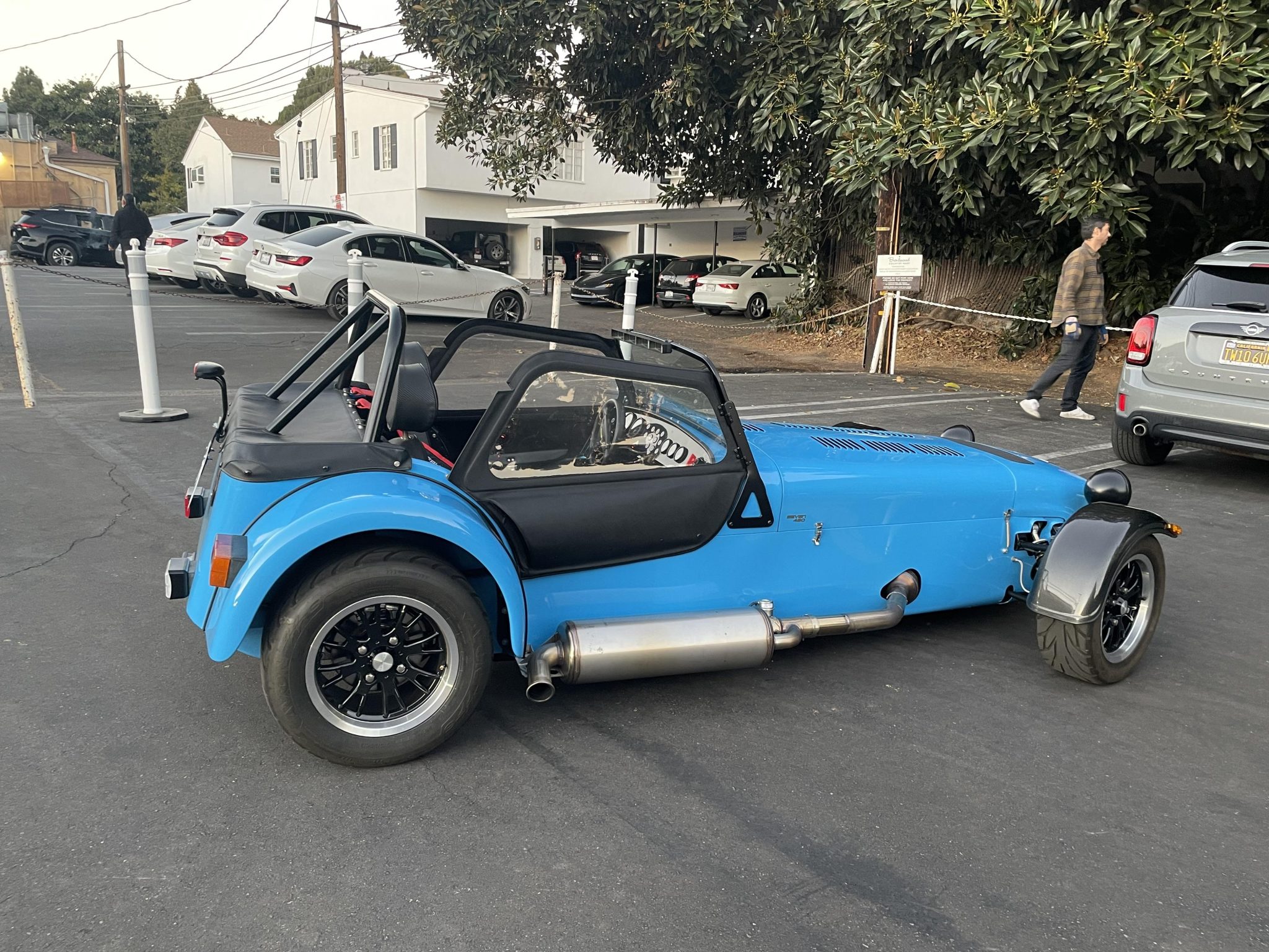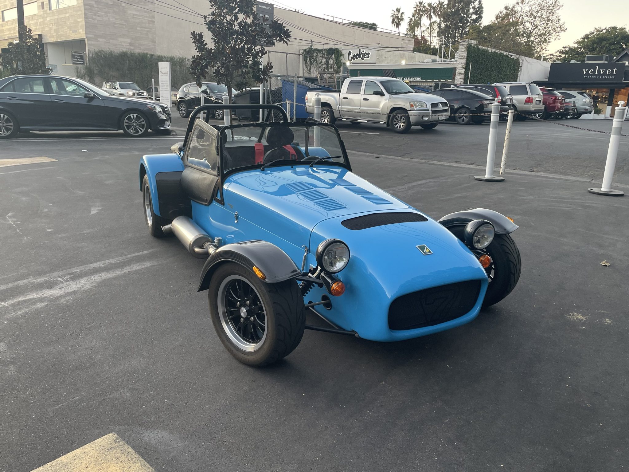The 13” alloy wheels have gloss black centers and polished lips, and they are mounted with 215/55 Avon tires. The car is equipped with Bilstein adjustable coilovers all around, and braking is handled by four-wheel discs.