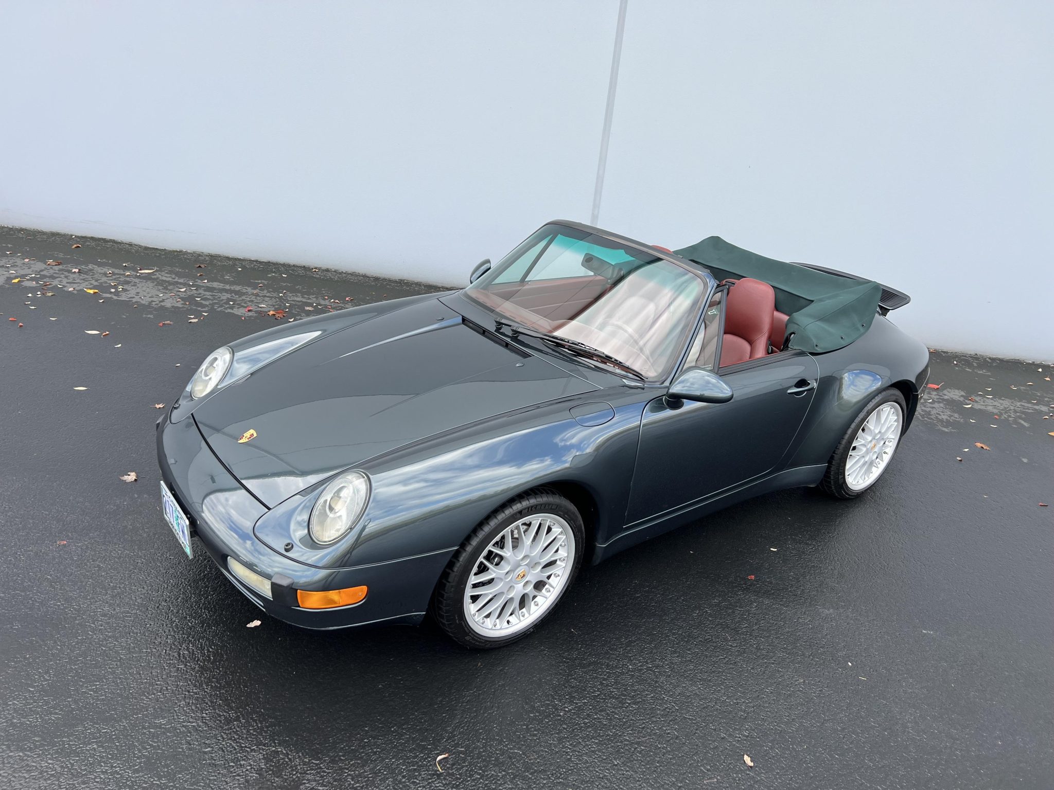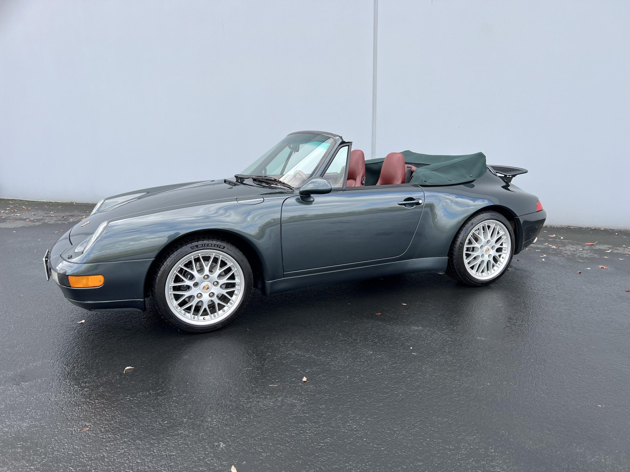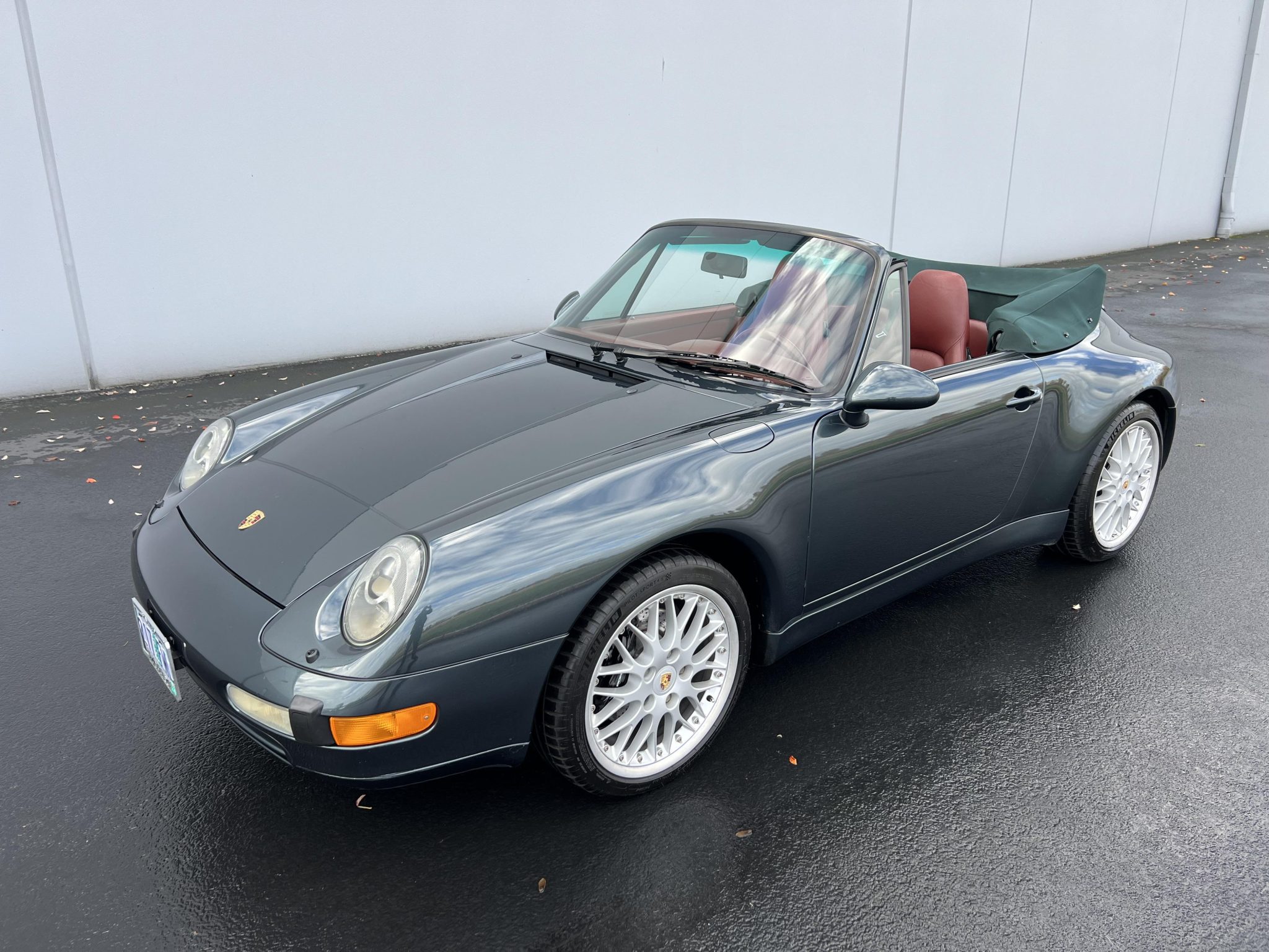 The 18″ multi-piece alloy wheels are mounted with Michelin Pilot Sport 4S tires. Braking is handled by Porsche-branded calipers over cross-drilled rotors at all four corners.