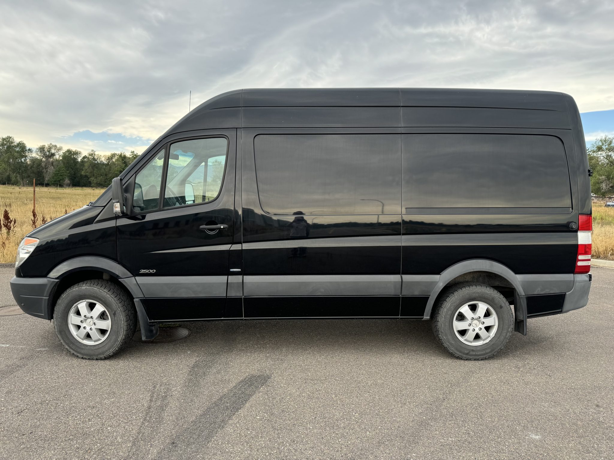 The 16″ six-spoke alloy wheels wear 245/75 Cooper Discoverer ATP tires that were mounted in January 2017. The van rides on an independent front suspension paired with a solid rear axle. The chassis is equipped with an Electronic Stability Program (ESP) as well as four-wheel anti-lock brakes.