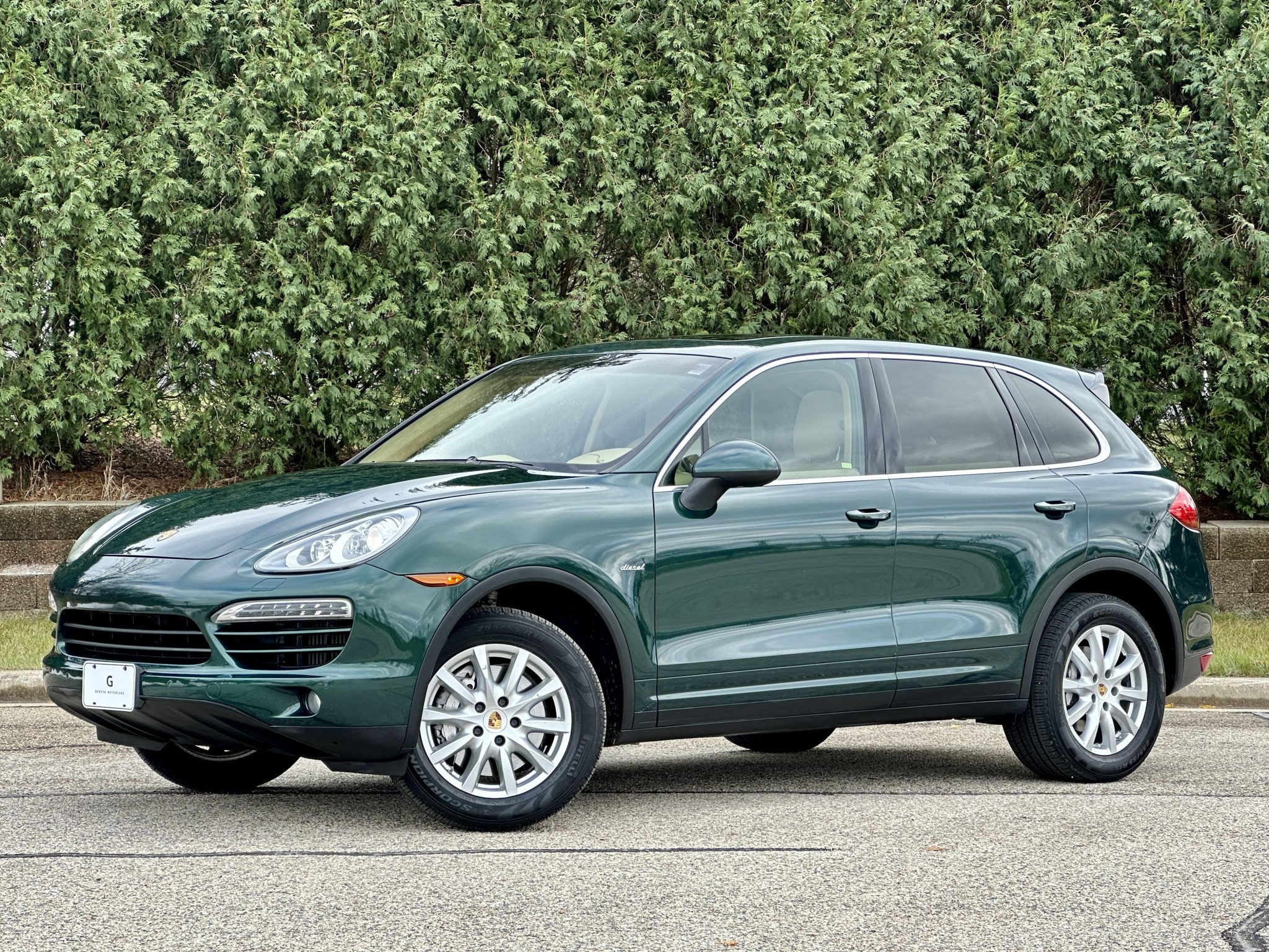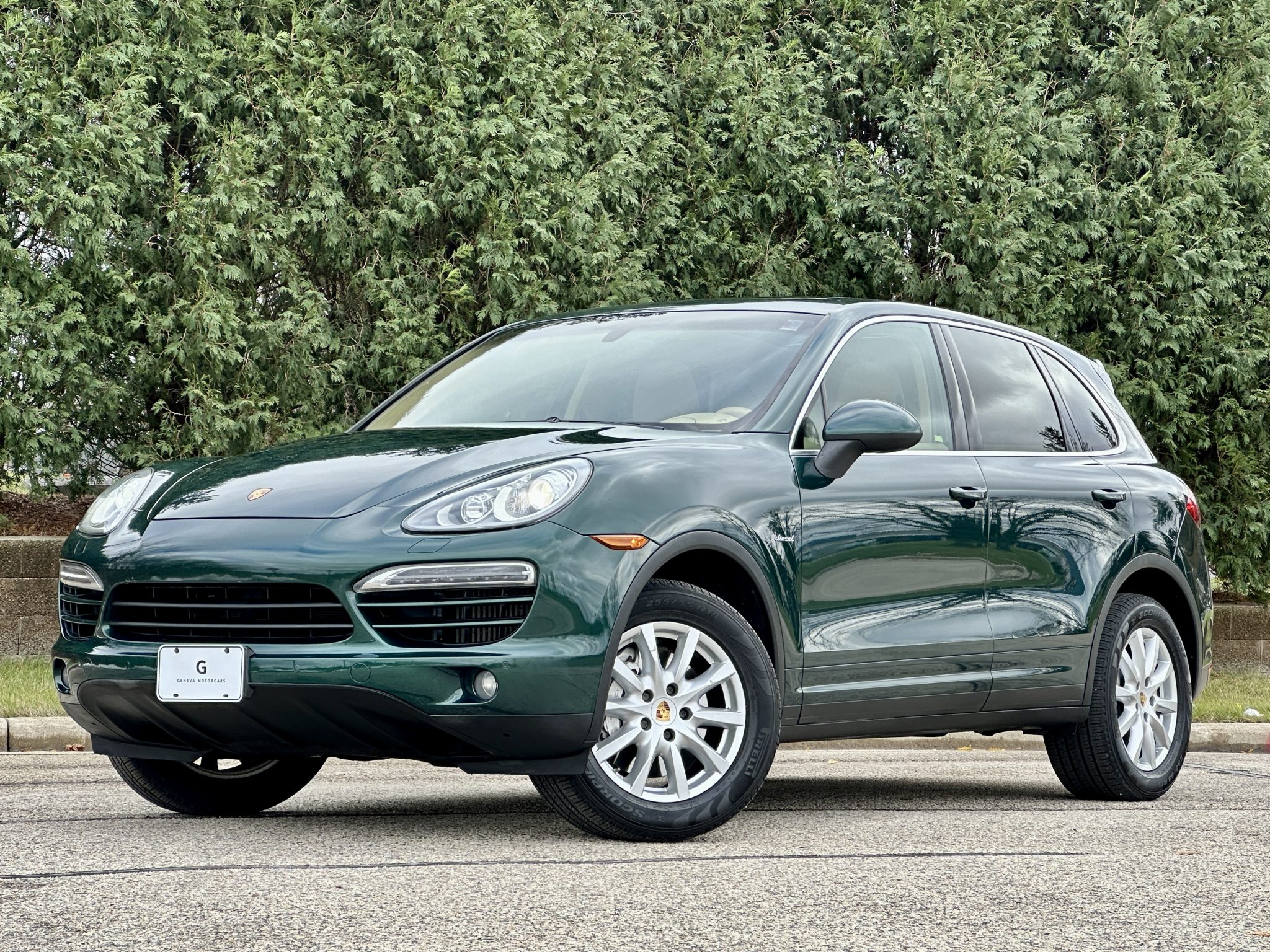 The 18″ Cayenne alloy wheels are mounted with 255/55 Pirelli Scorpion All Season tires that show 2022 date codes. Stopping power is provided by six-piston front and four-piston rear brake calipers over ventilated rotors at each corner. The front brake rotors and pads were replaced in September 2024.