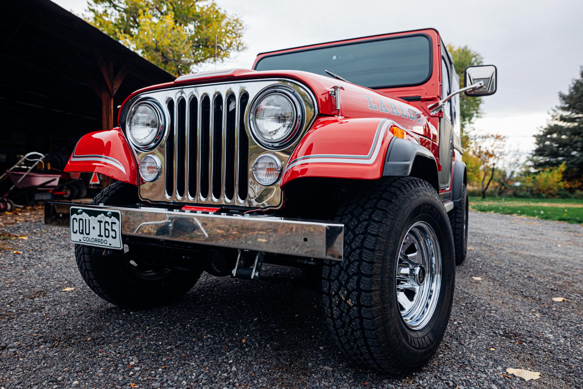 The 15″ polished steel wheels are mounted with Argus Advanta ATX-750 tires, and a matching spare is housed on the rear cargo door. Braking is provided by power-assisted front discs and rear drums. The master brake cylinder, steering box, and front springs were replaced during the refurbishment.