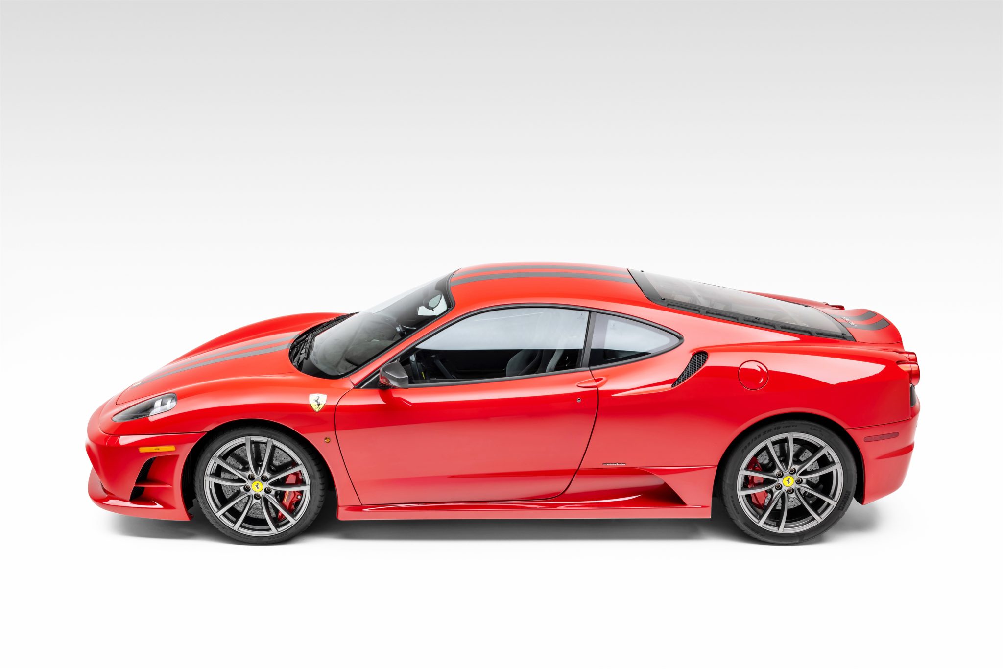 The 19″ Scuderia alloy wheels wear Pirelli tires that were mounted in May 2024. Braking is handled by red-finished brake calipers fitted over Brembo carbon-ceramic rotors. The brake fluid was flushed and the TPMS sensors were replaced in May 2024.