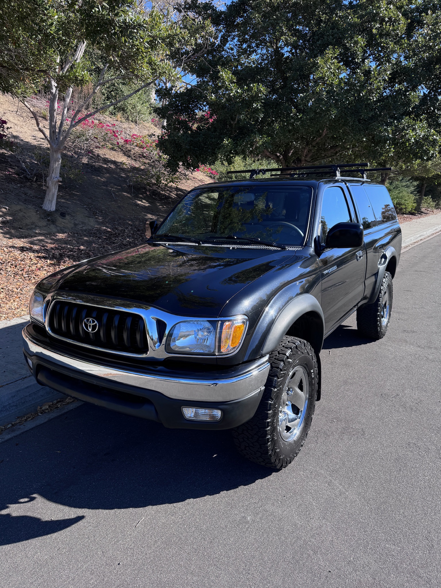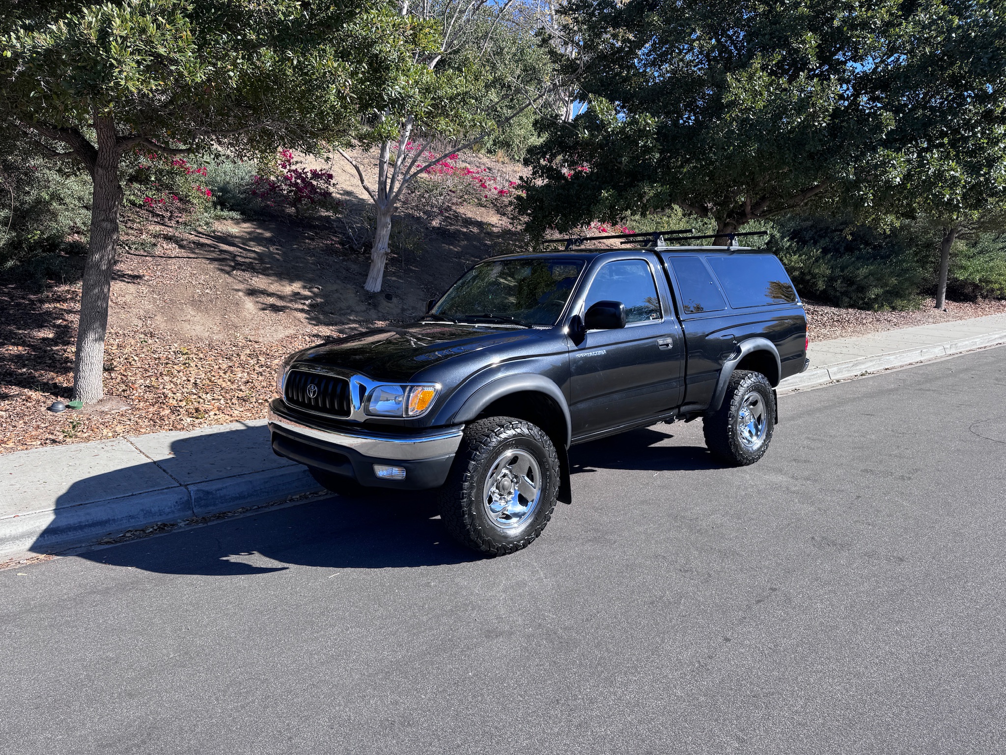 The 16″ tri-spoke steel wheels are mounted with BFGoodrich All-Terrain K02 tires. The truck is equipped with a suspension lift kit and Bilstein front shocks. Braking is handled by front discs and rear drums.