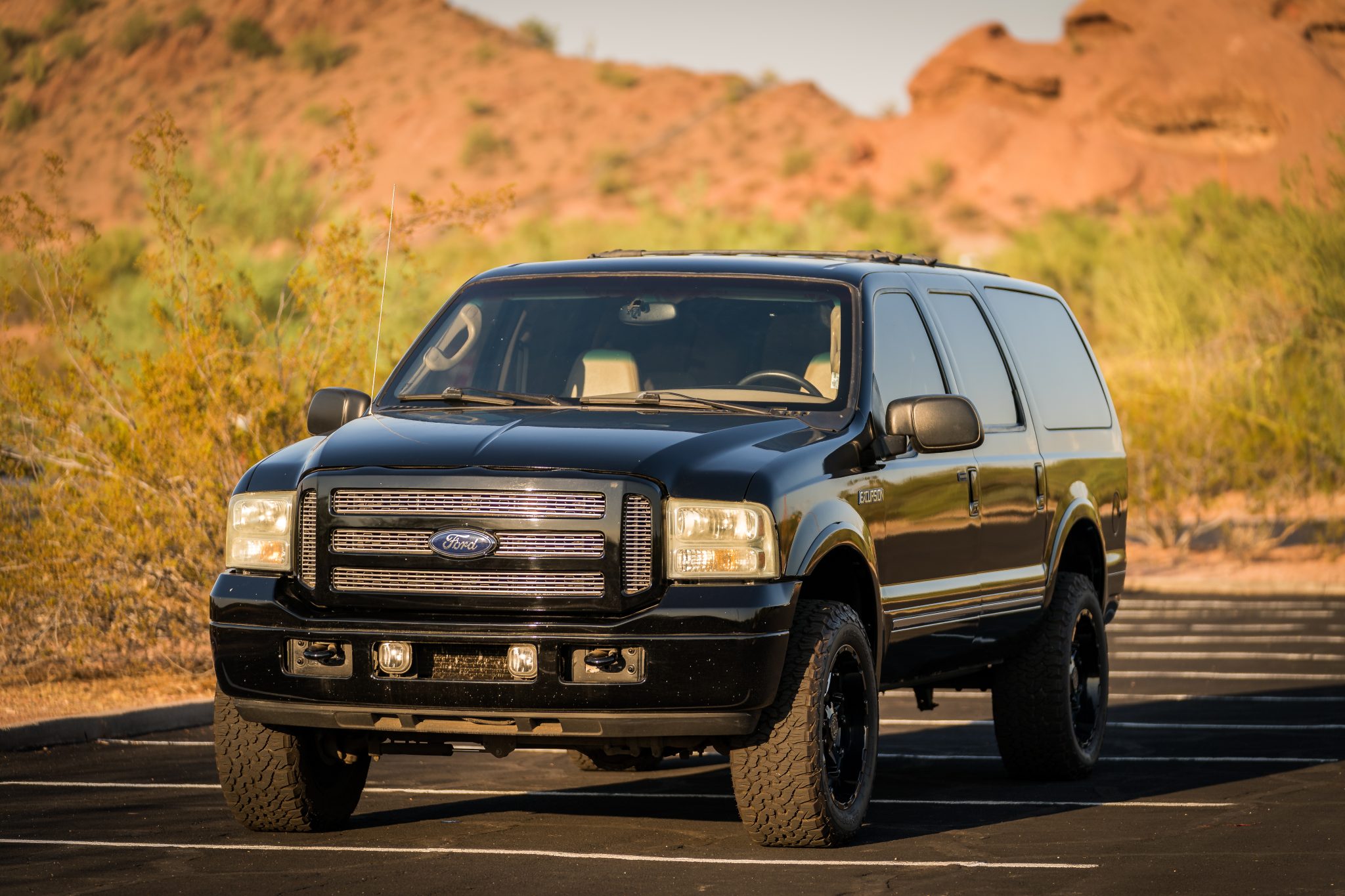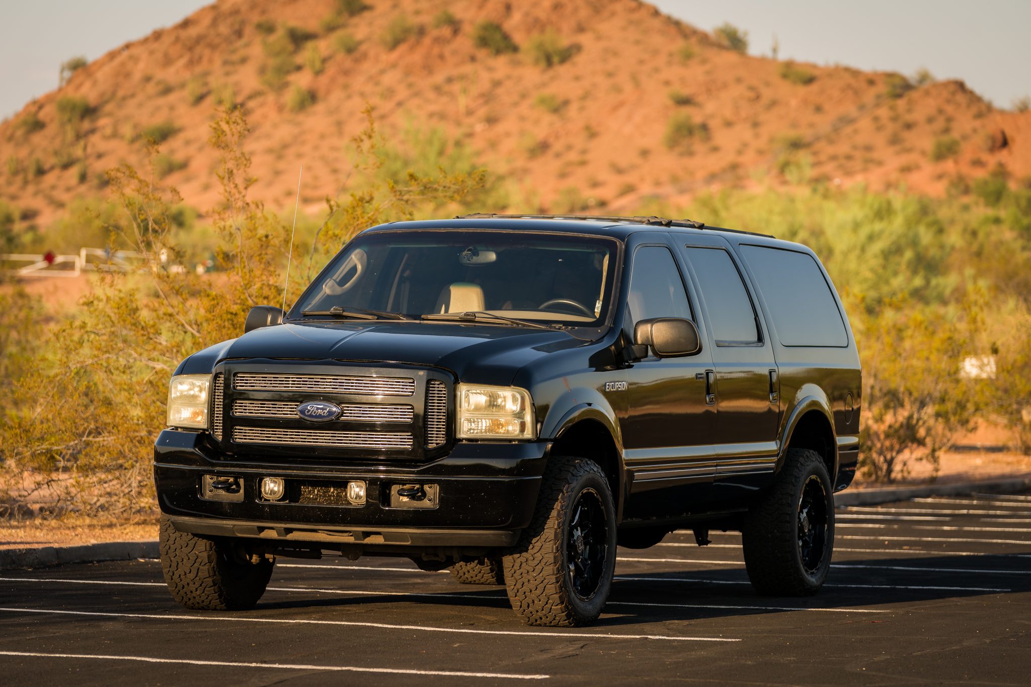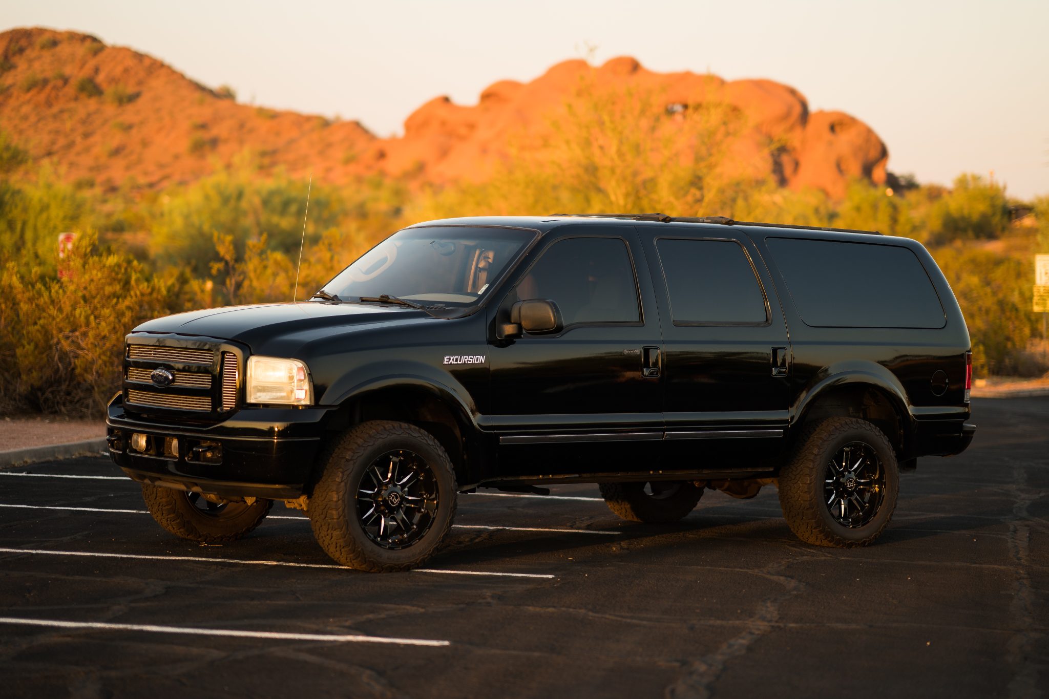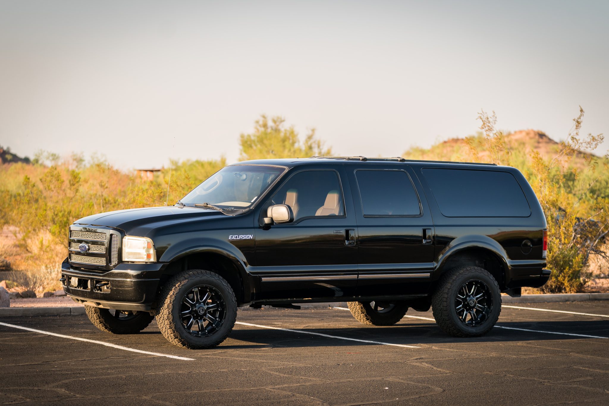 Black Rhino 20″ eight-spoke alloy wheels are mounted with 30.5″ tires. A suspension leveling kit was installed when the vehicle was first purchased, and braking is handled by four-wheel ventilated discs.