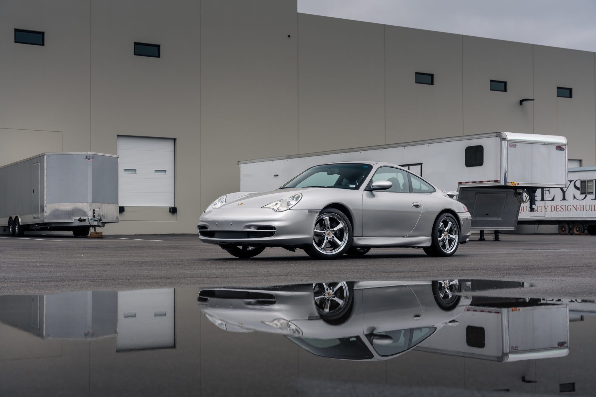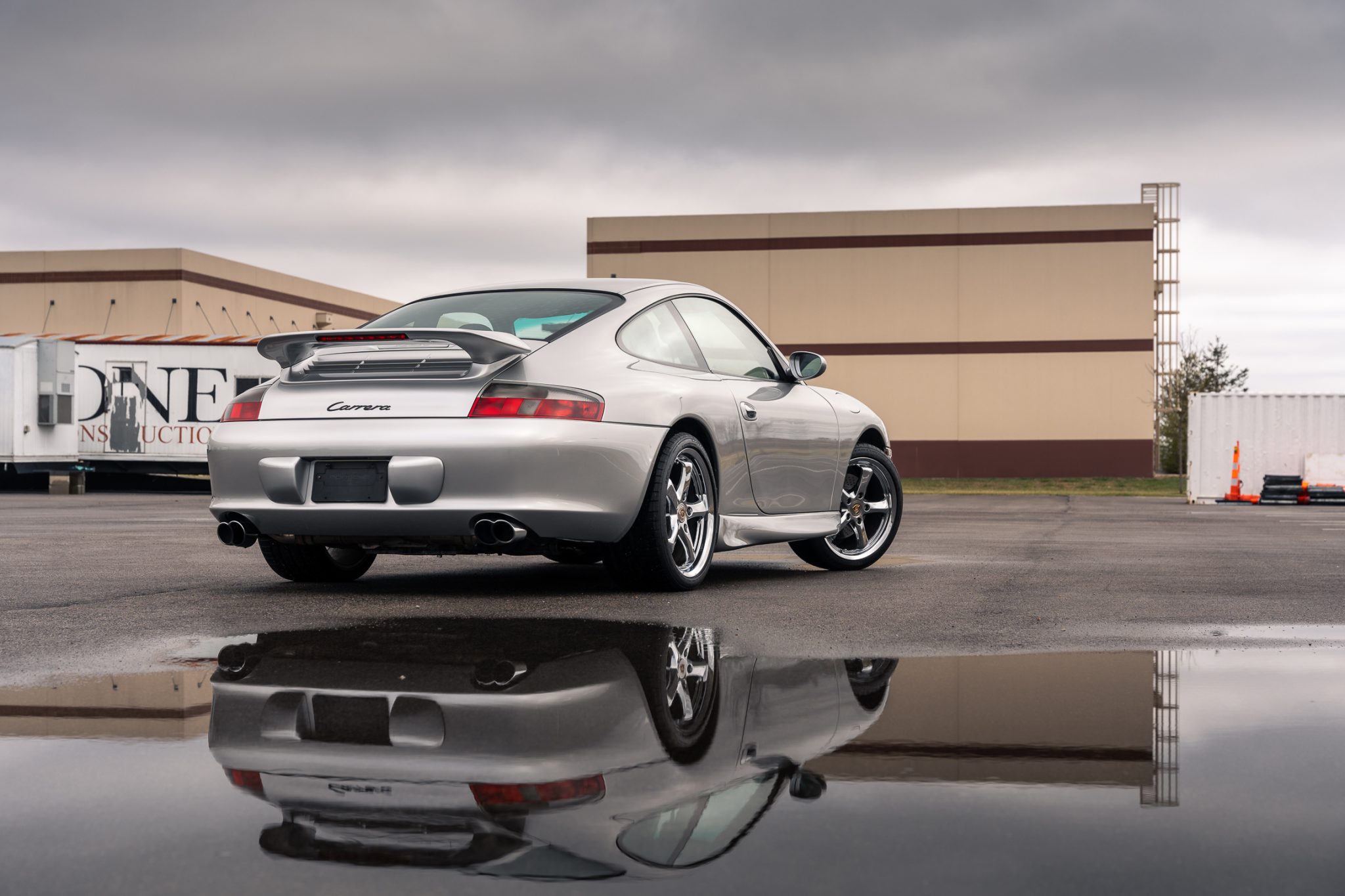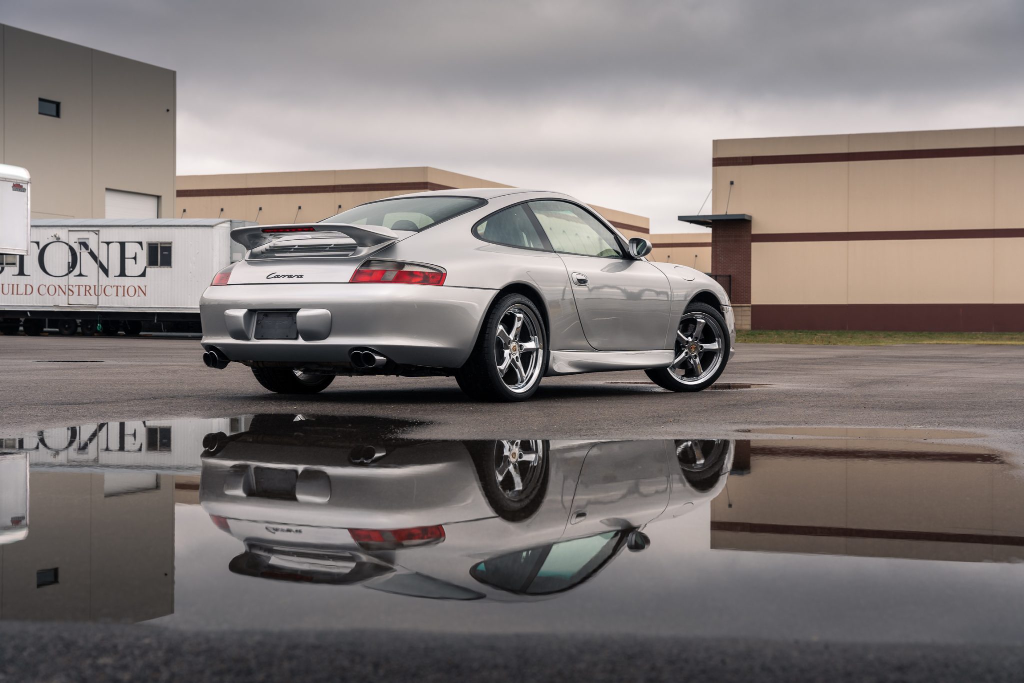 Chrome 18″ wheels are mounted with Continental ExtremeContact Sport tires. Braking is handled by four-piston Porsche-branded calipers fitted over cross-drilled rotors at all four corners, and the car is equipped with Porsche Stability Management (PSM).