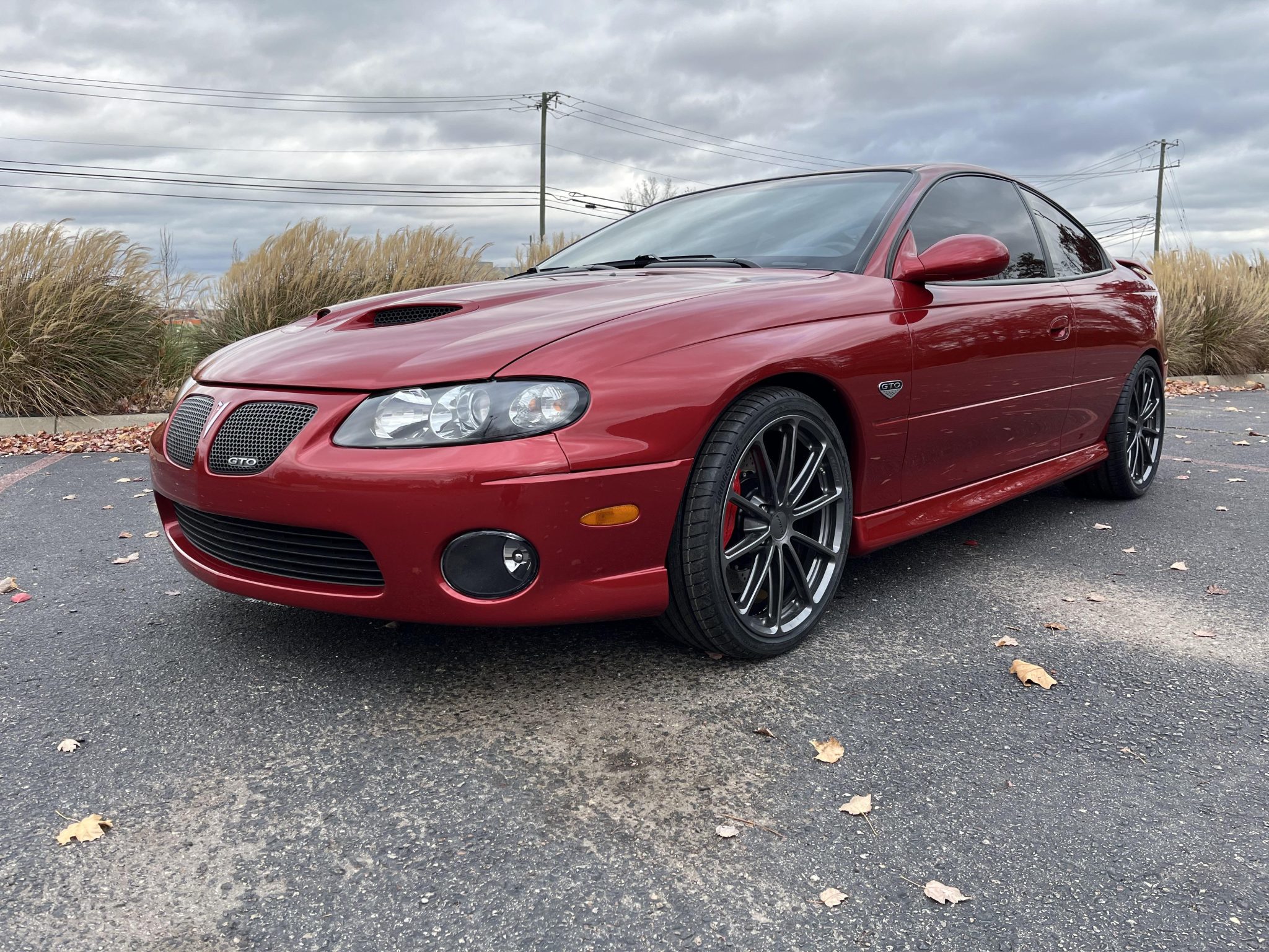 The 19″ Forgeline wheels were mounted with 245/35 front and 2865/30 rear Bridgestone Potenza Sport tires in 2024. Cross-drilled front disc brakes have been added and feature red Brembo calipers with Lingenfelter script.