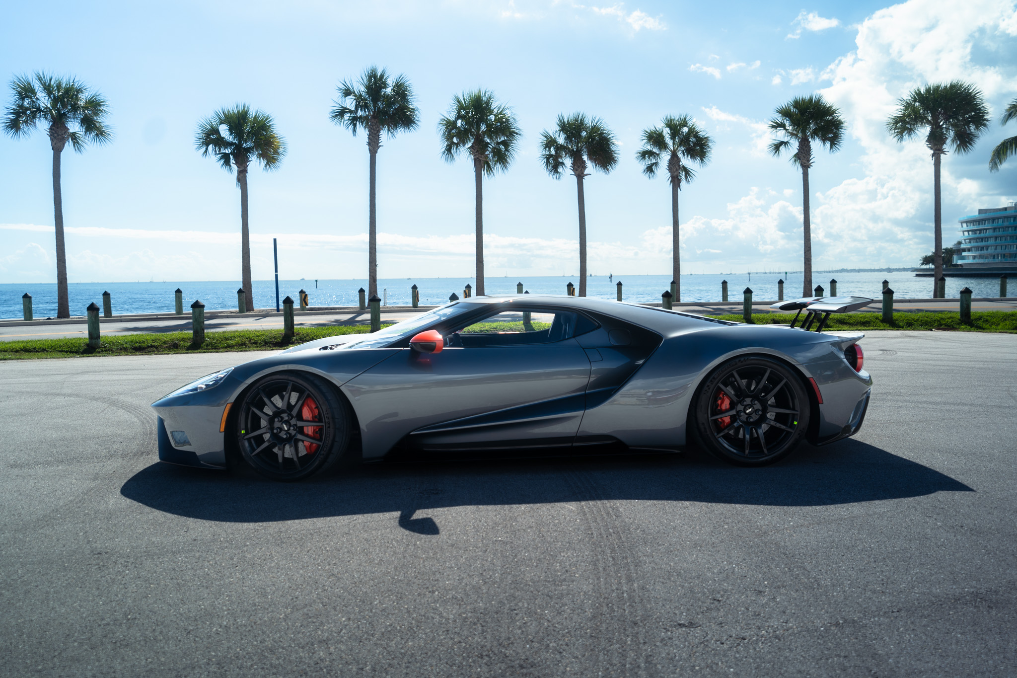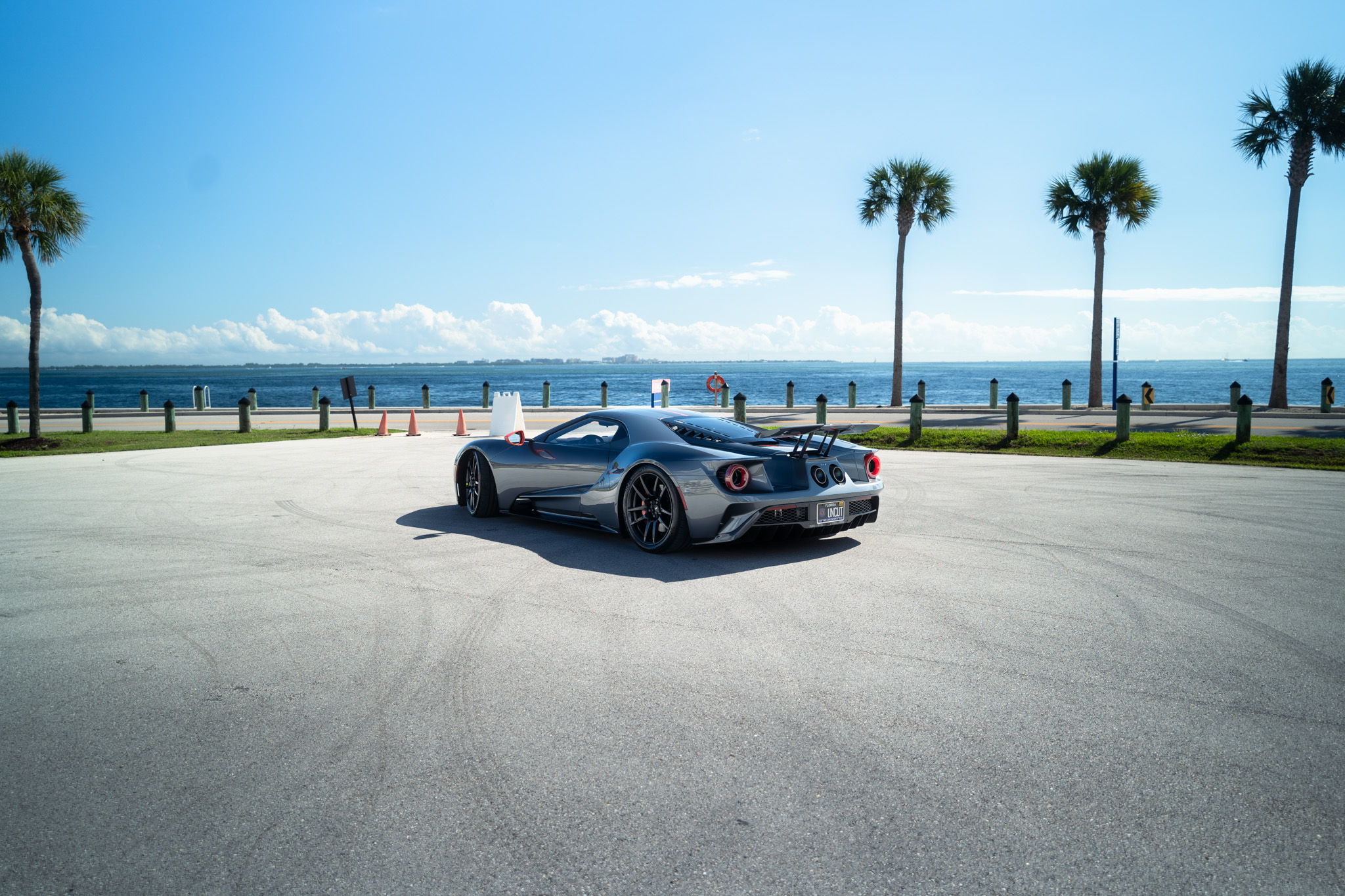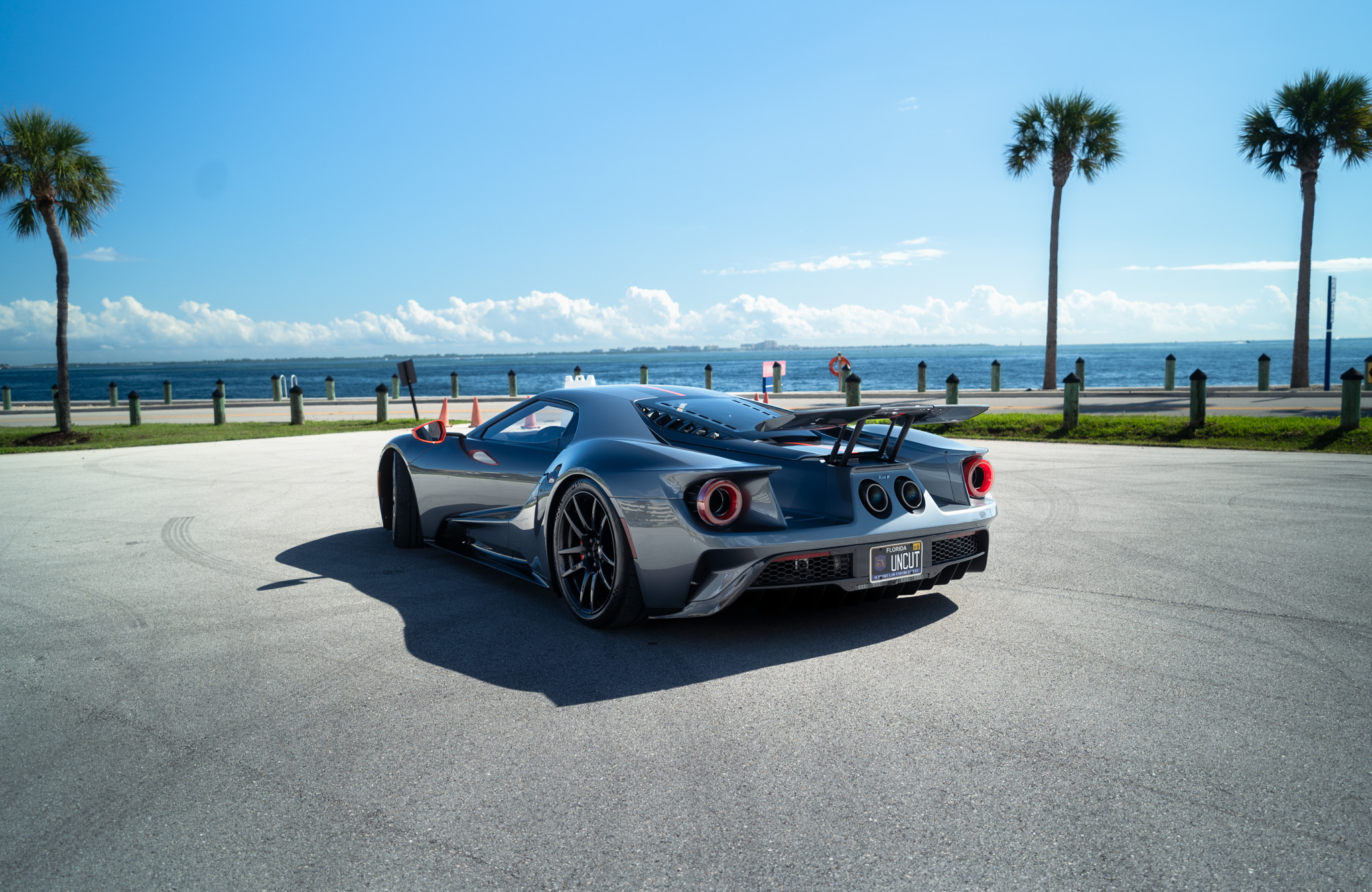 The GT features a carbon-fiber monocoque structure bolted to front and rear aluminum subframes that serve as stressed members for the hydraulically adjustable pushrod suspension system. Variable ride height, a front-axle lift system, selectable driving modes, and launch control are standard features. The Carbon Series package saved approximately 40 pounds and features exposed carbon-fiber stripes, carbon-fiber wheels, a titanium exhaust system, and a polycarbonate engine cover with increased ventilation.