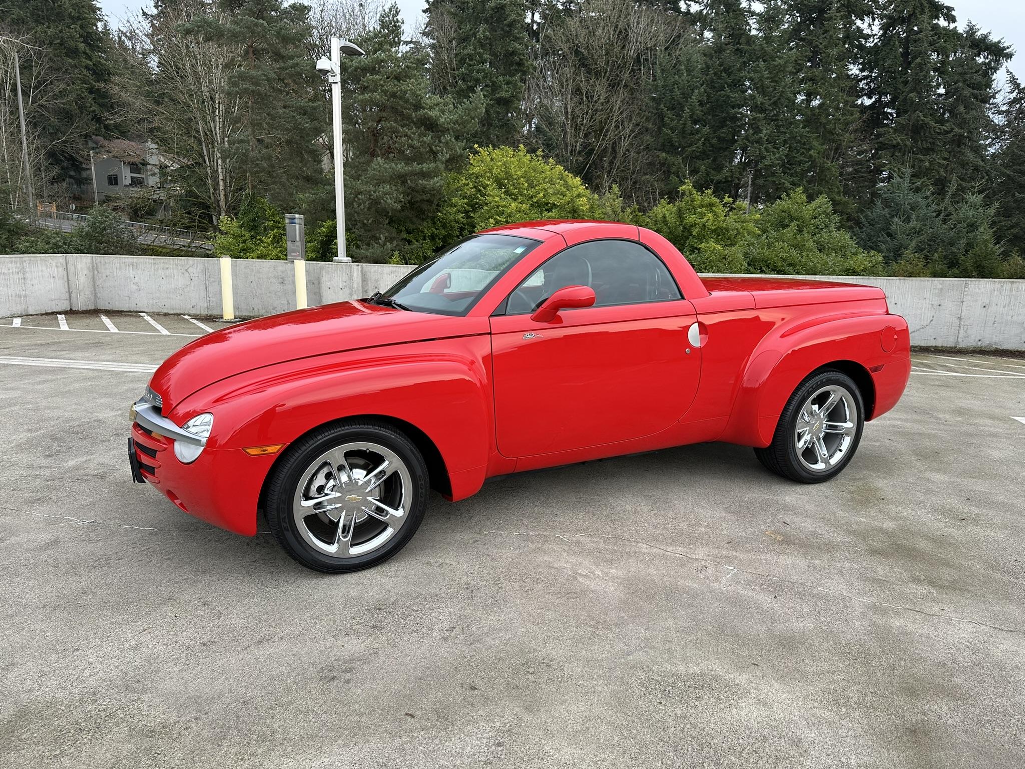 Chrome-finished 19″ front and 20″ rear five-spoke cast-aluminum wheels are mounted with Goodyear Eagle RSA tires. The SSR was equipped from the factory with a ZQ8 sport suspension featuring an independent front and five-link solid-axle rear setup with front and rear stabilizer bars. Stopping power is provided by four-wheel ventilated disc brakes. A brake fluid flush was performed in May 2024.