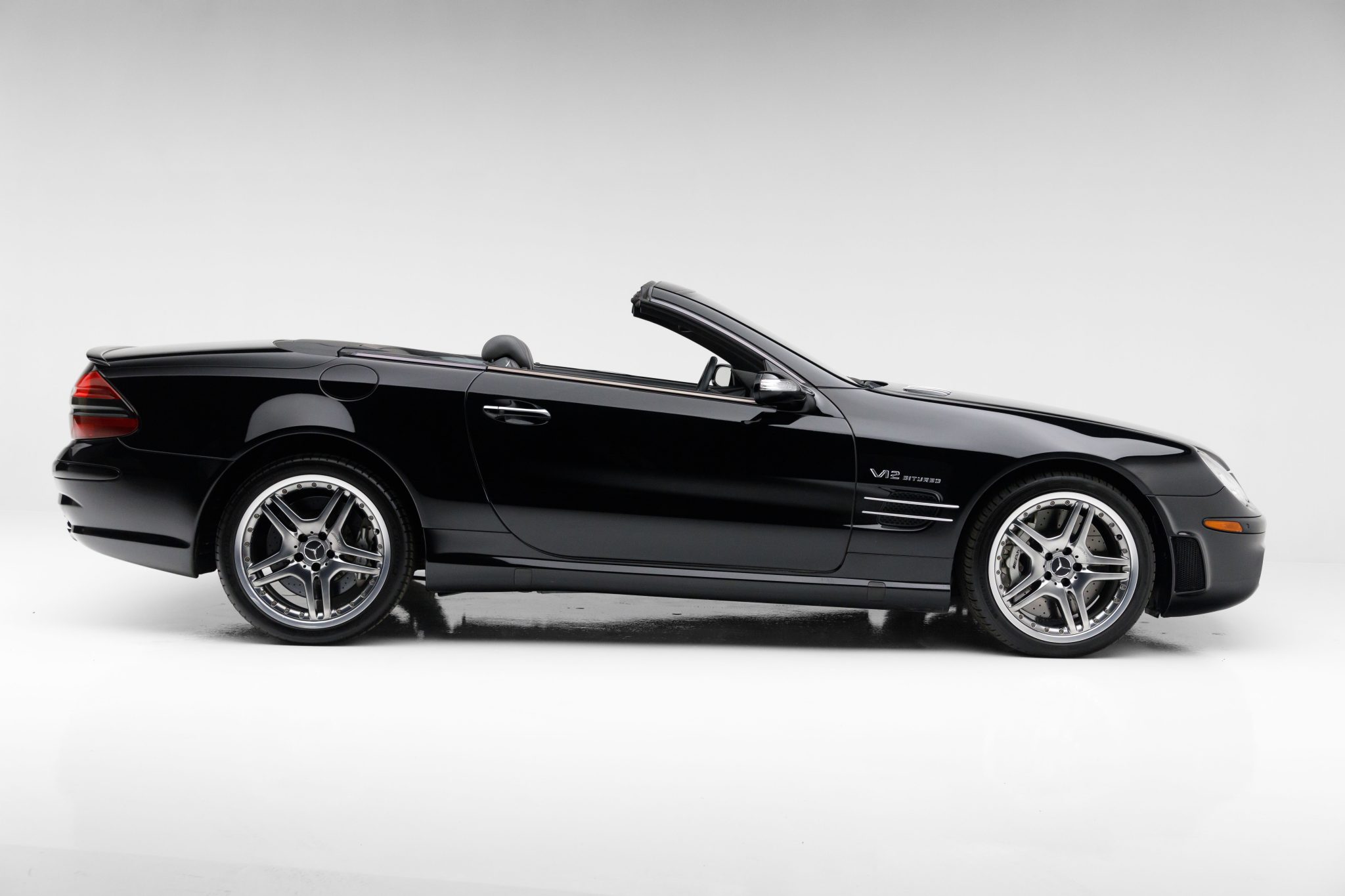 The 19″ two-piece alloy wheels were refurbished in preparation for the sale and are mounted with 255/35 front and 285/30 rear Michelin Pilot Sport All Season tires. The car features Active Body Control suspension as well as an Electronic Stability Program, Automatic Slip Control, and an AMG High Performance Braking System with cross-drilled rotors.