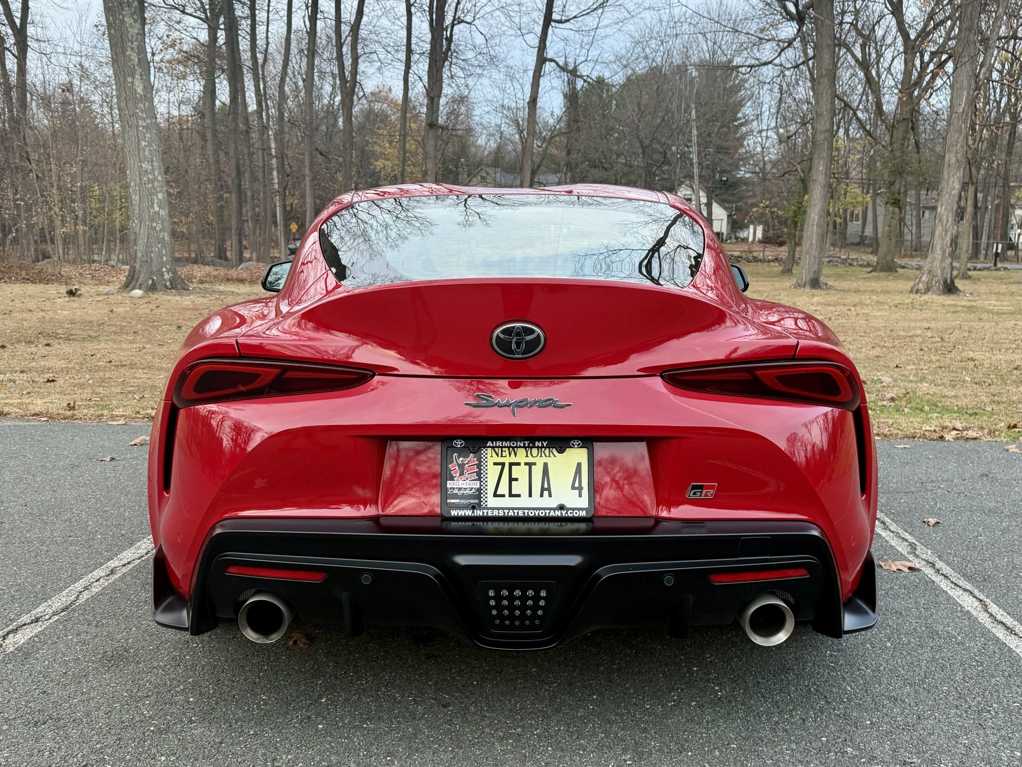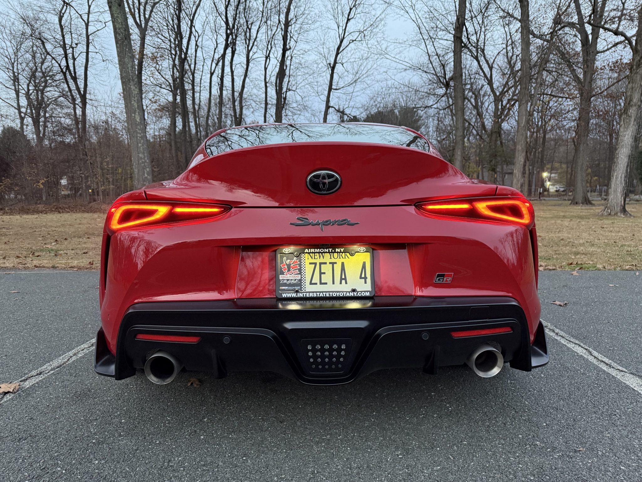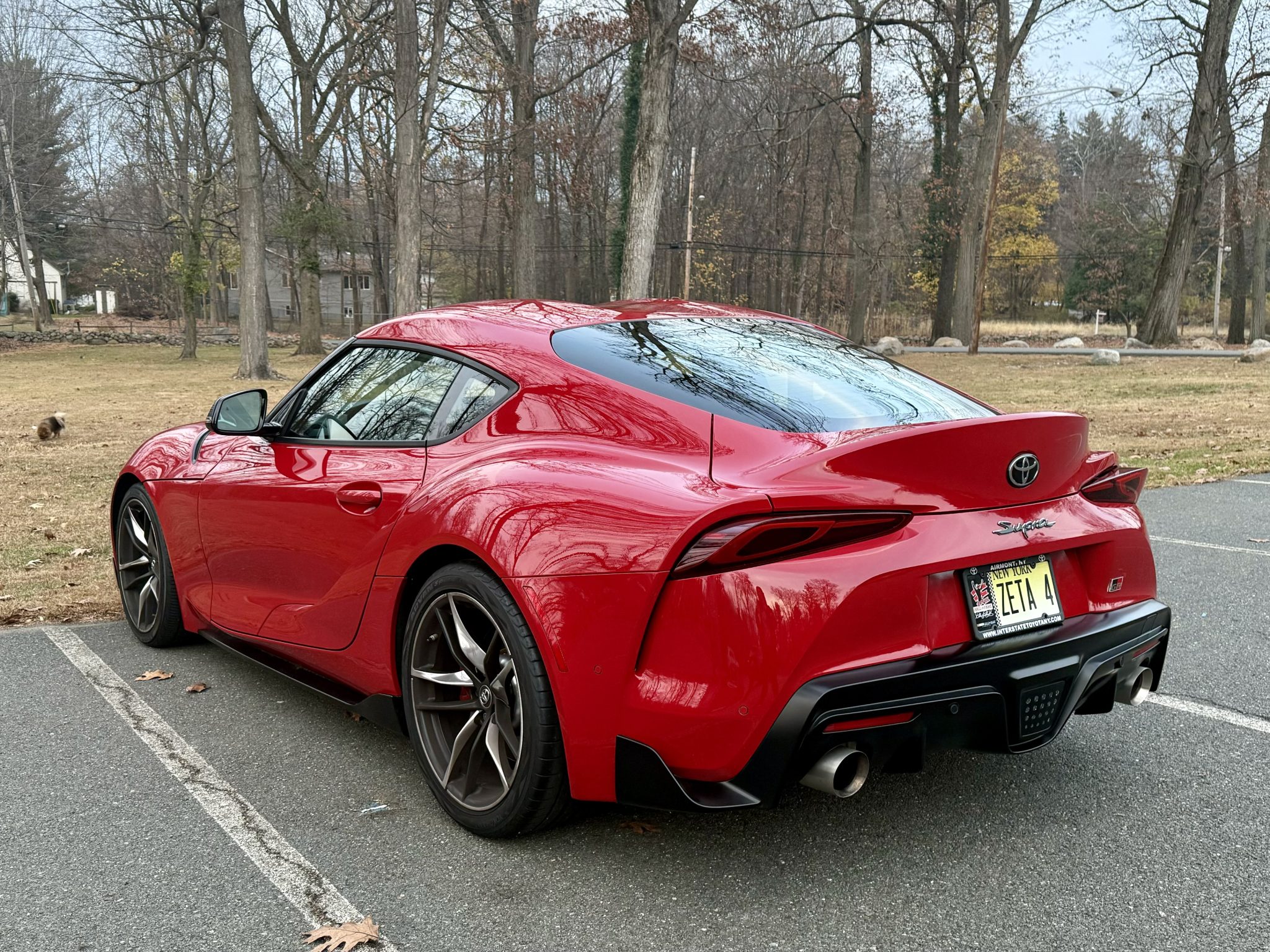 The 19″ forged aluminum wheels are mounted with Yokohama Advan tires. The car features an adaptive variable sport suspension, and braking is provided by four-wheel discs with Supra-branded Brembo four-piston calipers up front.