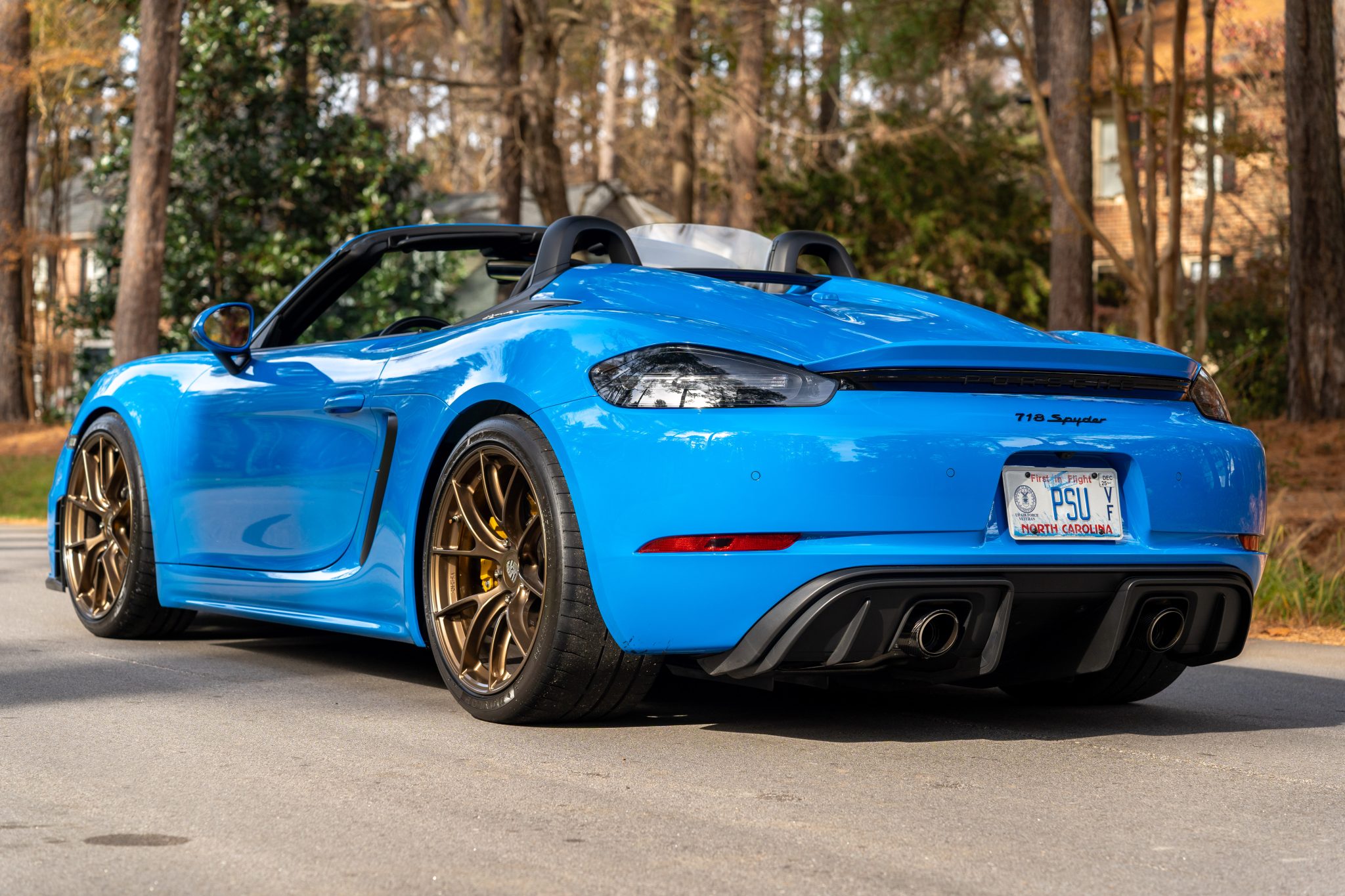Bronze-finished 20″ multi-spoke Apex wheels feature painted center caps along with titanium lug bolts, and they are mounted with Dunlop Sport Maxx Race 2 tires. Stopping power is provided by Porsche Ceramic-Composite Brakes with yellow-finished calipers, and the car is equipped with a DSC V3 suspension controller.