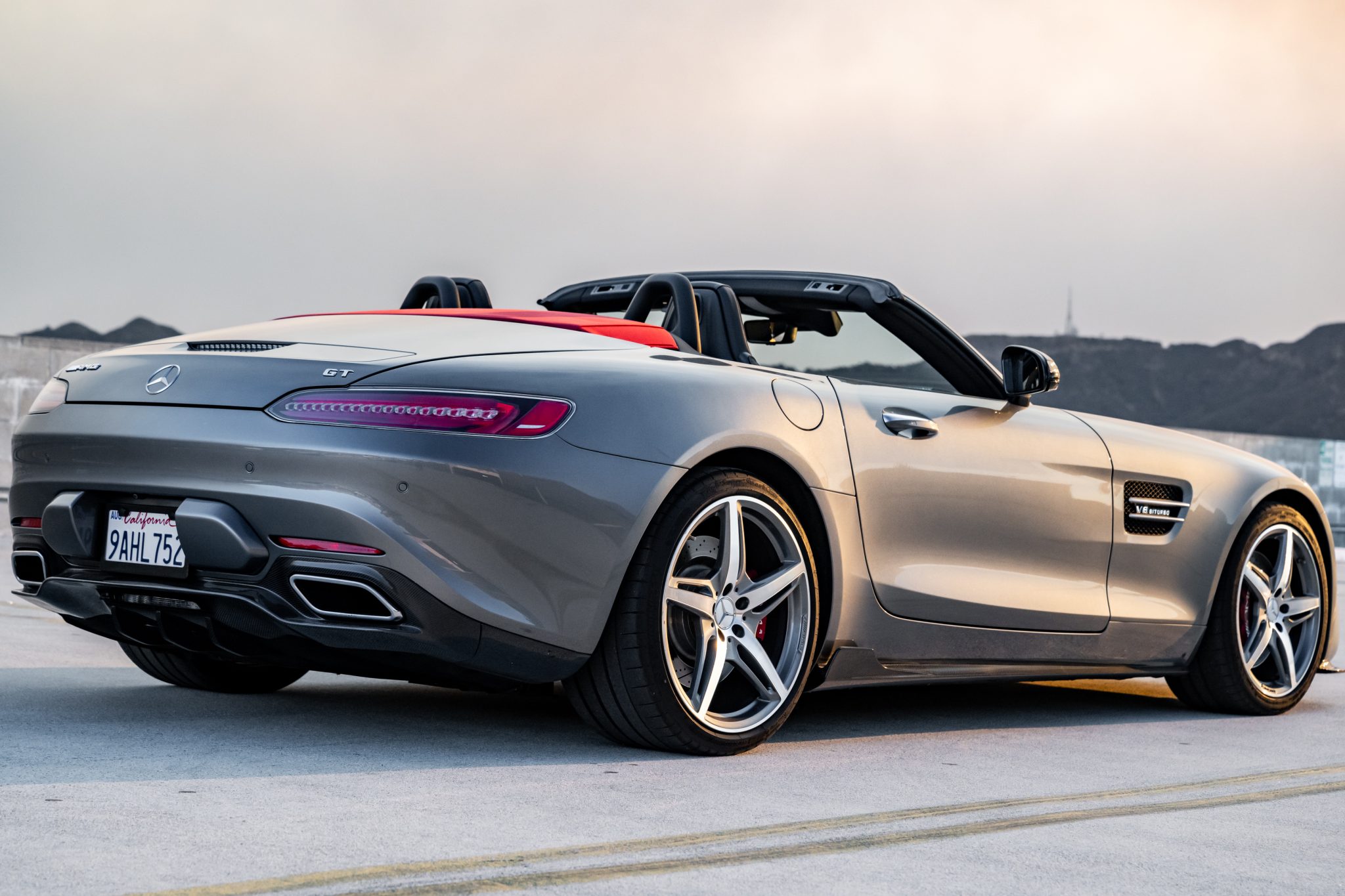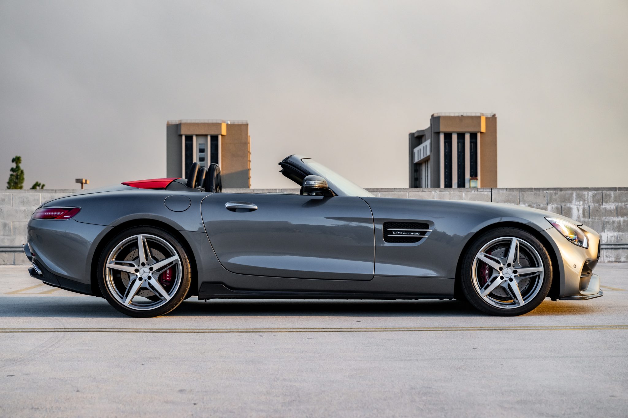 The 19″ and 20″ silver AMG split five-spoke wheels are mounted with Michelin Pilot Super Sport tires. The car came equipped from the factory with an AMG Sport Suspension. Red-finished calipers are fitted over cross-drilled and slotted discs at all four corners.