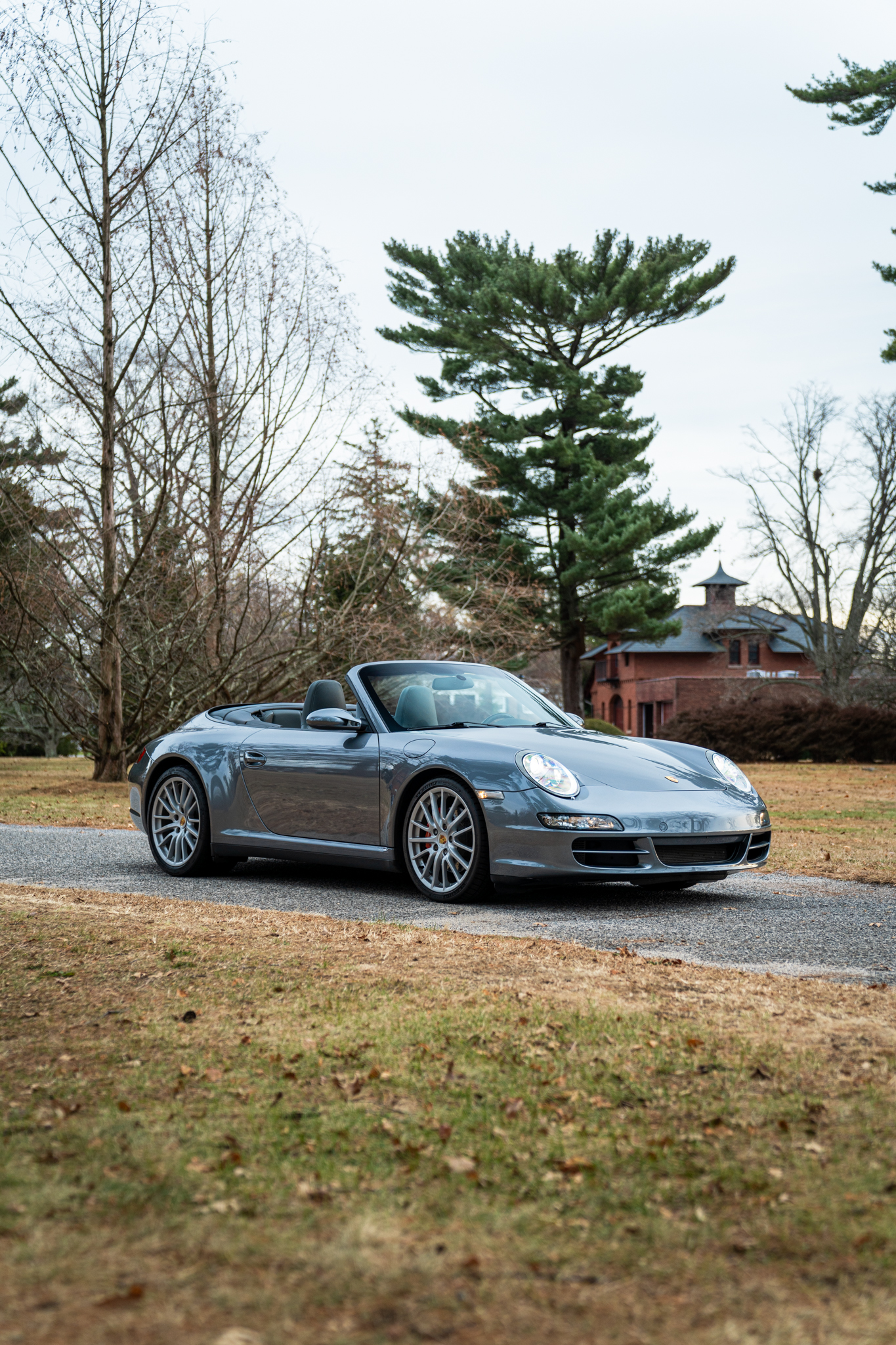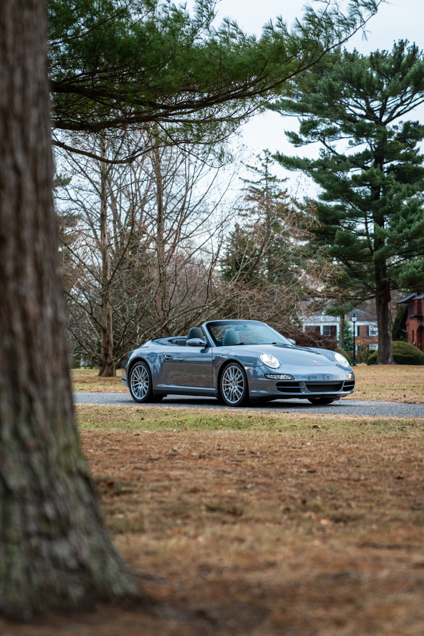 The 19″ Sport Design wheels are mounted with mixed Michelin tires measuring 235/35 up front and 305/30 out back. Braking is handled by Porsche-branded four-piston calipers over cross-drilled and vented rotors. The car is equipped with Porsche Active Suspension Management (PASM) and Porsche Stability Management (PSM).