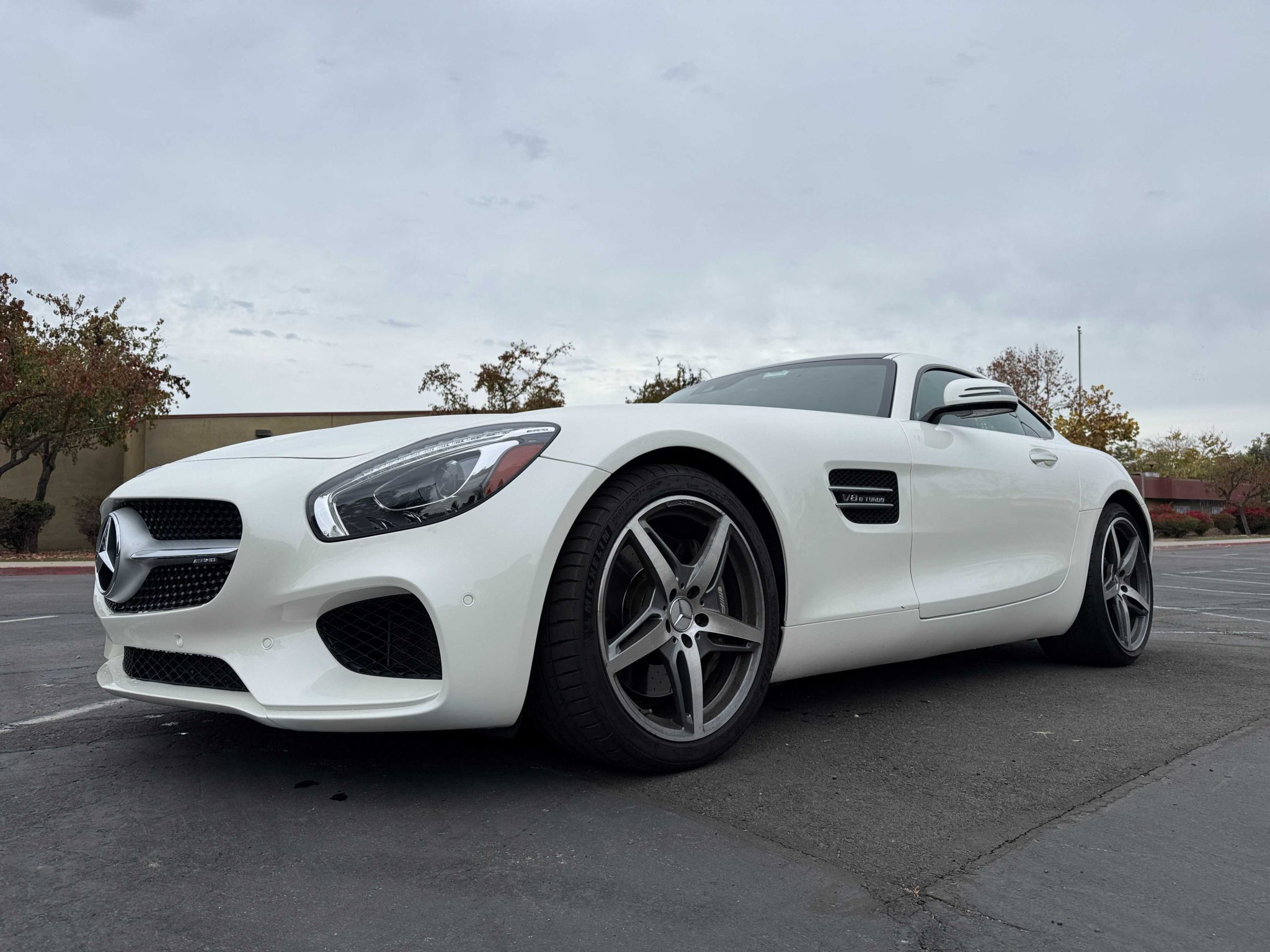 Silver 19″ and 20″ AMG split five-spoke wheels are mounted with Michelin Pilot Sport 4 S tires measuring 265/35 in front and 295/30 out back. The car came equipped from the factory with an AMG Sport Suspension, and silver-finished calipers are fitted over cross-drilled and slotted discs at all four corners. A brake fluid flush was completed in October 2024.