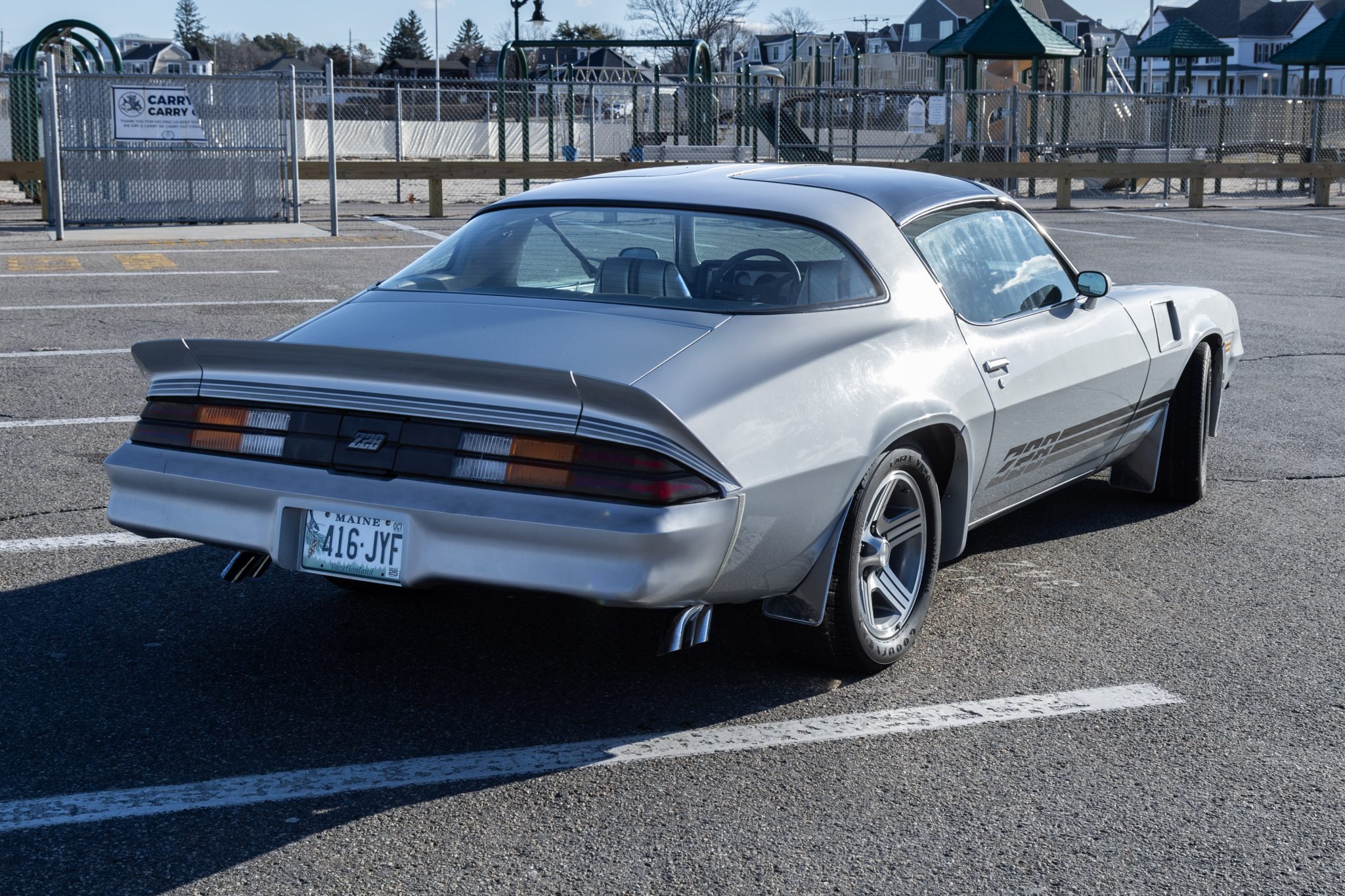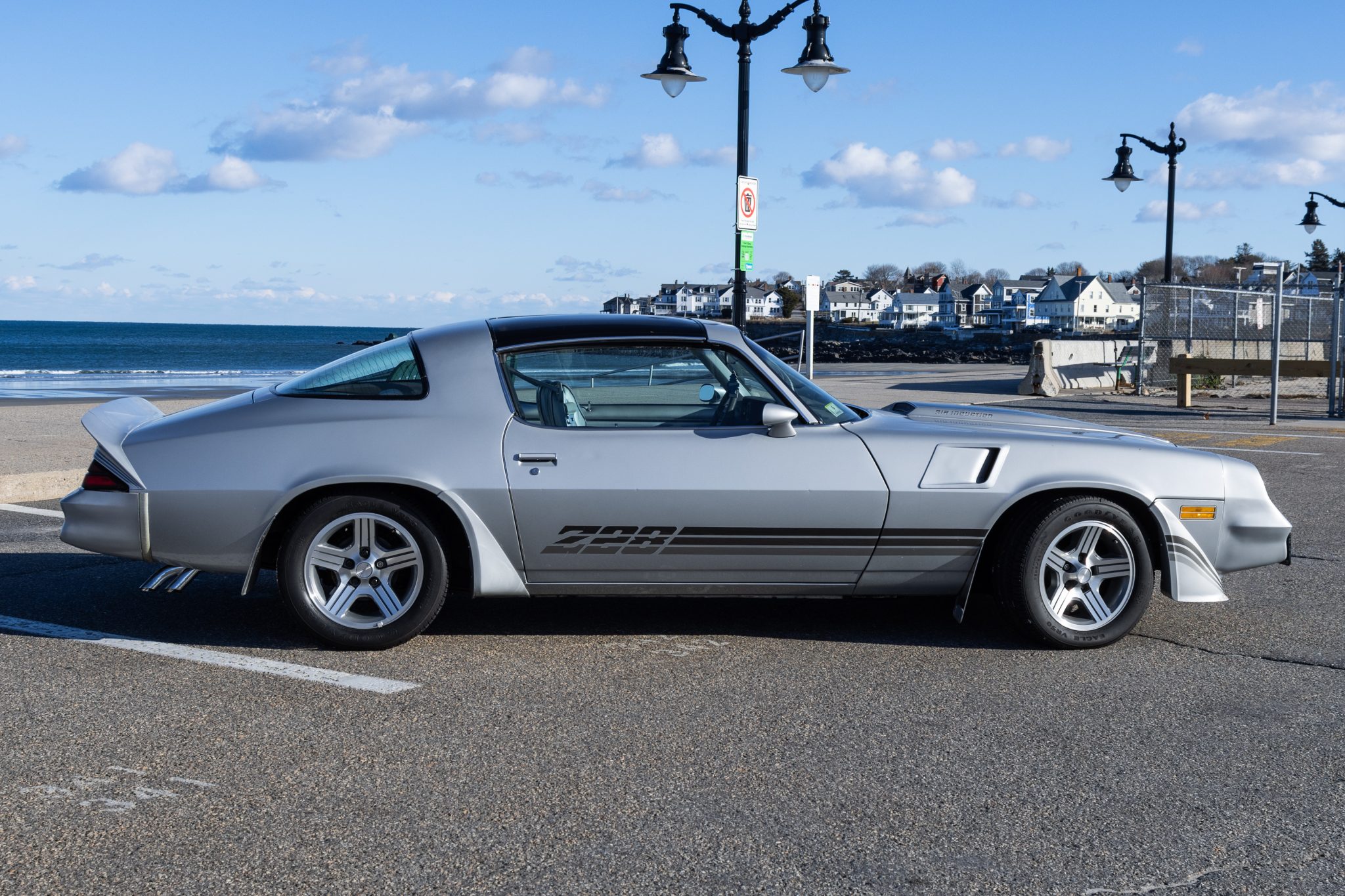 The 16″ five-spoke Iroc-Z wheels are mounted with Goodyear Eagle VR50 tires. The car is equipped with power steering and sport suspension, and braking is handled by front discs and rear drums. The rear brake shoes and drums were replaced in 2024.